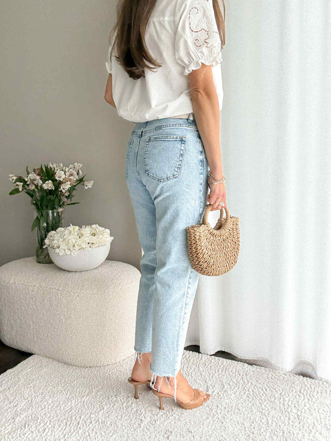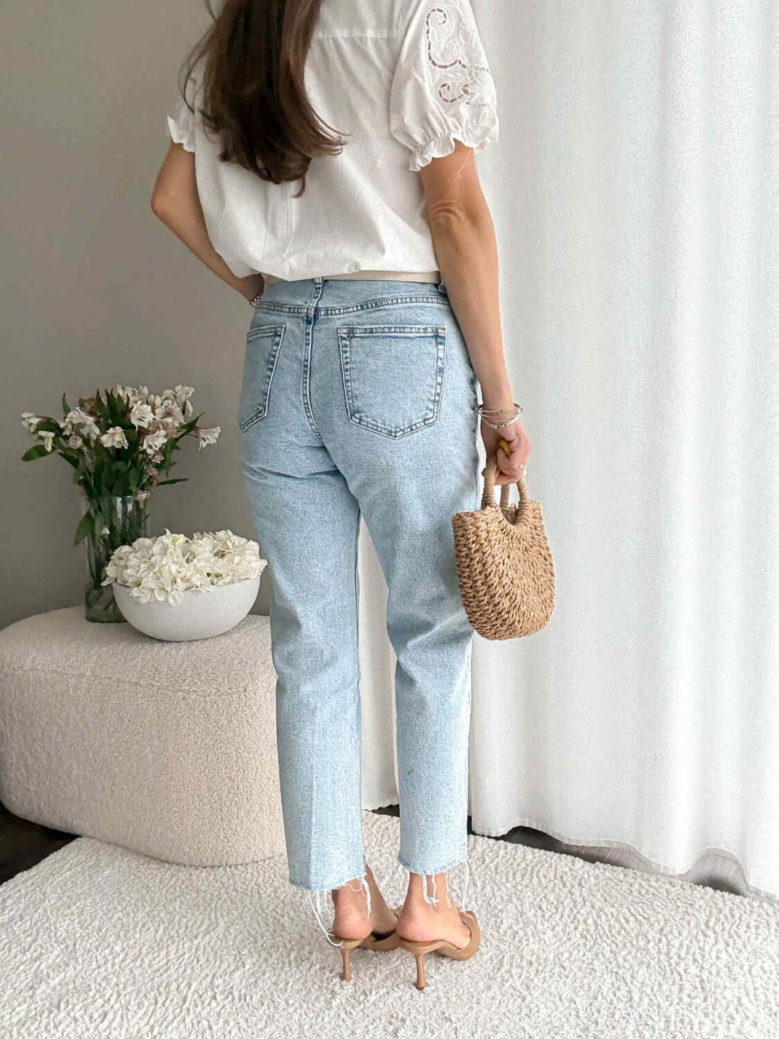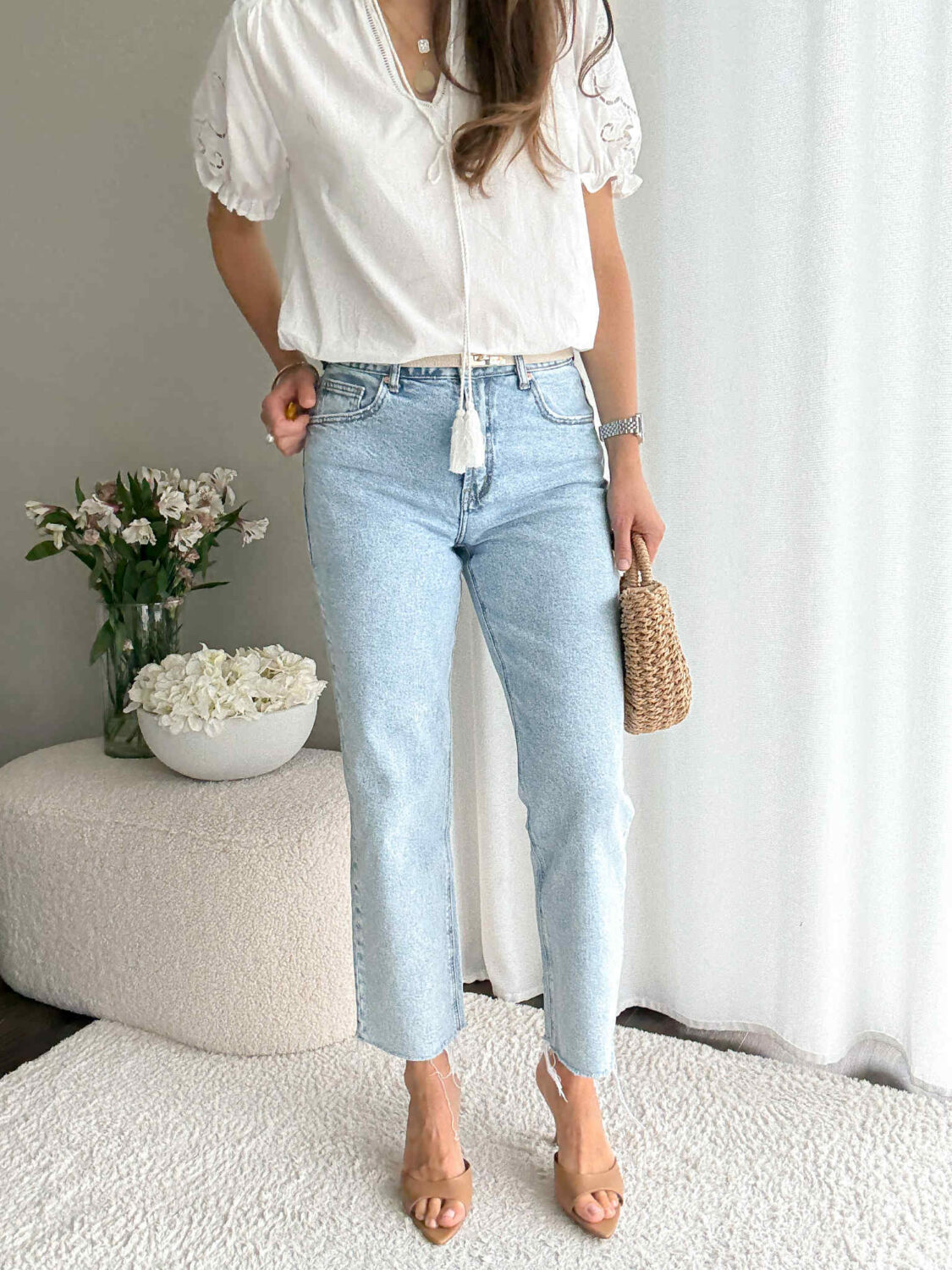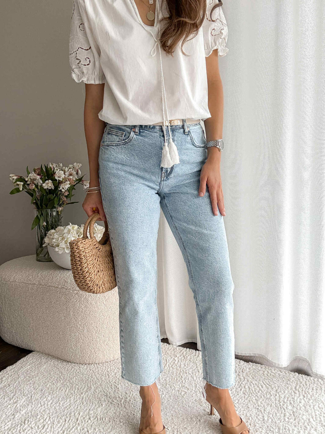 Jeansy o prostym fasonie w kolorze błękitnym.