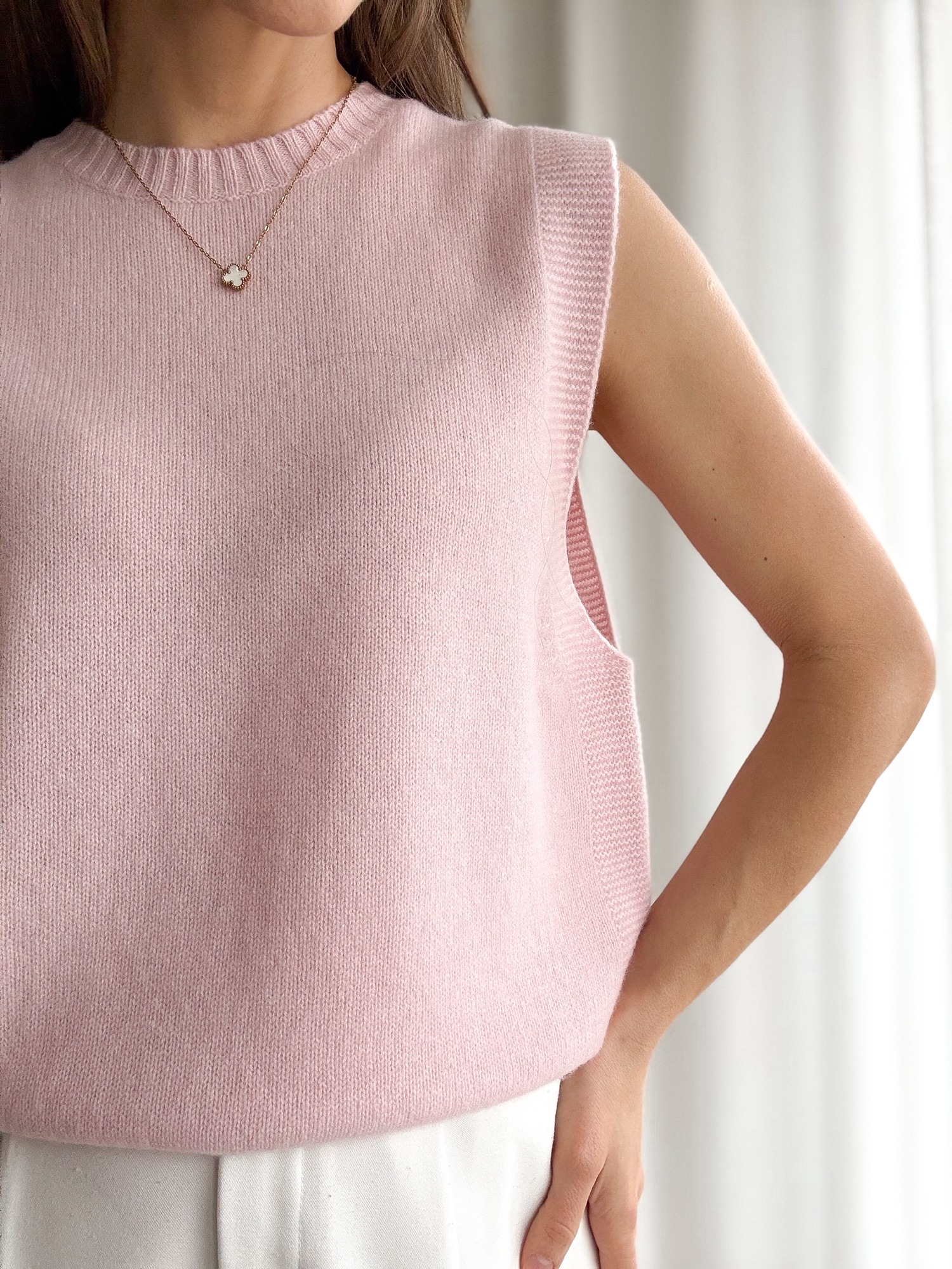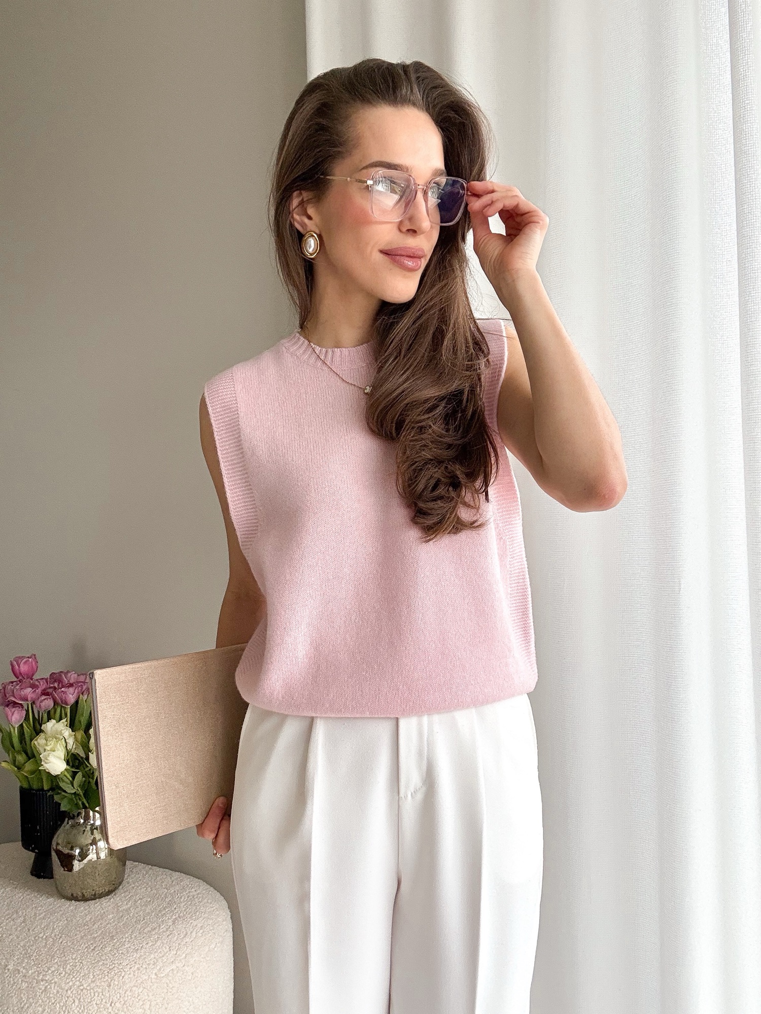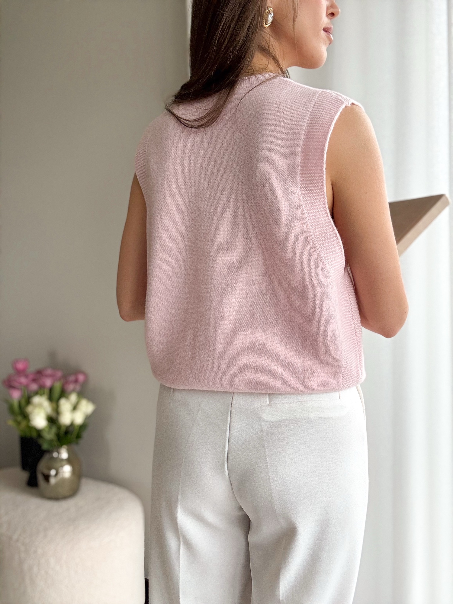 Bezrękawnik wykonany z miękkiej, niegryzącej, wełnianej dzianiny.