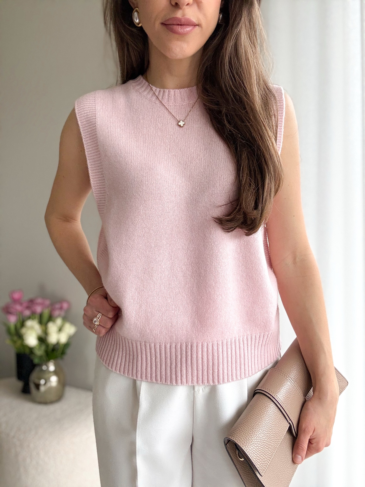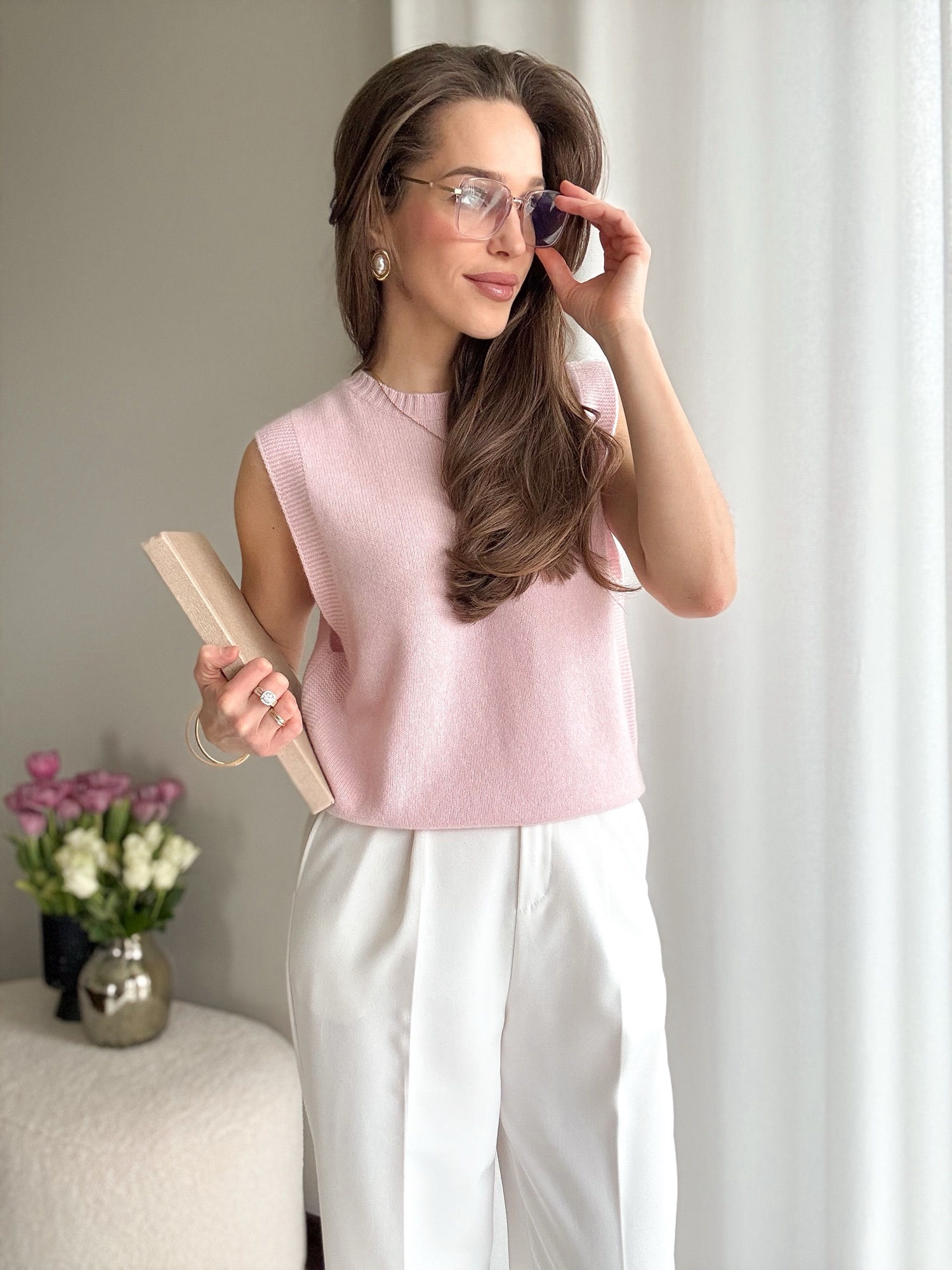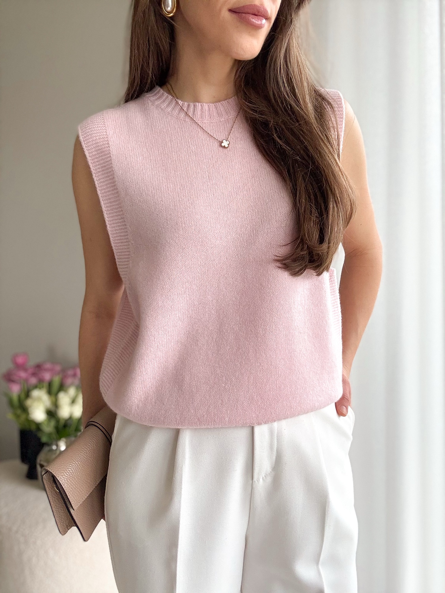 Bezrękawnik wykonany z miękkiej, niegryzącej, wełnianej dzianiny.