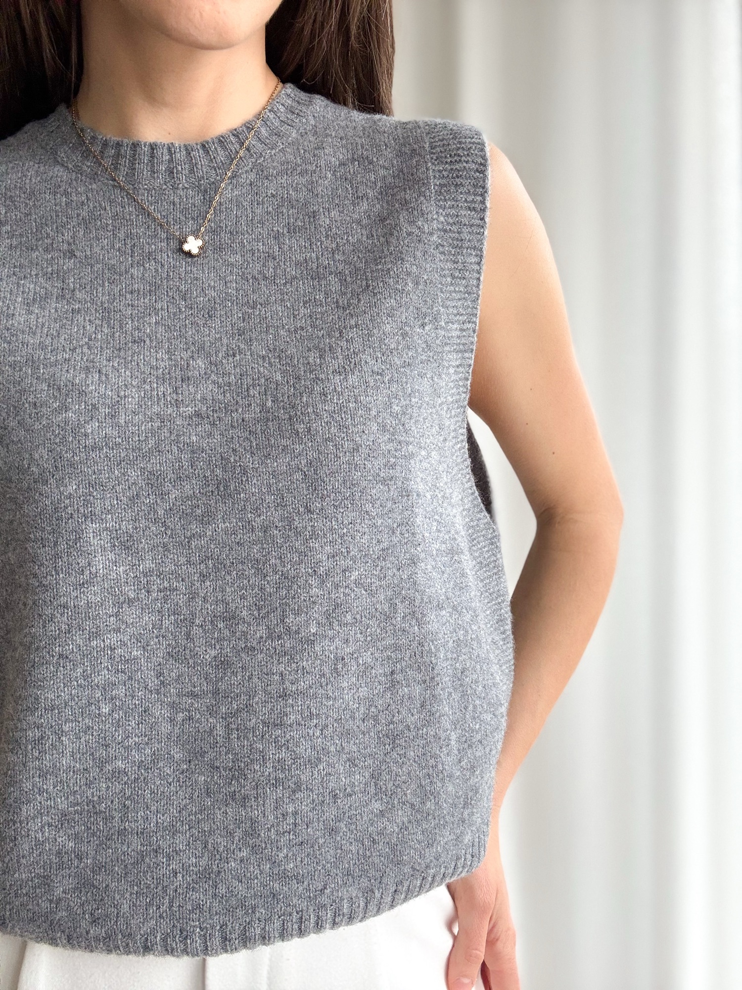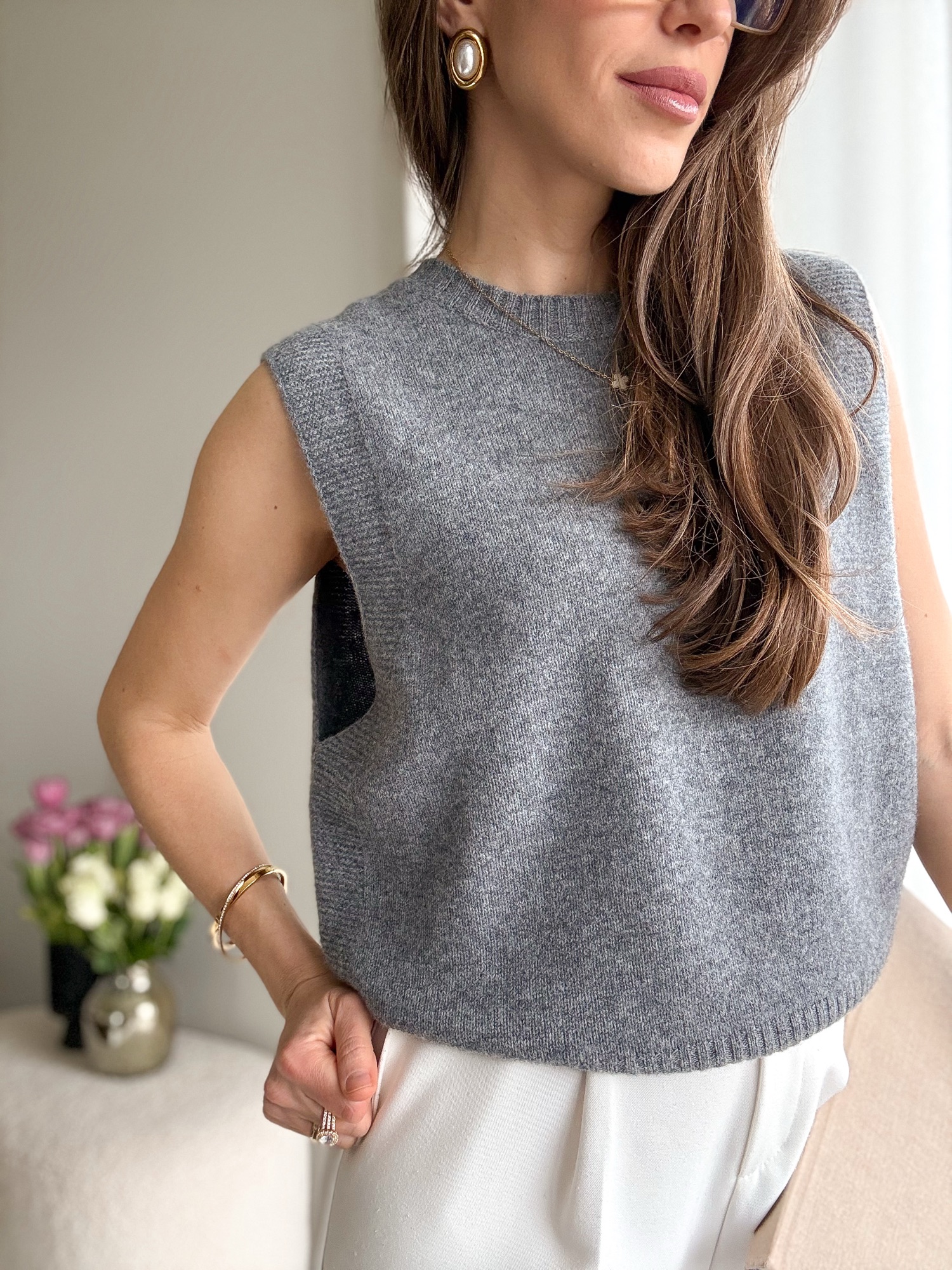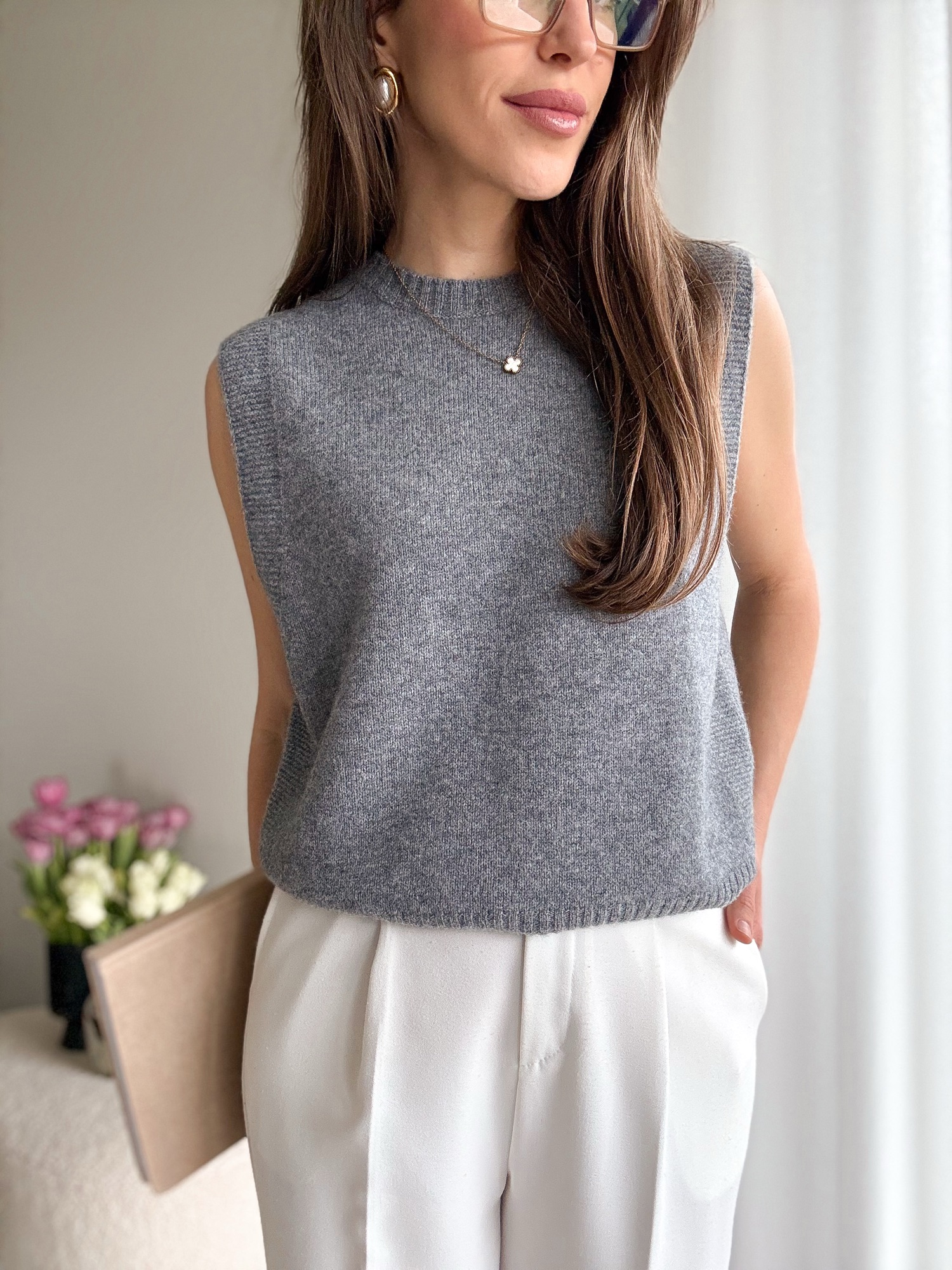 Bezrękawnik wykonany z miękkiej, niegryzącej, wełnianej dzianiny.