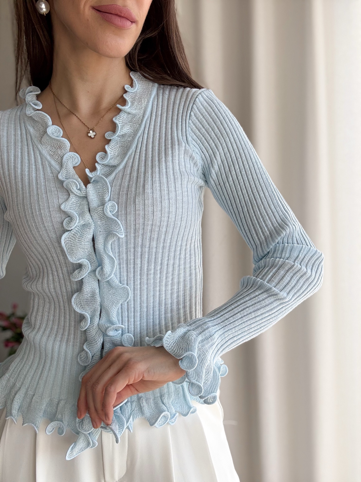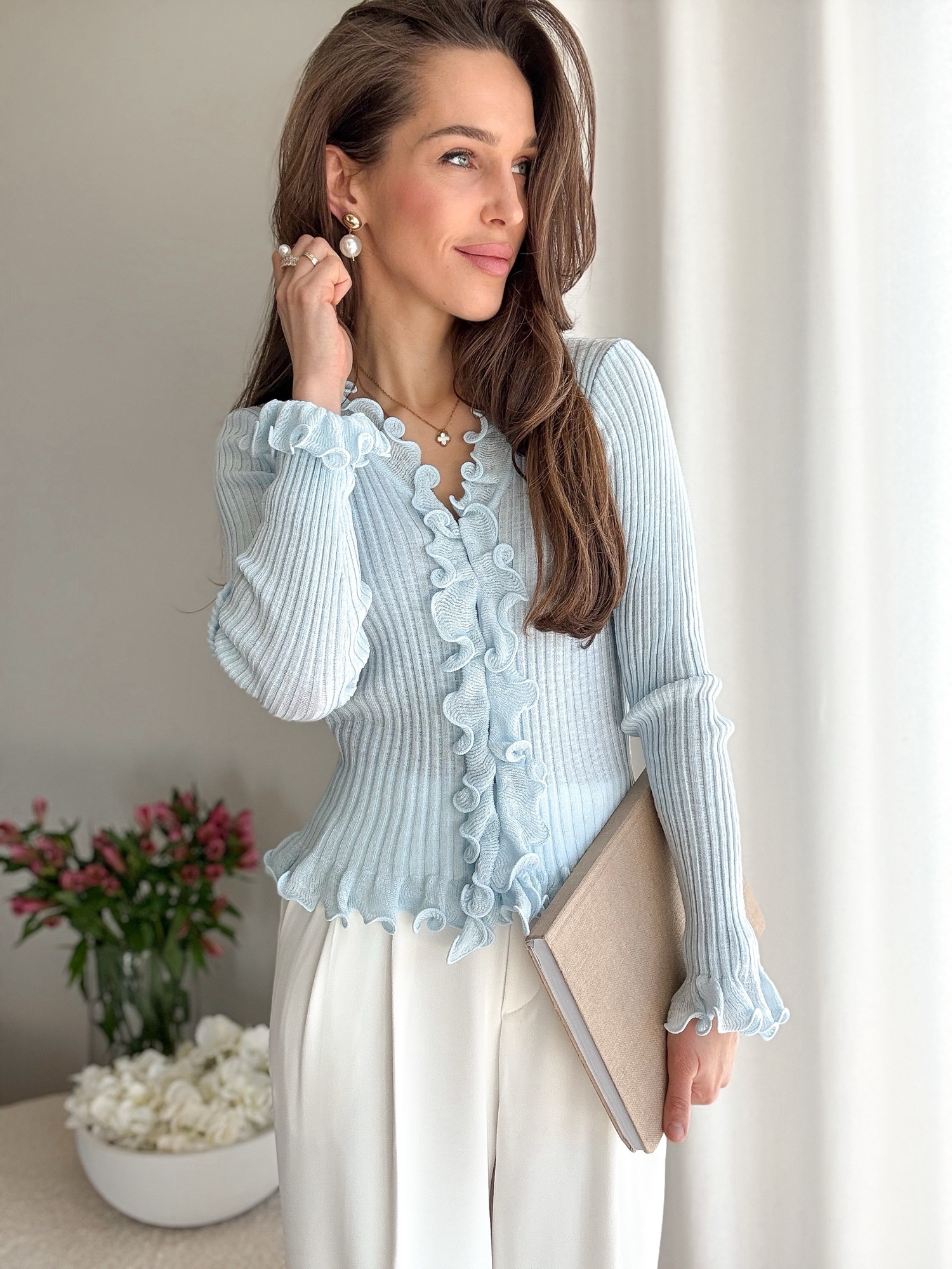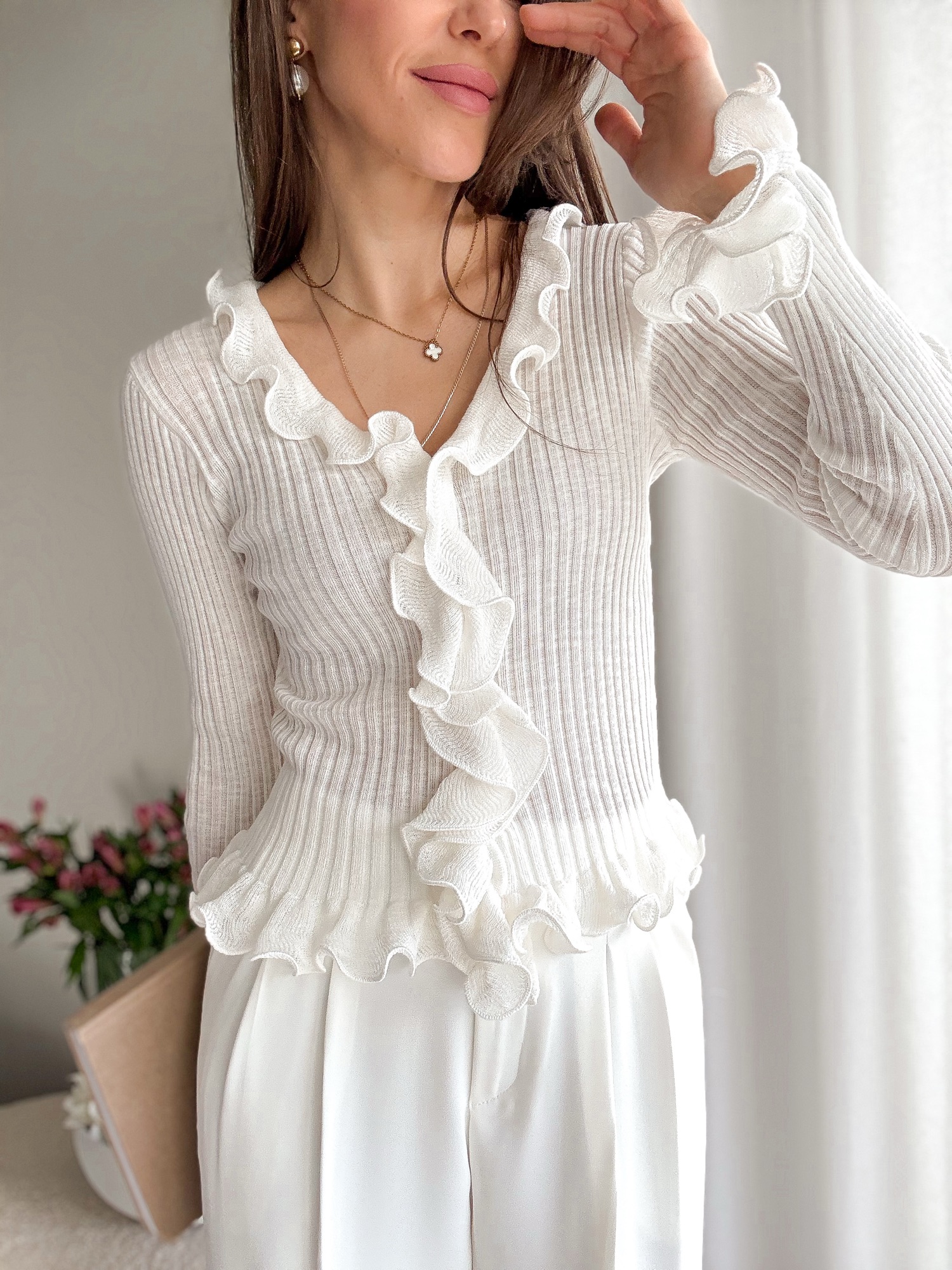 Ozdobna falbanka na przodzie oraz przy dekolcie.