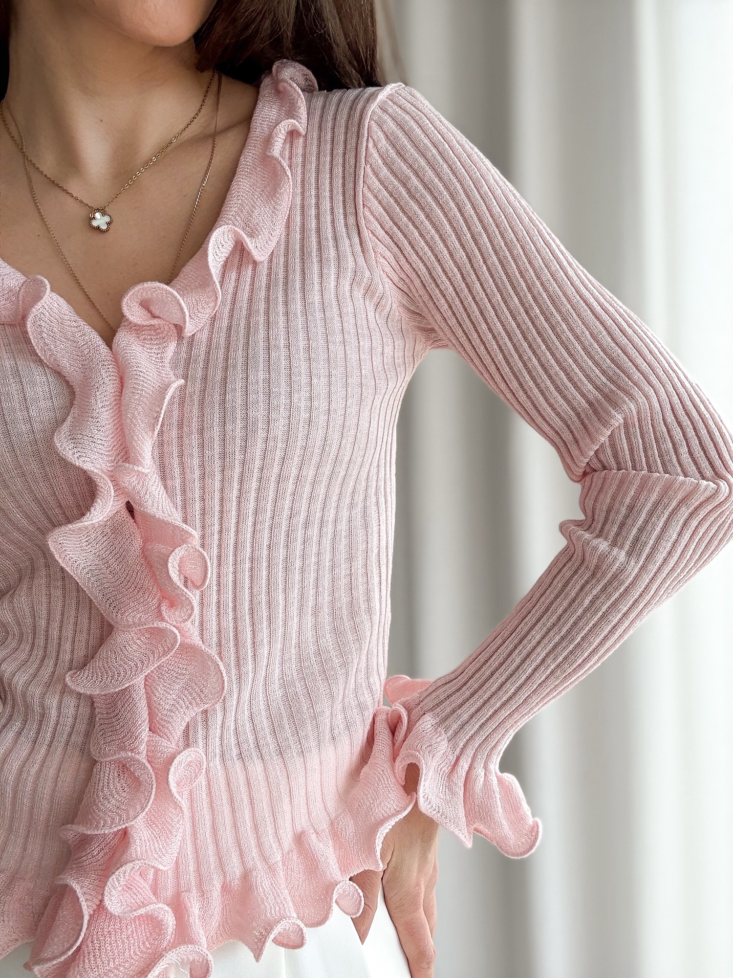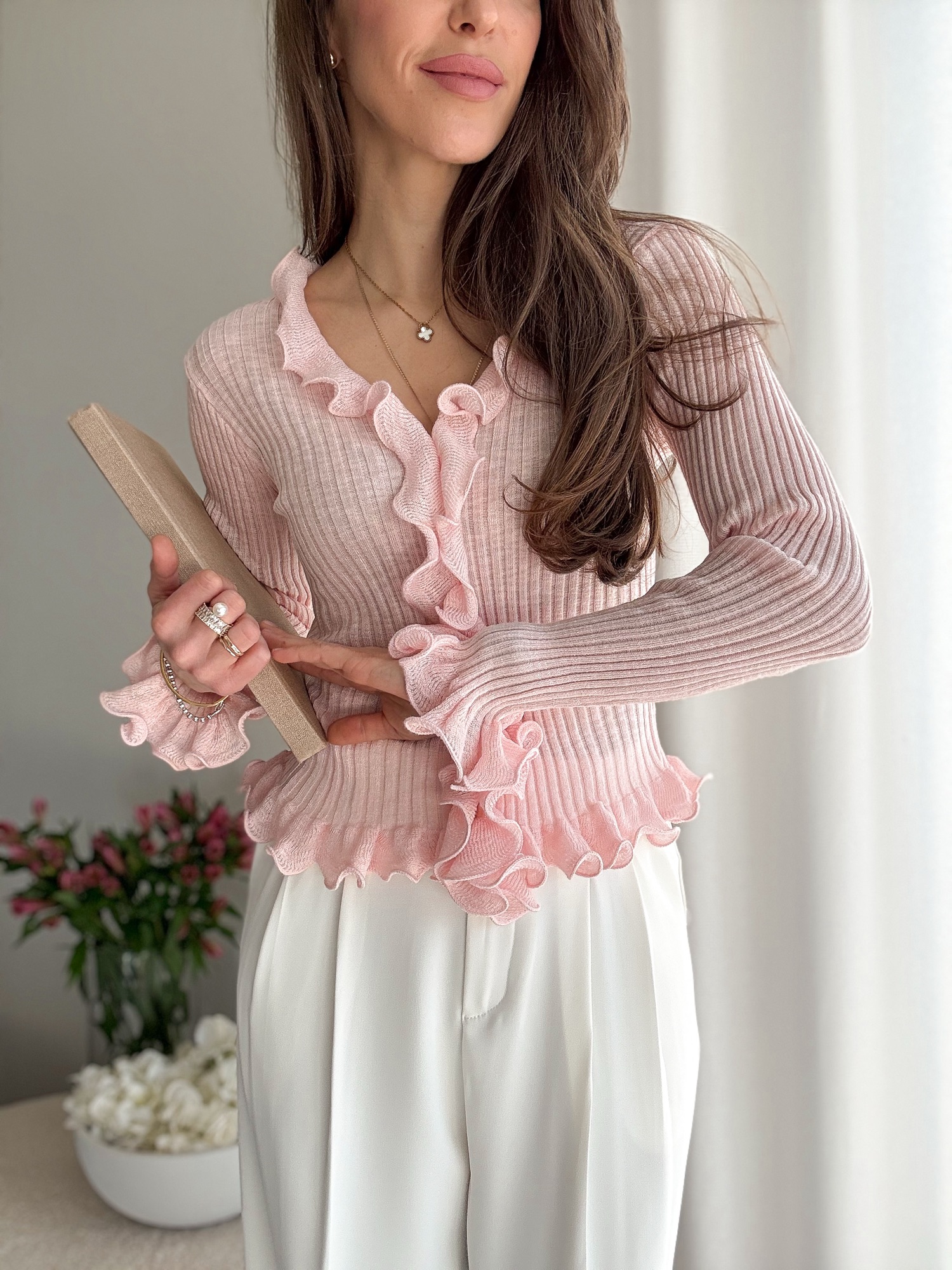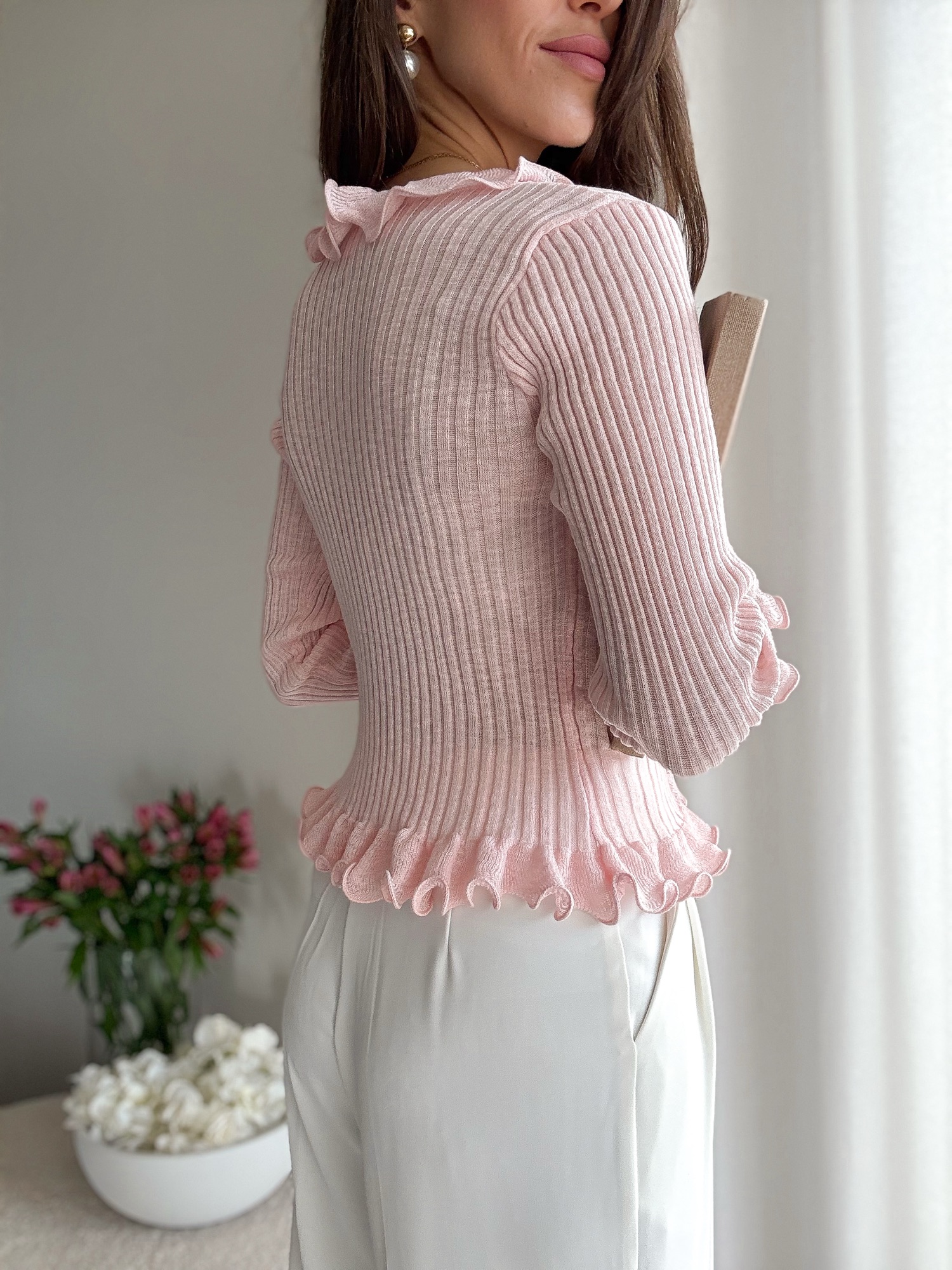 Ozdobna falbanka na przodzie oraz przy dekolcie.
