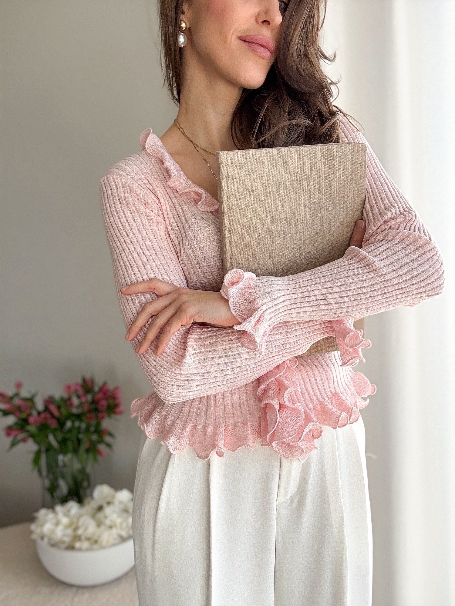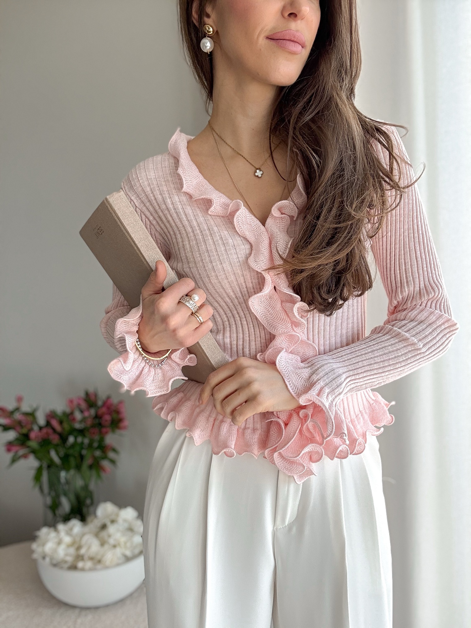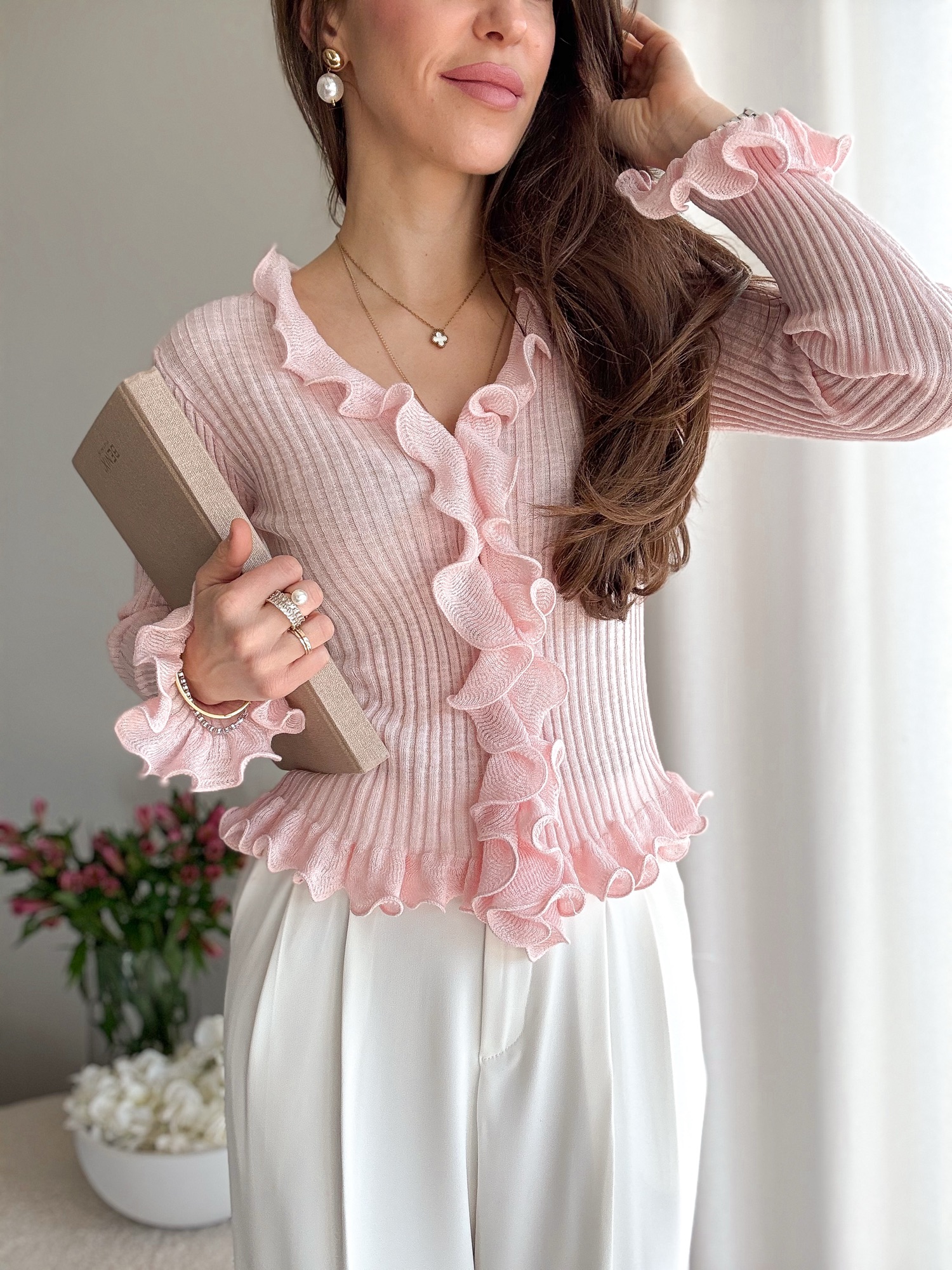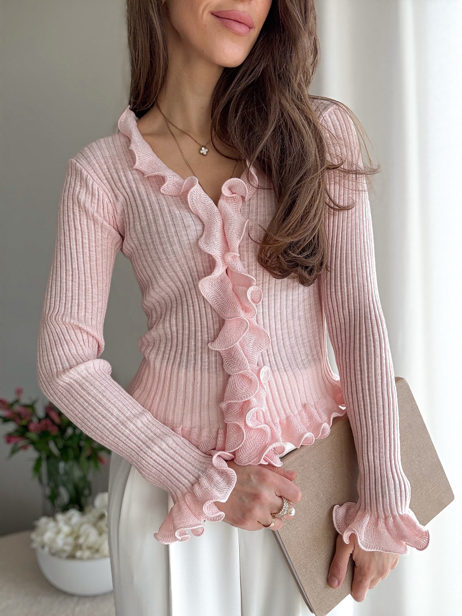 Ozdobna falbanka na przodzie oraz przy dekolcie.