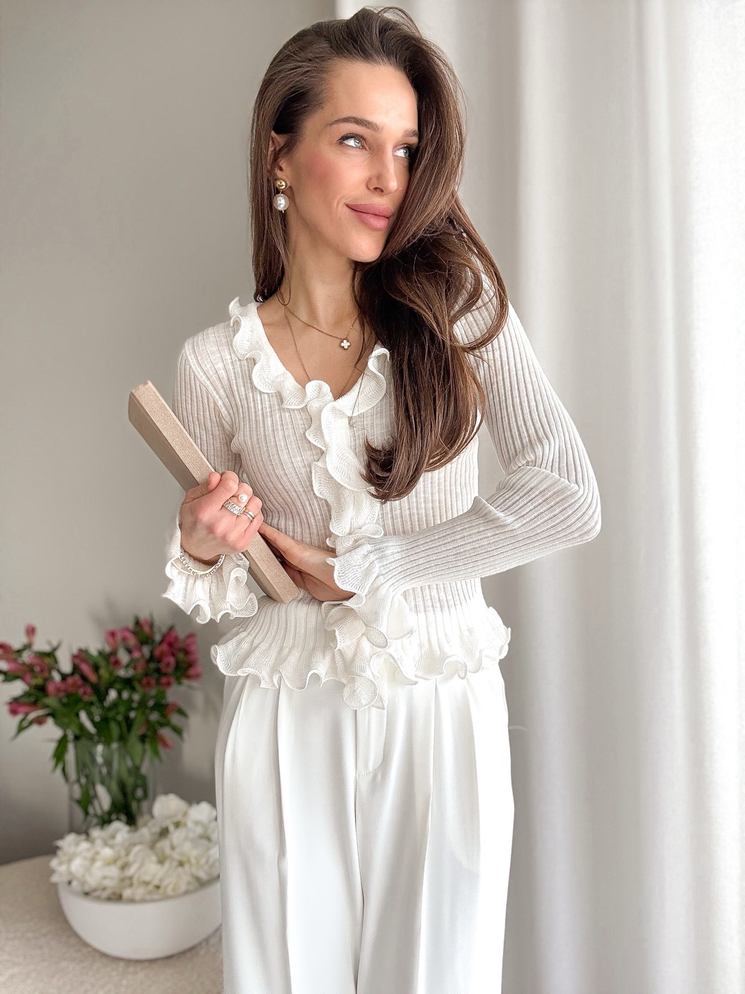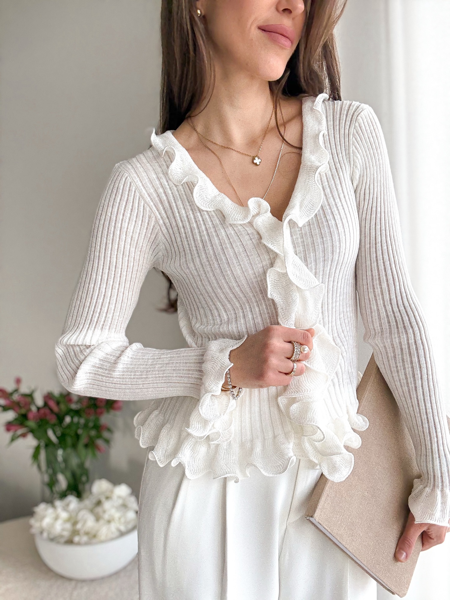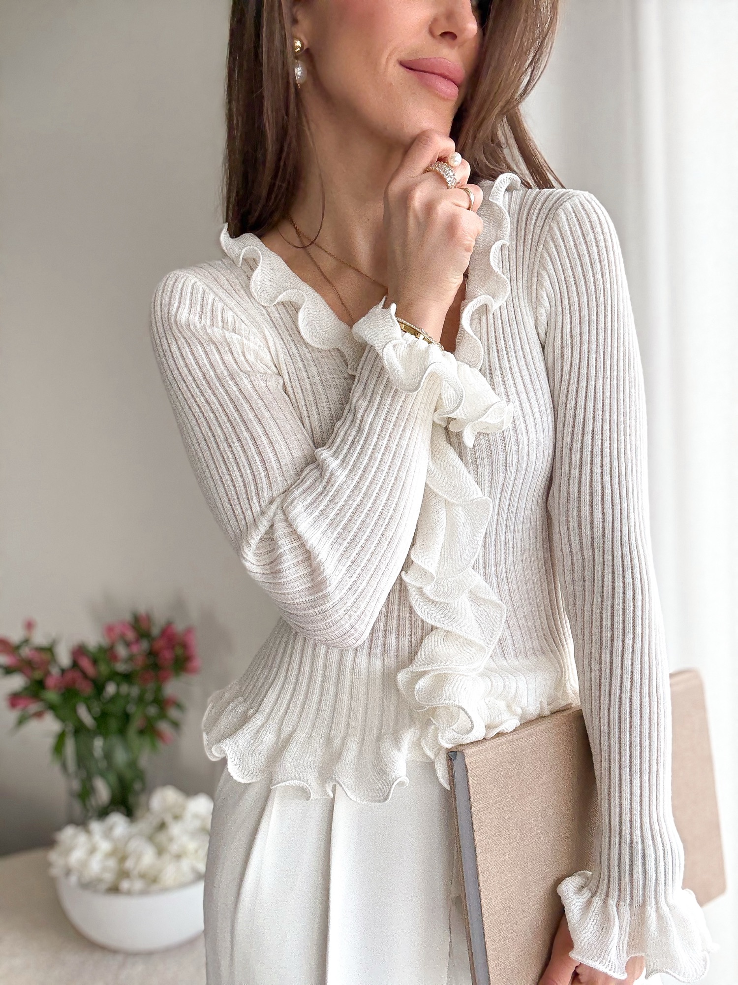 Prążkowana bluzka w romantycznym stylu.