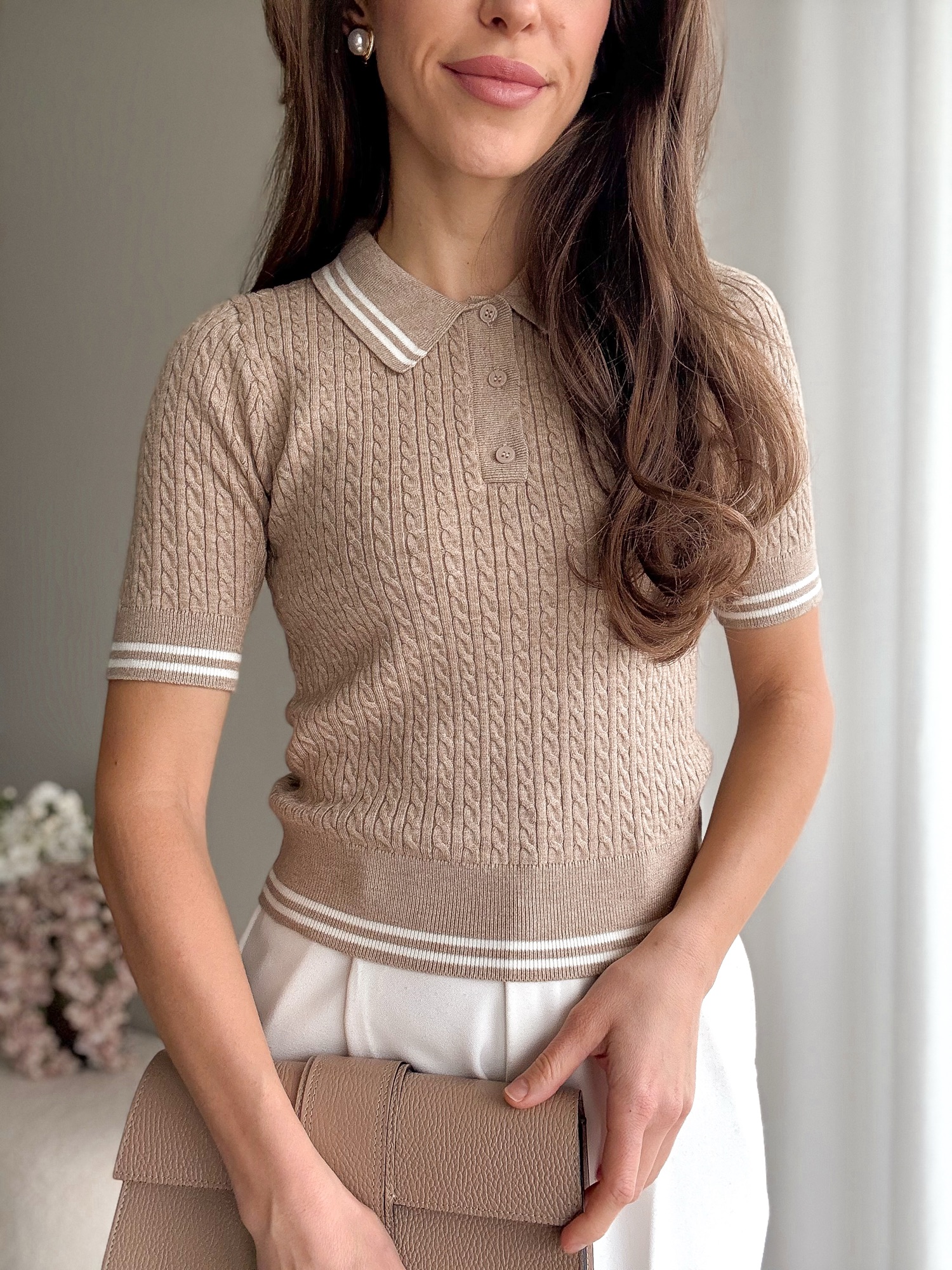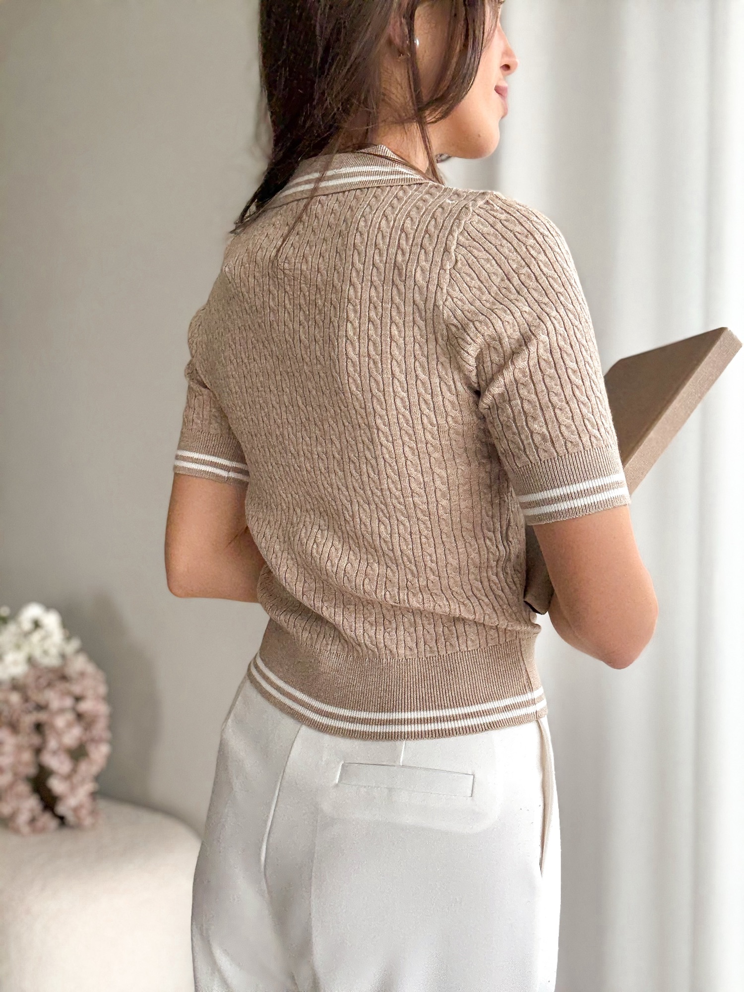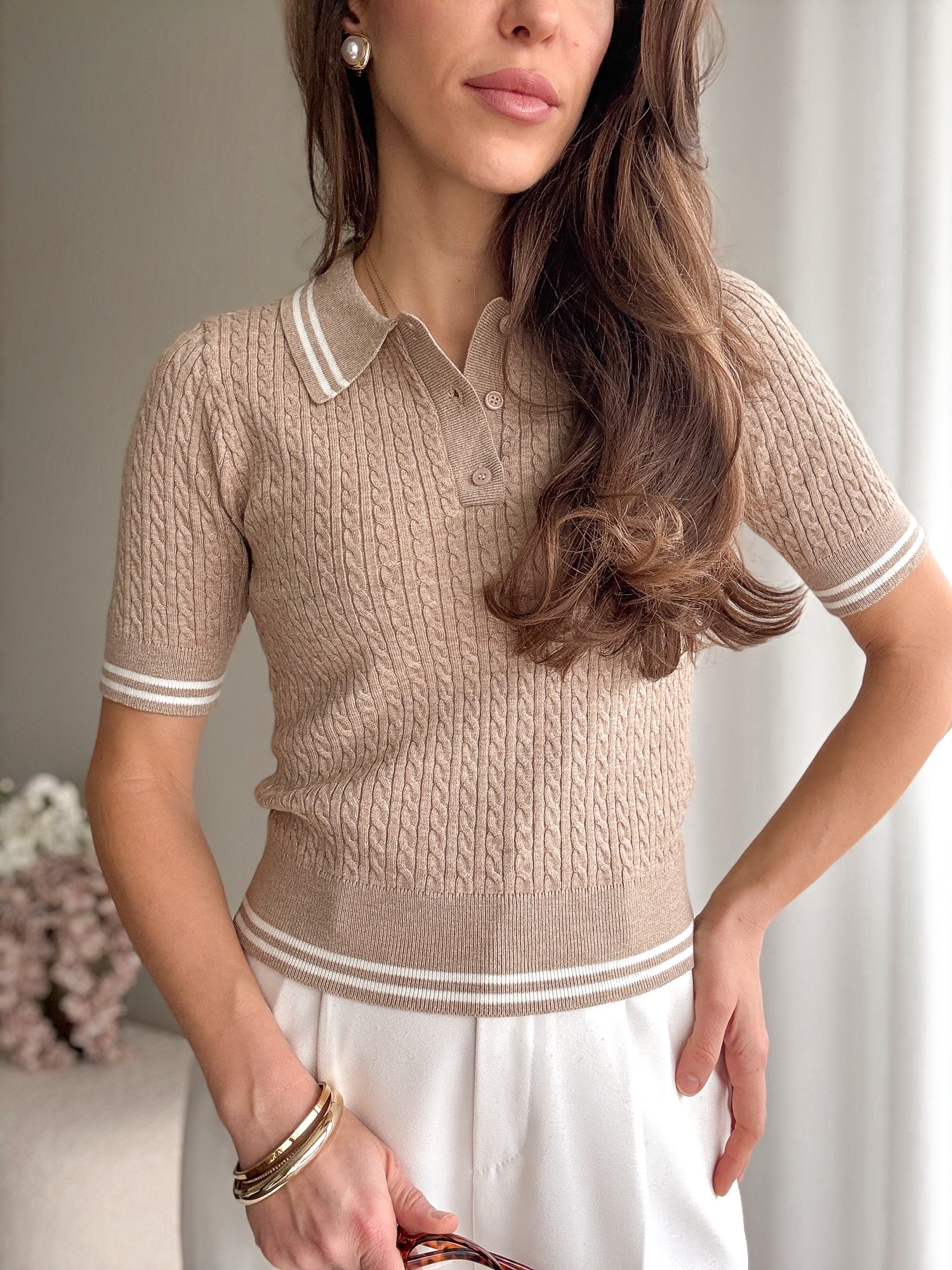 Klasyczna koszulka polo na krótki rękaw w warkoczowy splot.