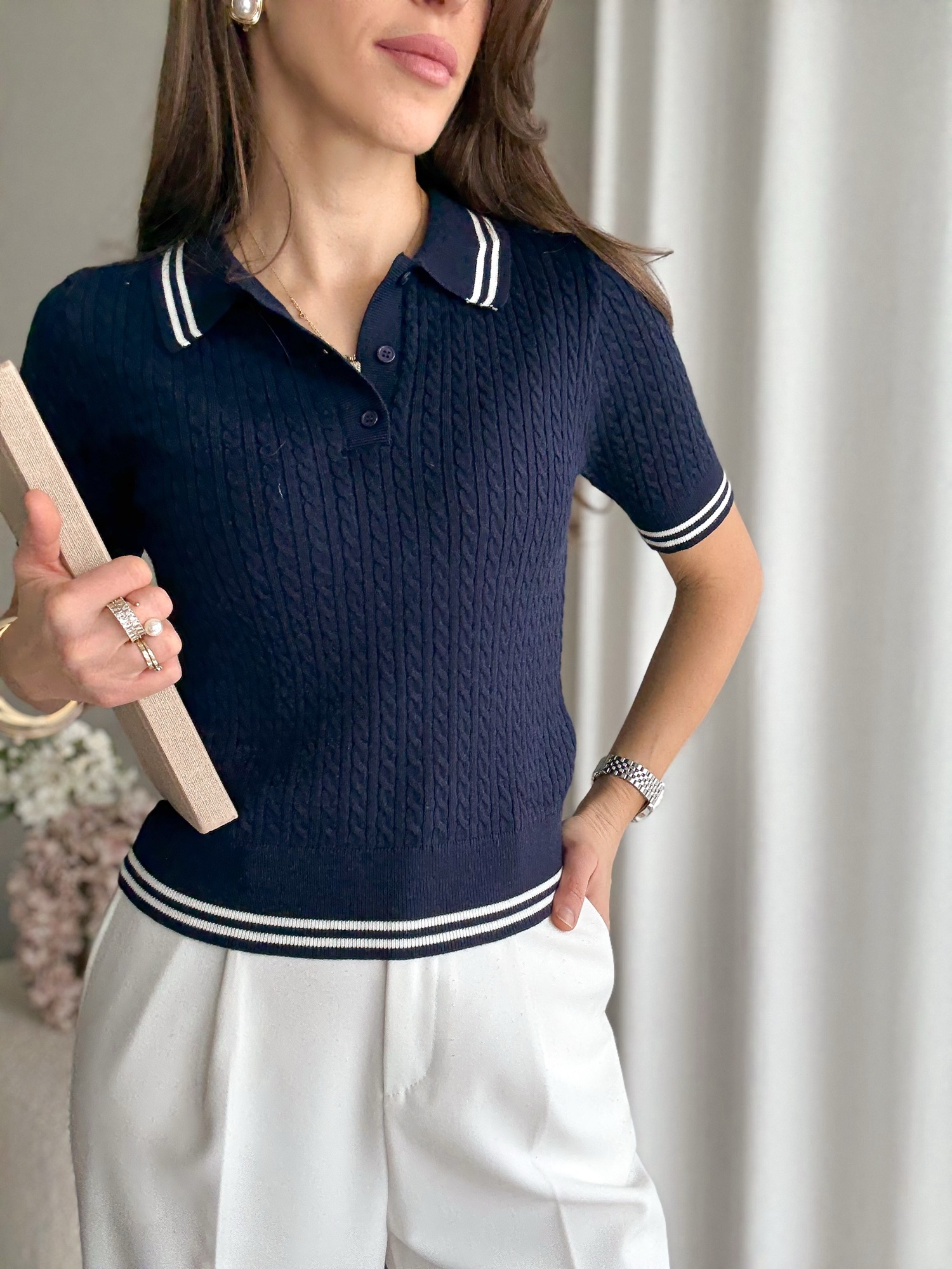 Klasyczna koszulka polo na krótki rękaw w warkoczowy splot.