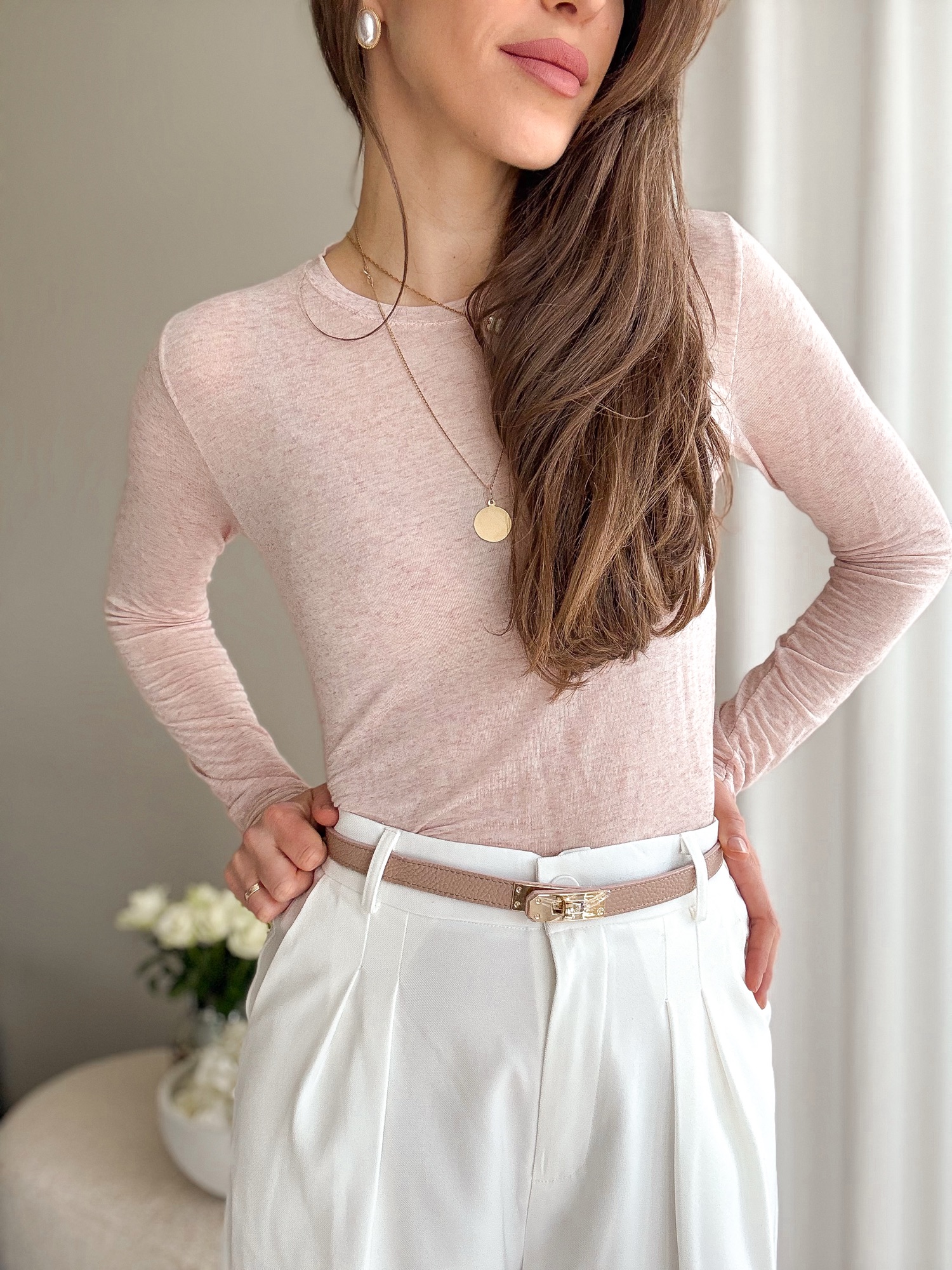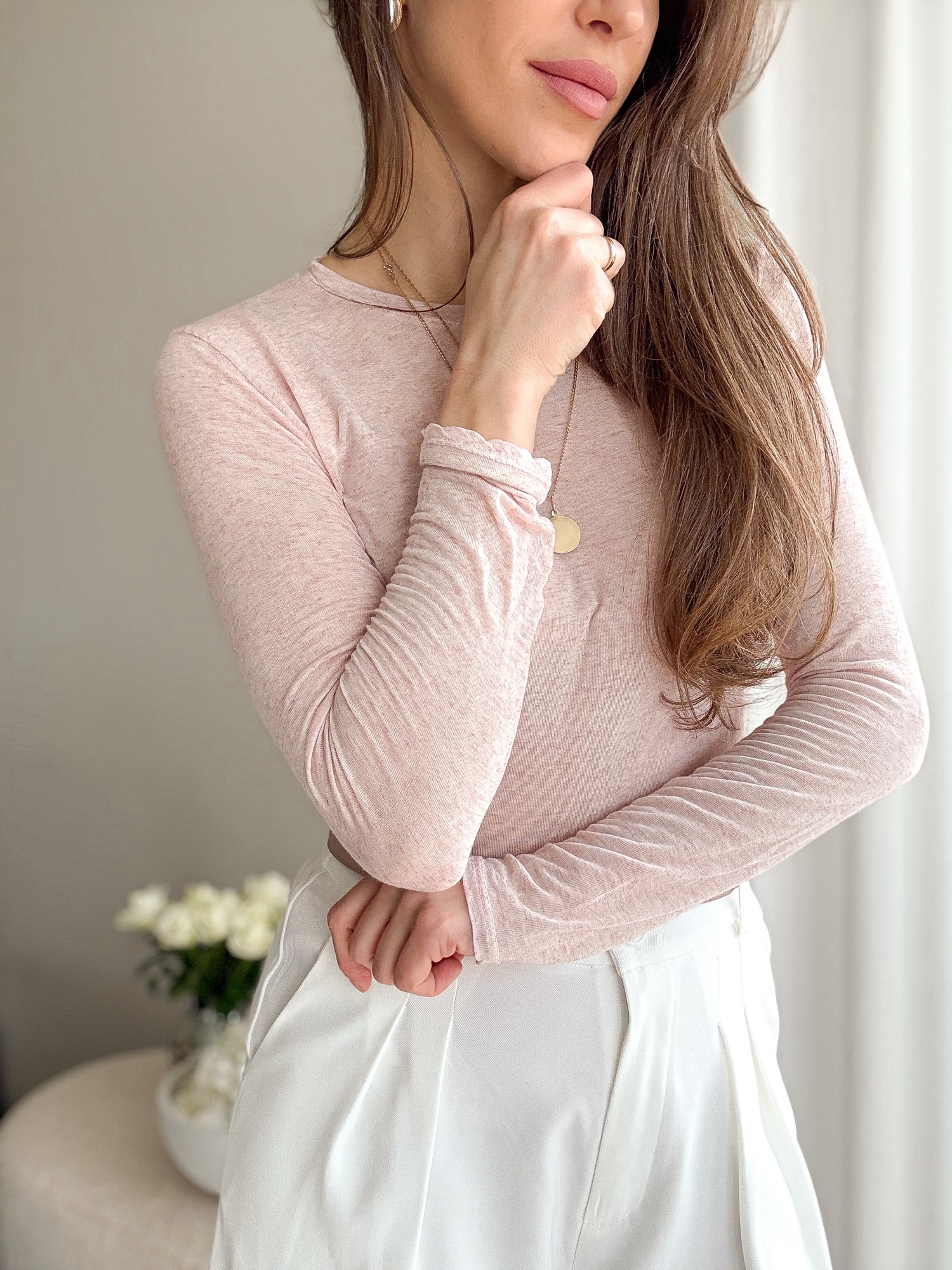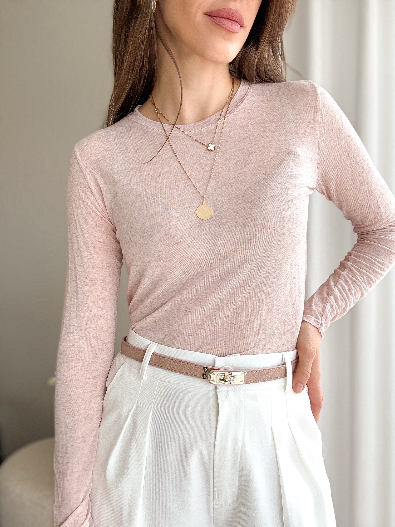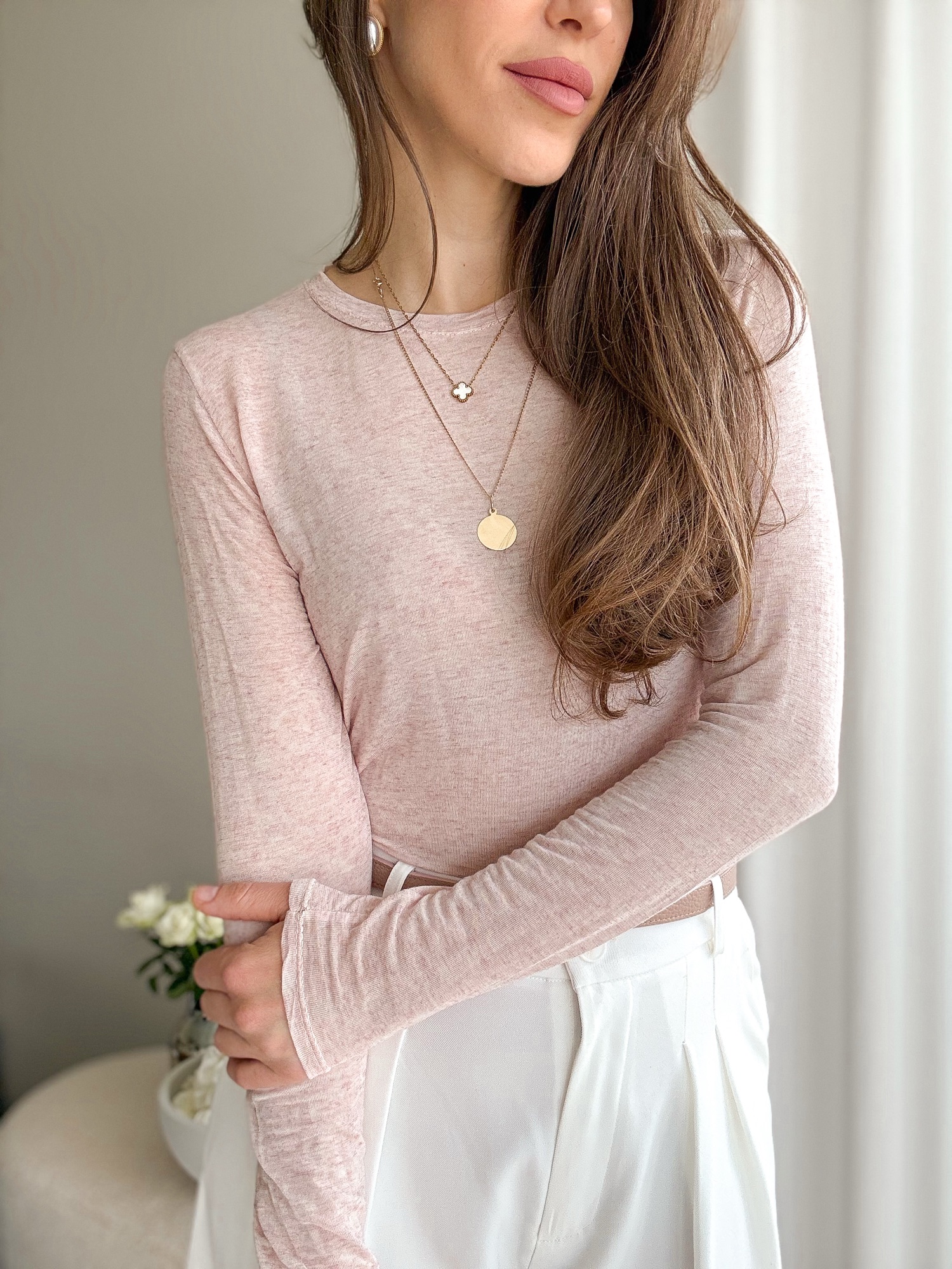 Bluzka Second Skin z kaszmirem – jasny róż