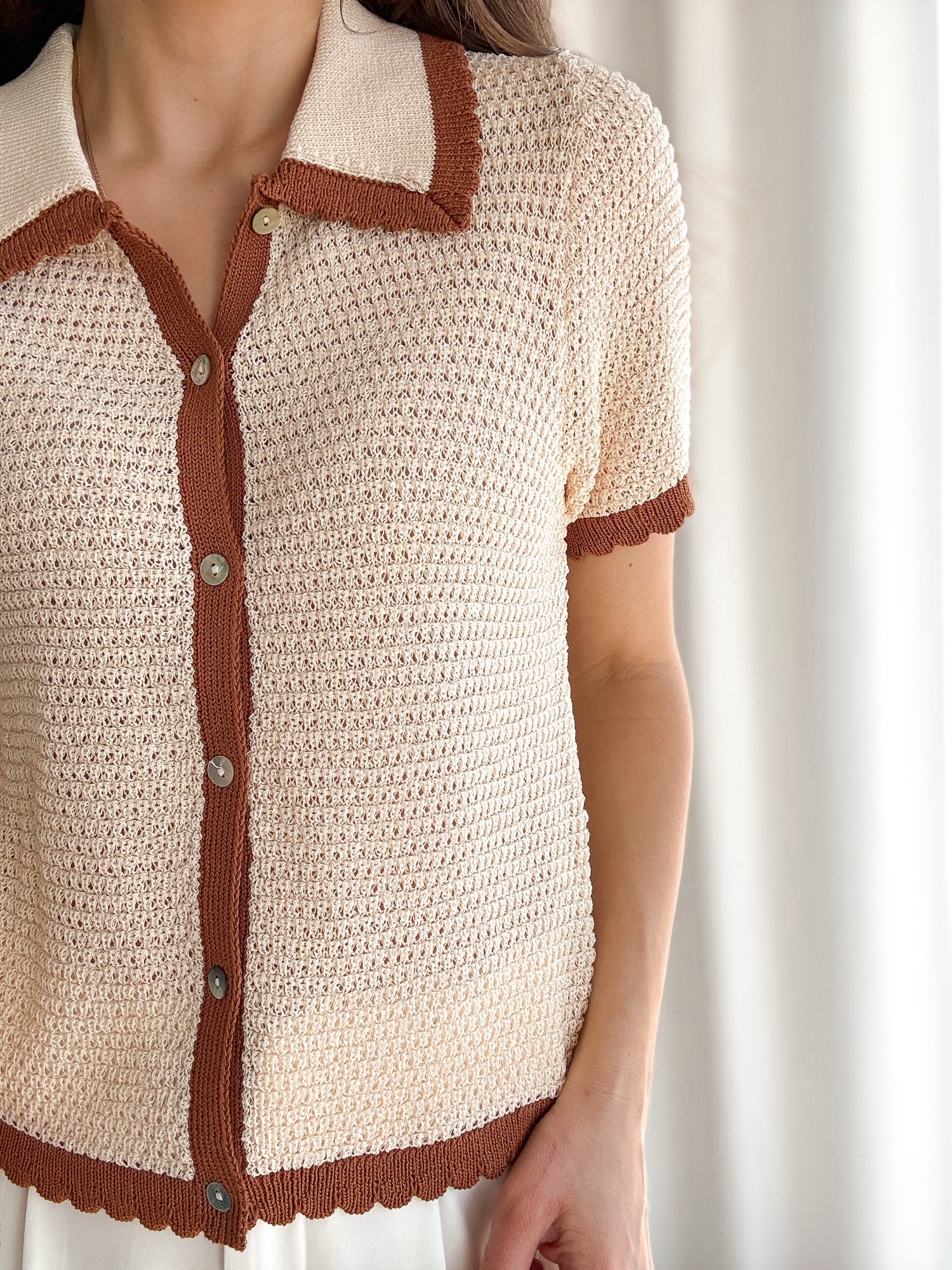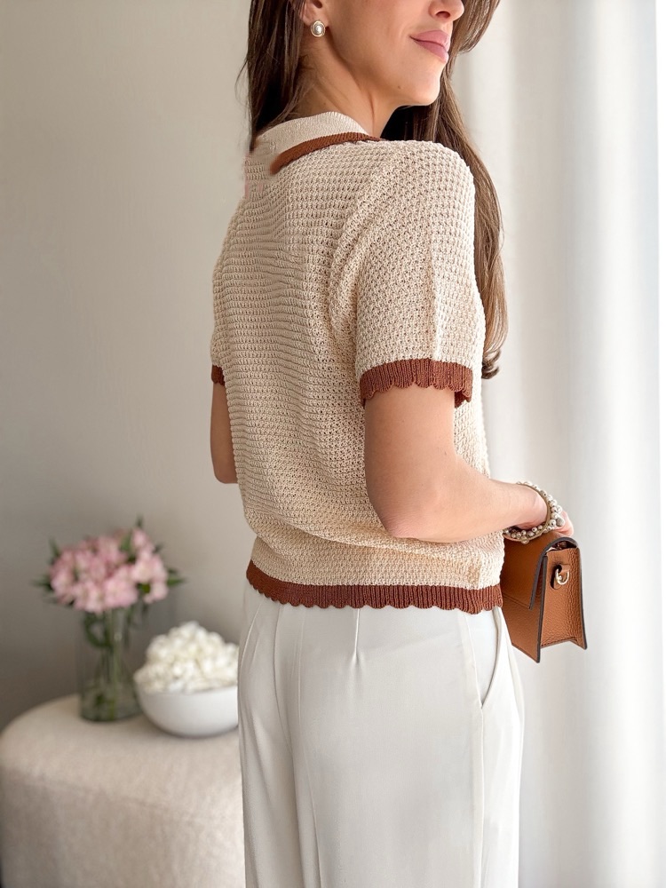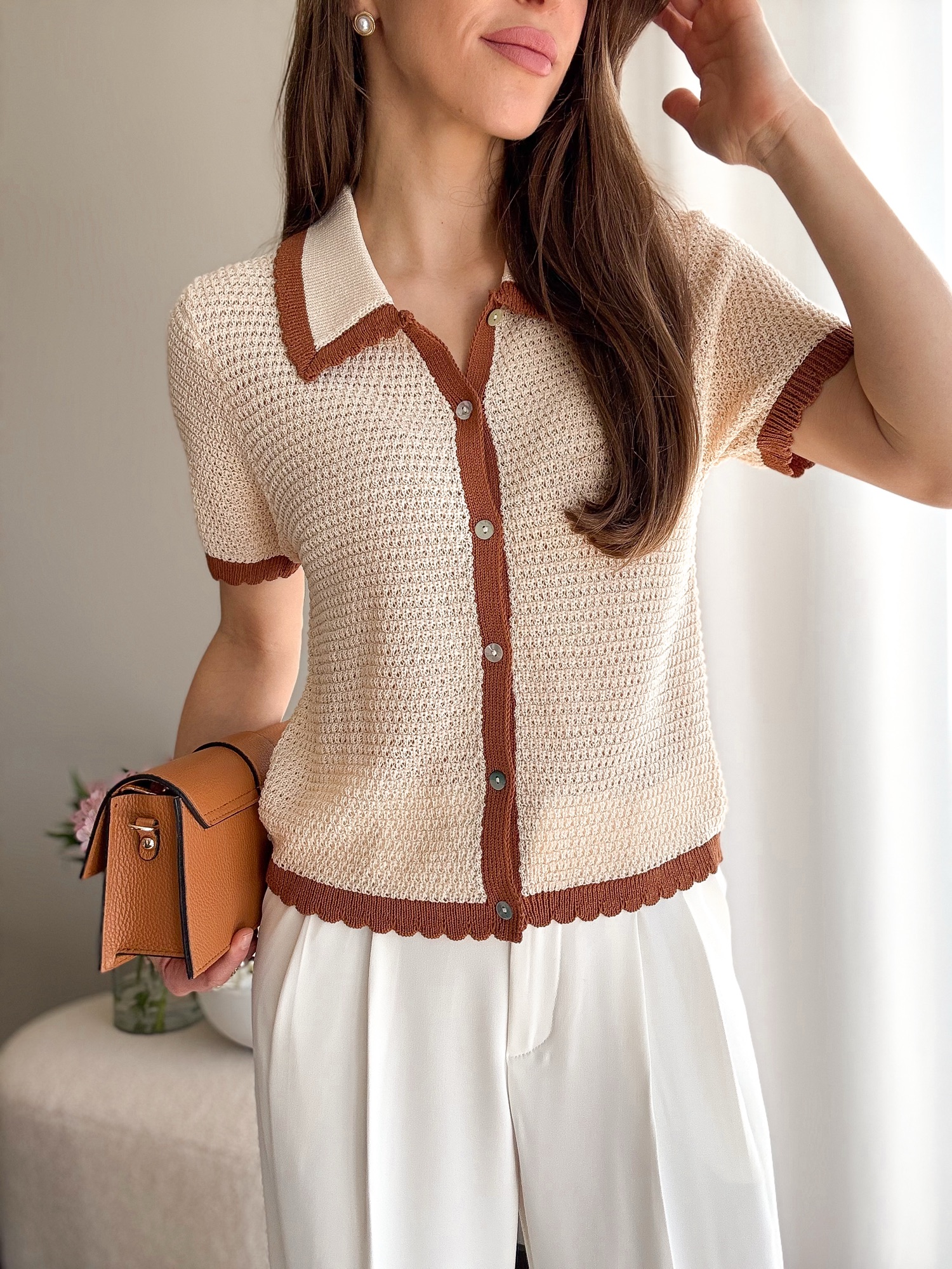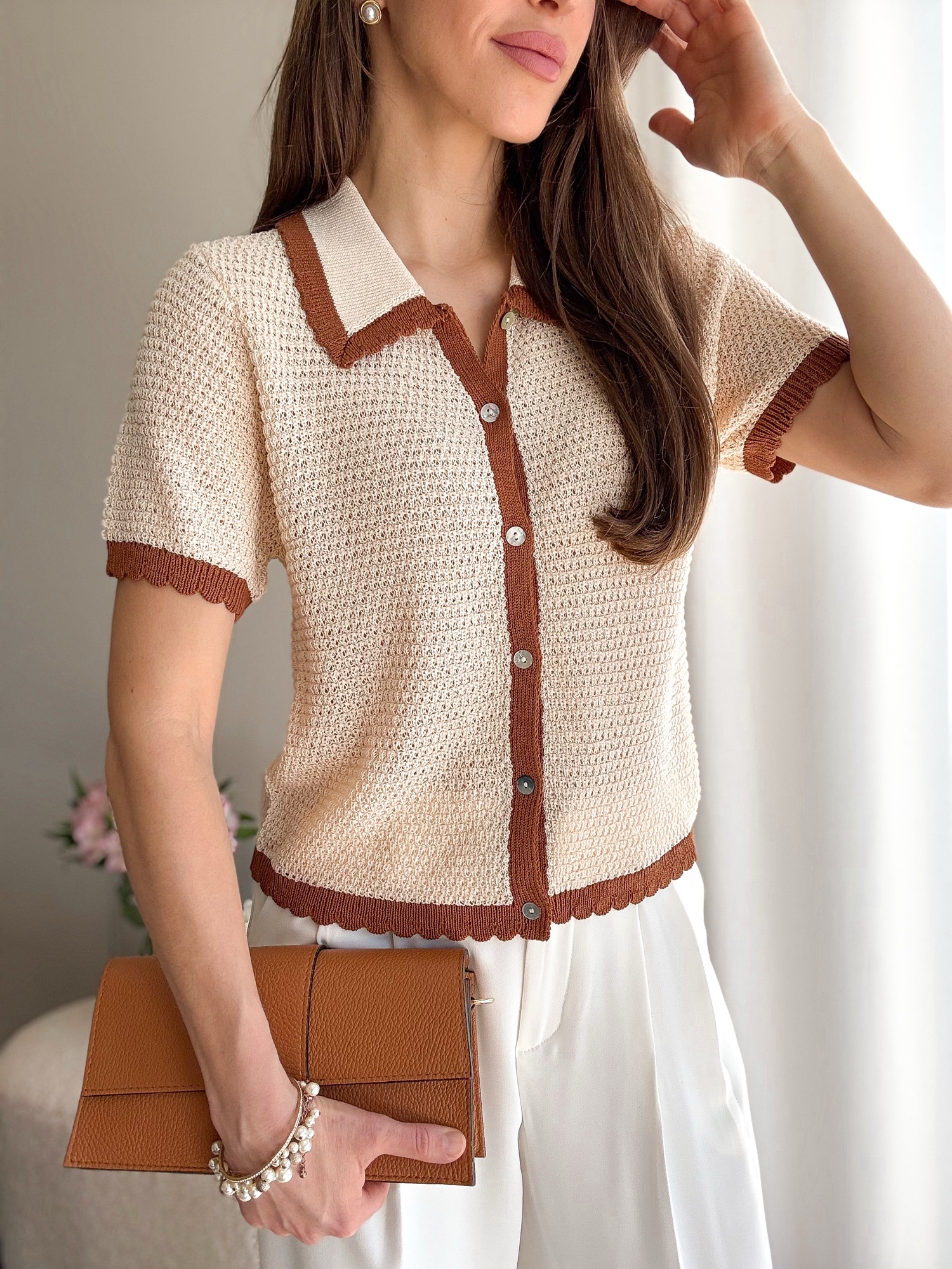 Kardigan z krótkim rękawem wykonany z delikatnej dzianiny.