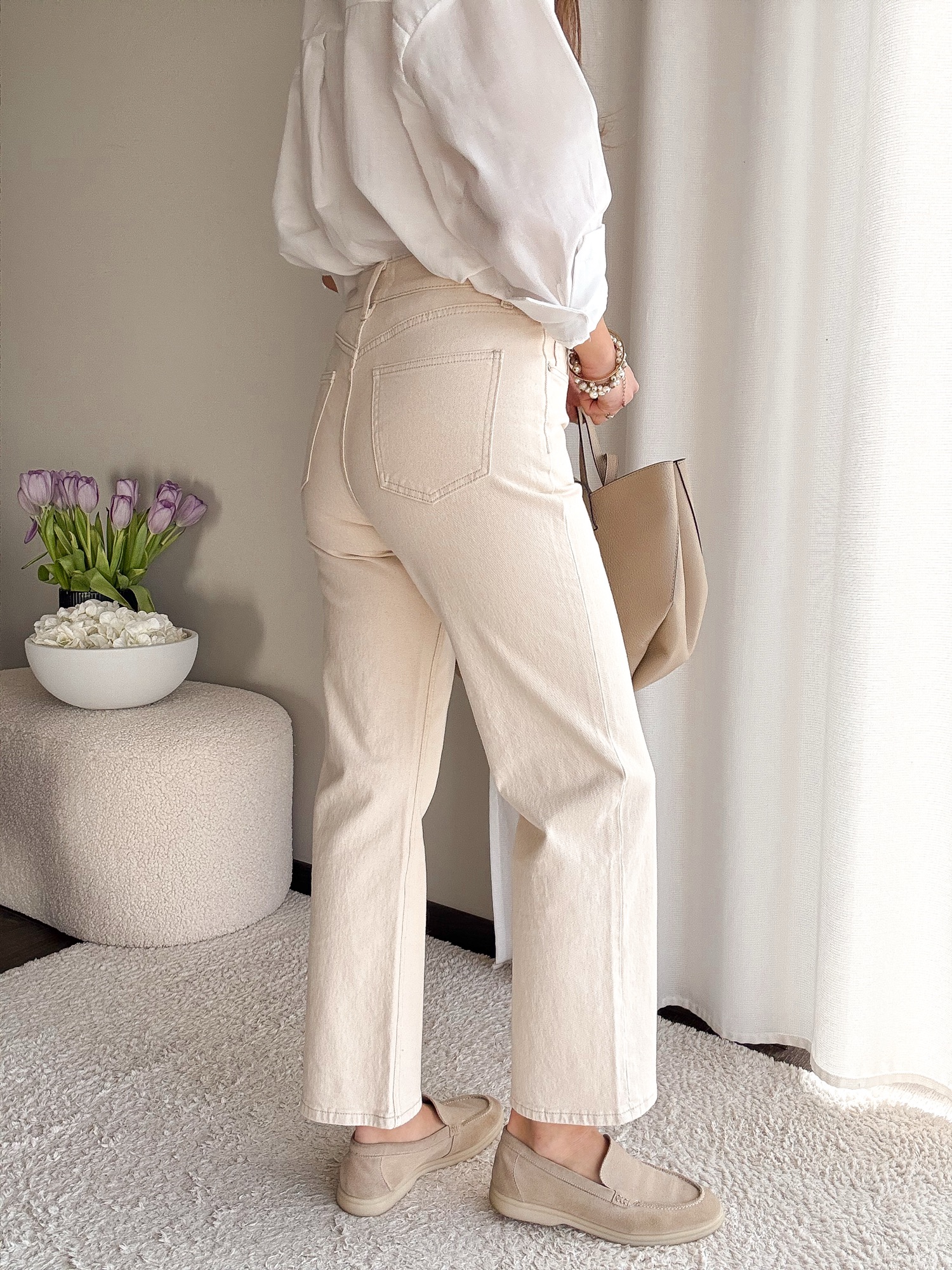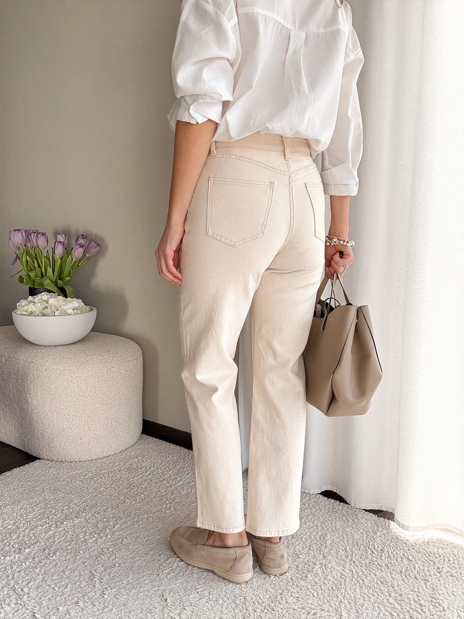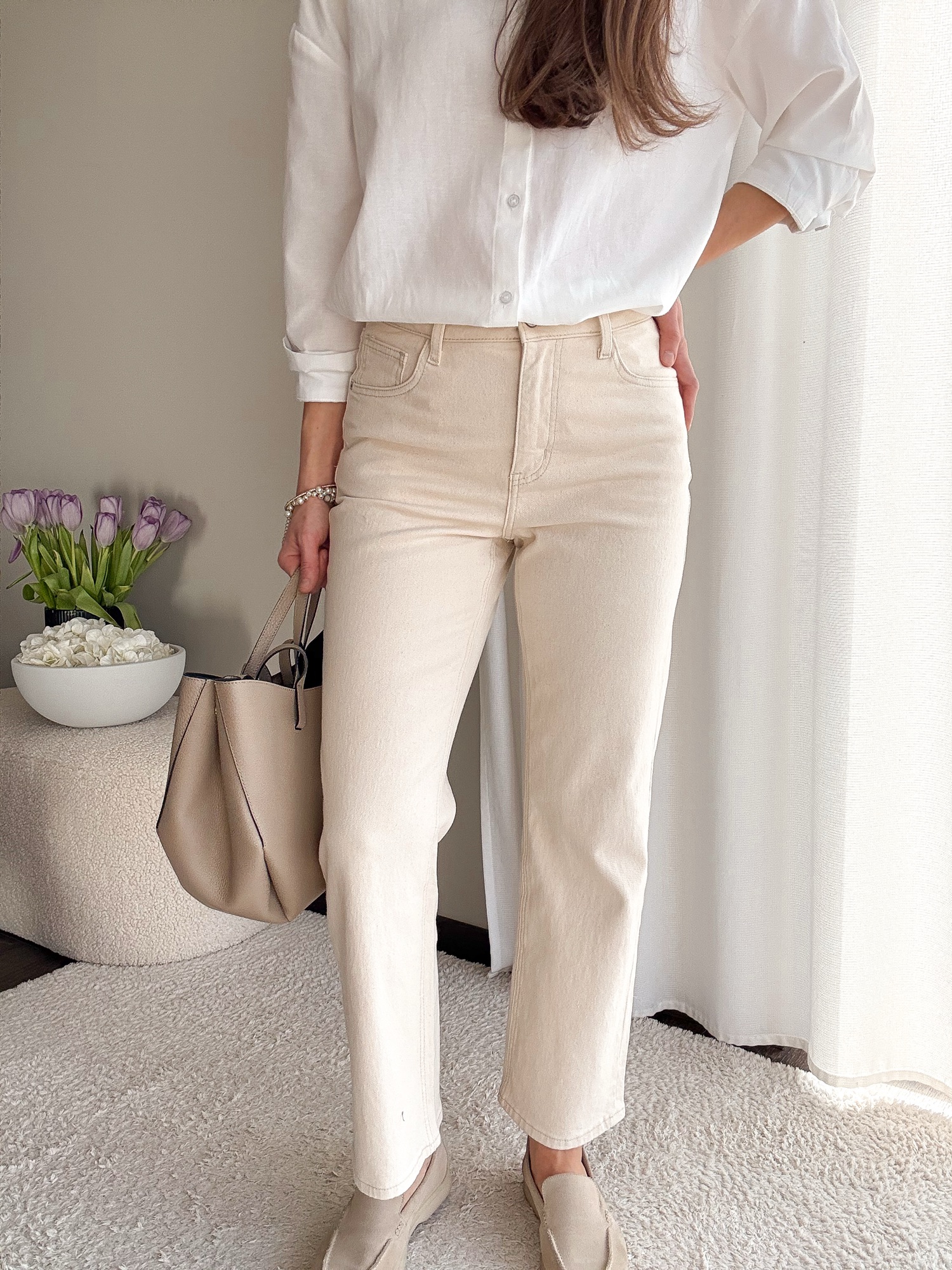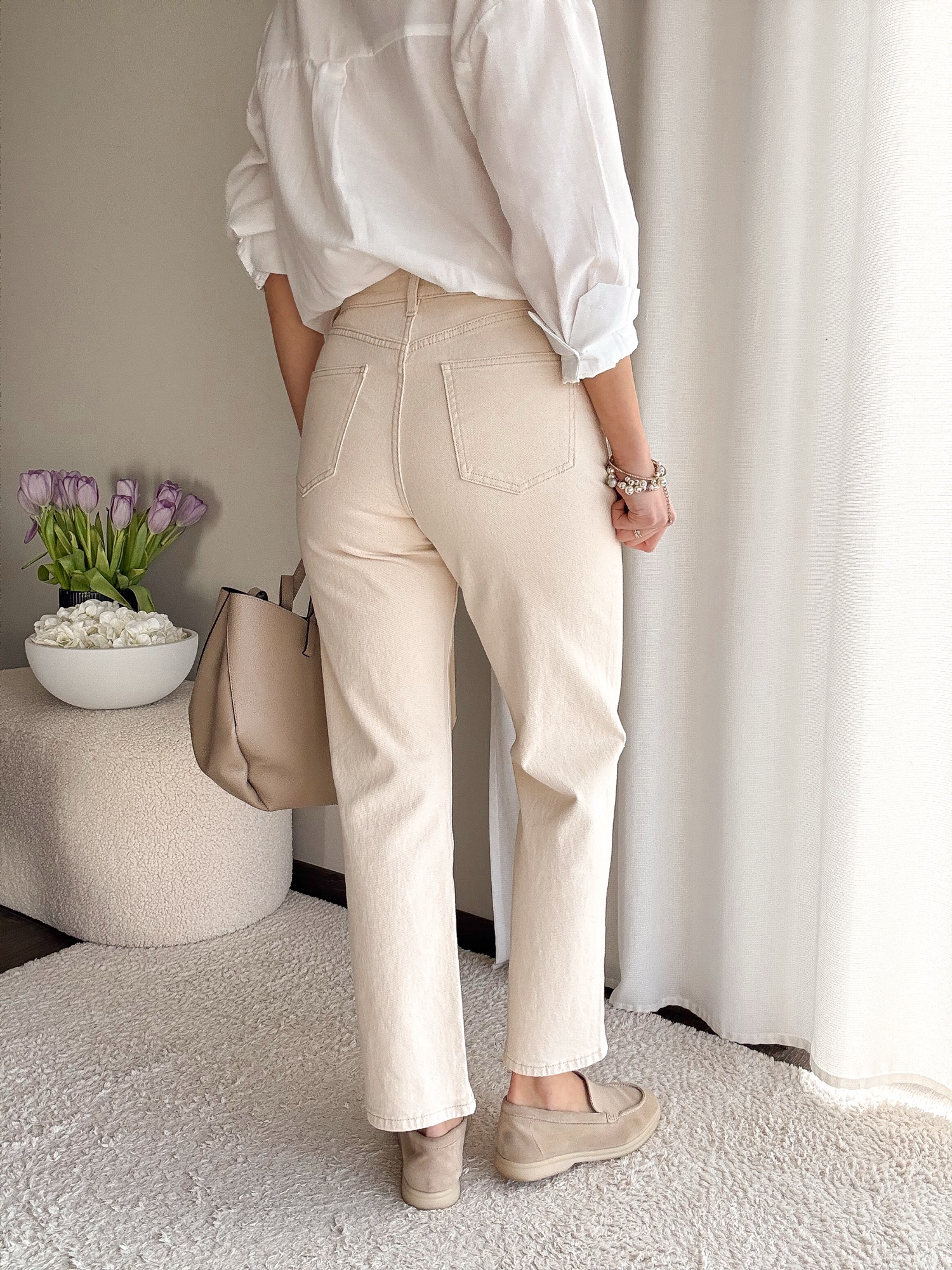 Jeansy o prostym kroju w kolorze jasnego beżu.