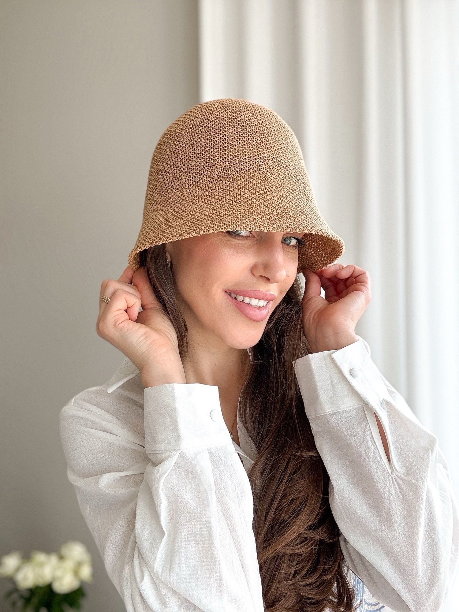 Wakacyjny kapelusz wykonany z naturalnej słomki.
