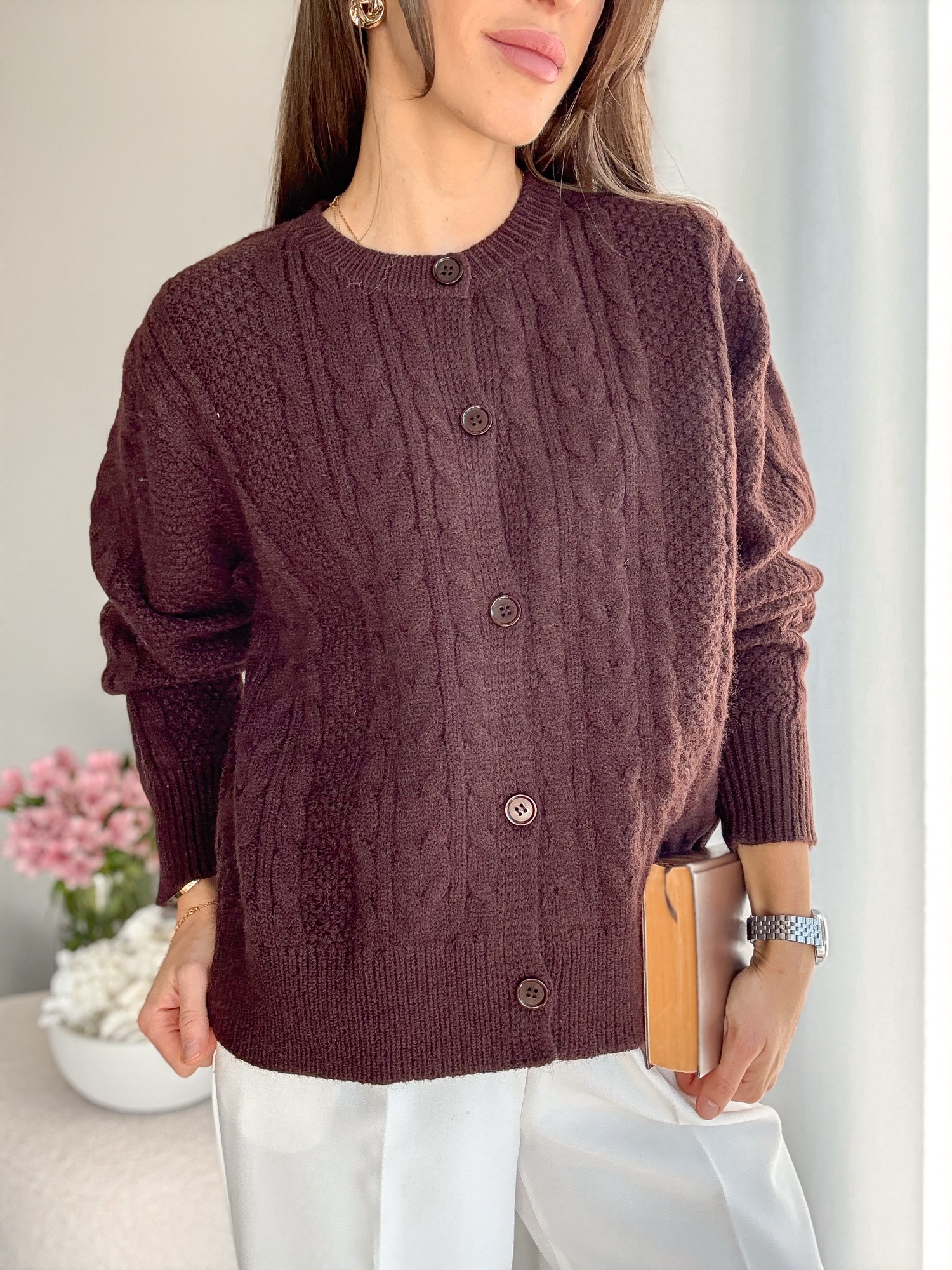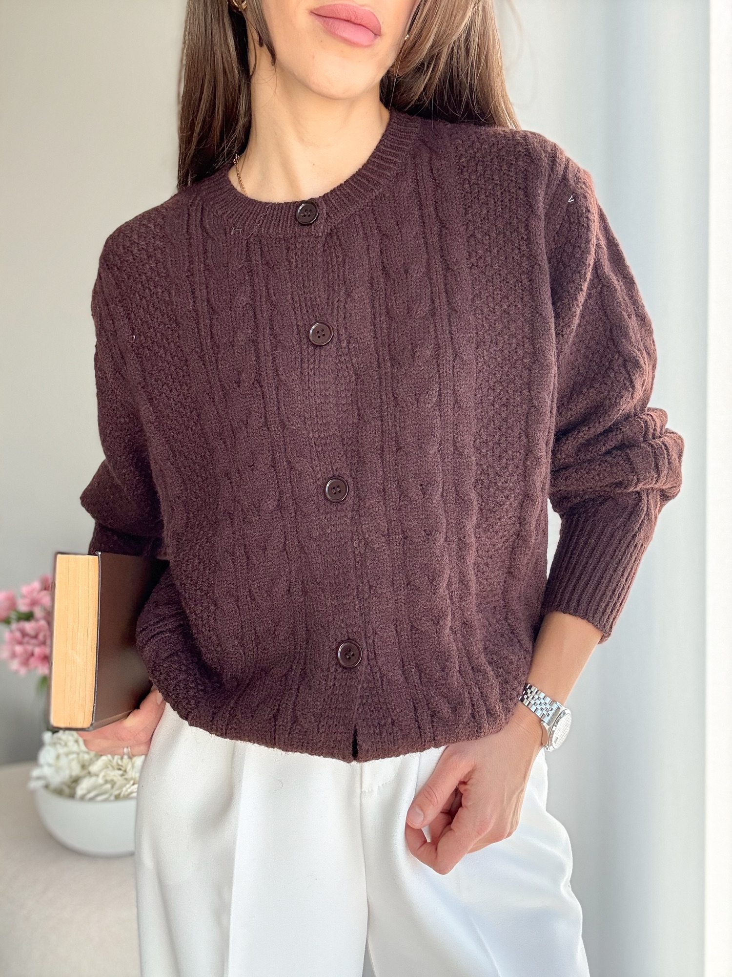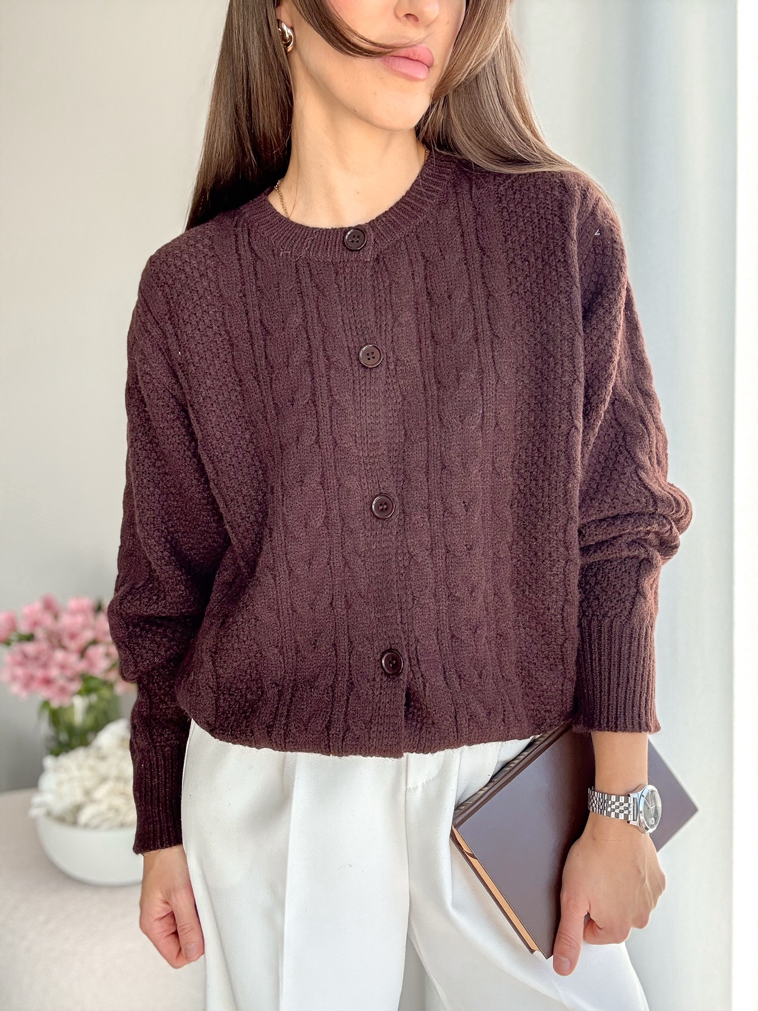 Kardigan Sofia brąz – wełna+wiskoza