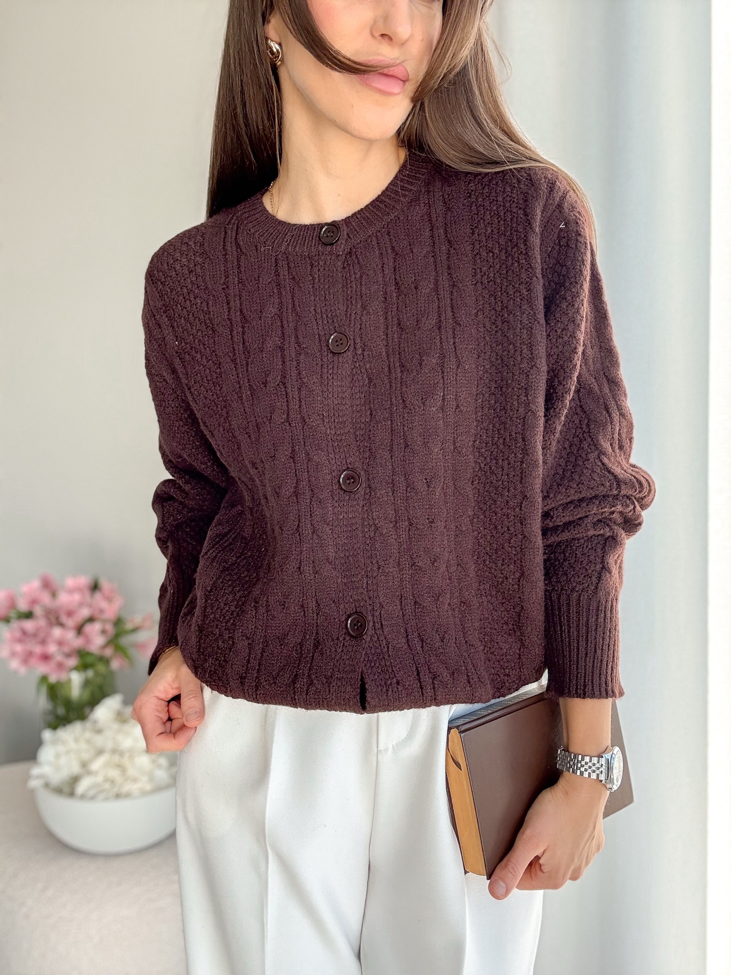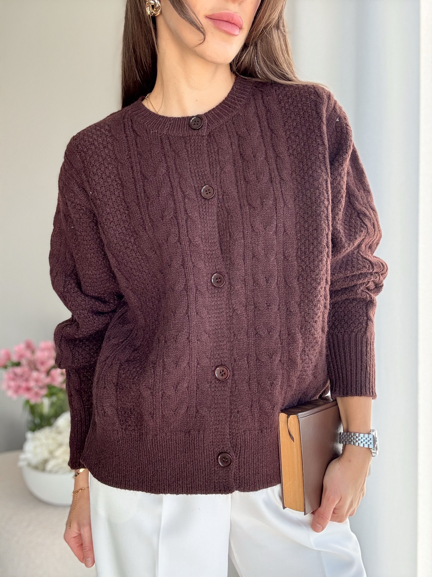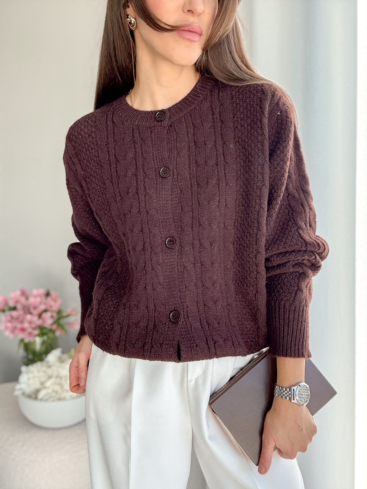 Kardigan Sofia brąz – wełna+wiskoza