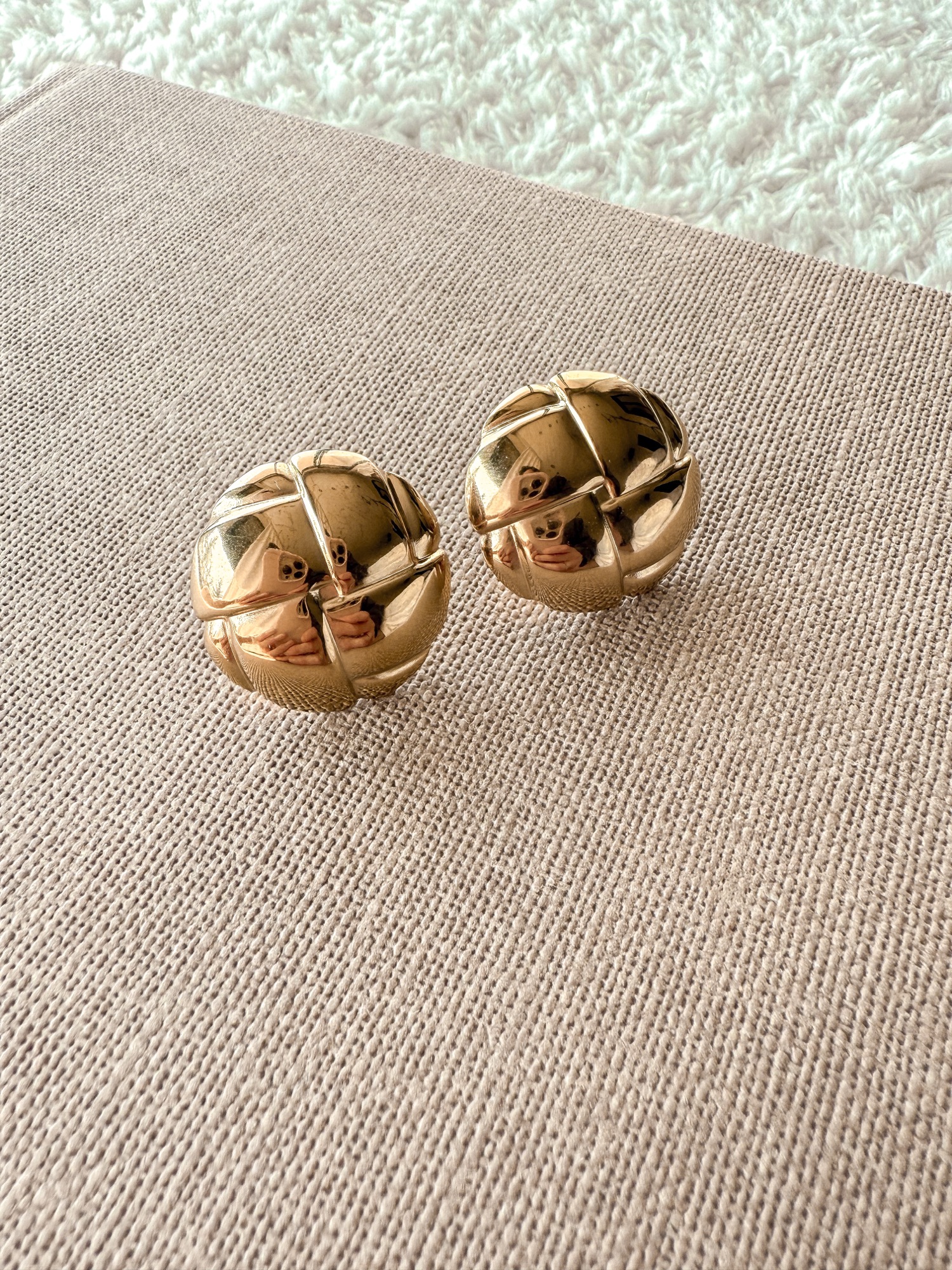 Okrągłe, duże kolczyki w pleciony wzór w stylu vintage.
