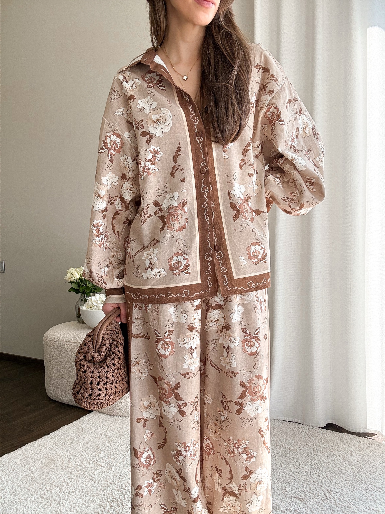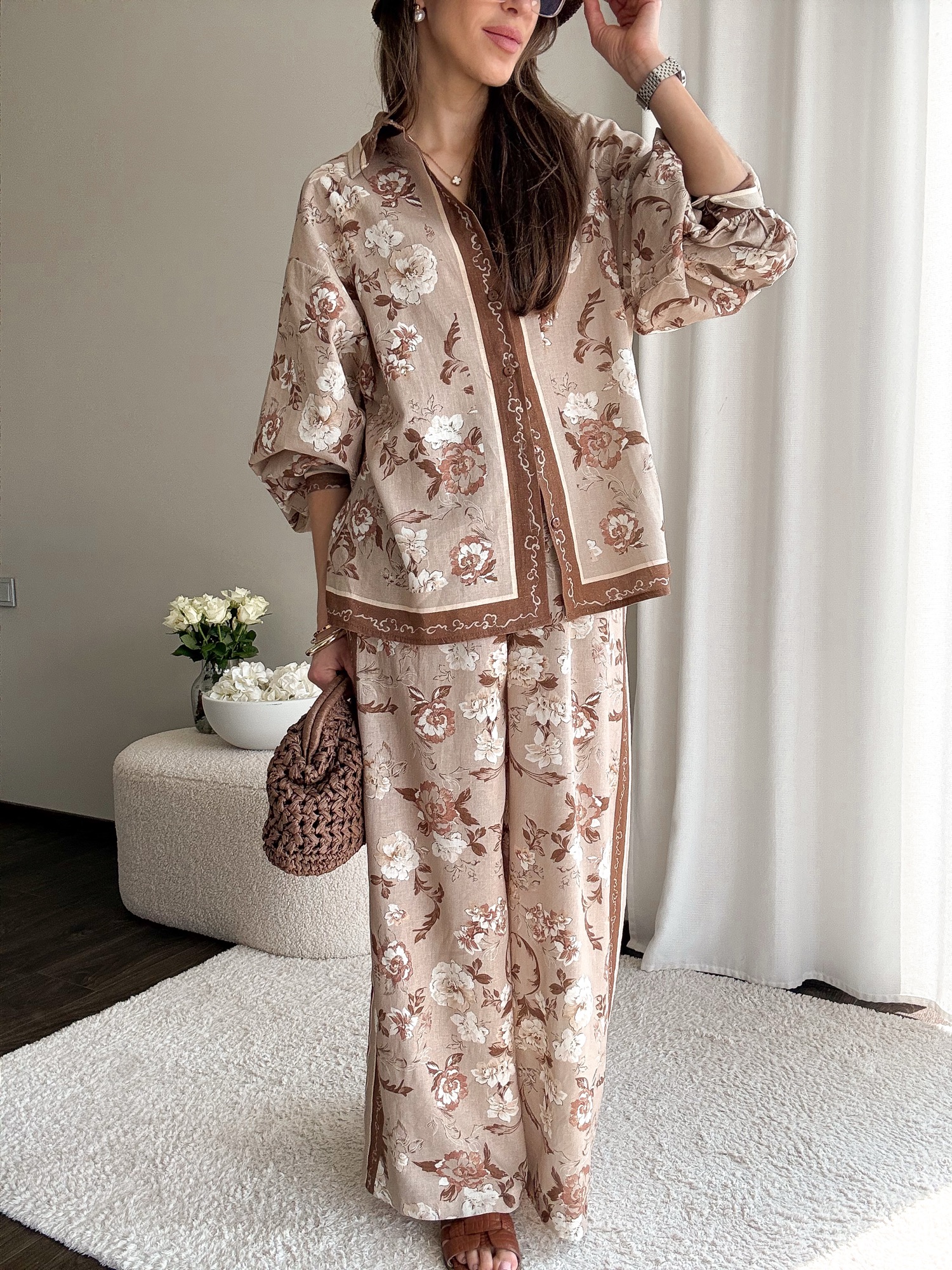 Komplet Blush – brąz – len+wiskoza
