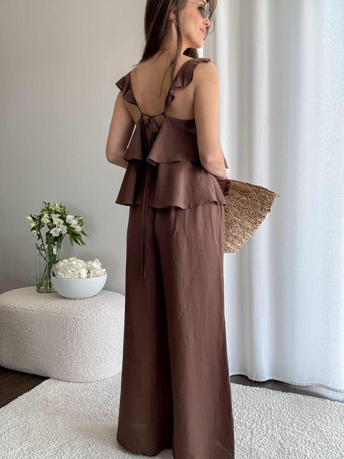 Bluzka na ramiączkach. Ozdobne falbanki. U góry przewiązywana.