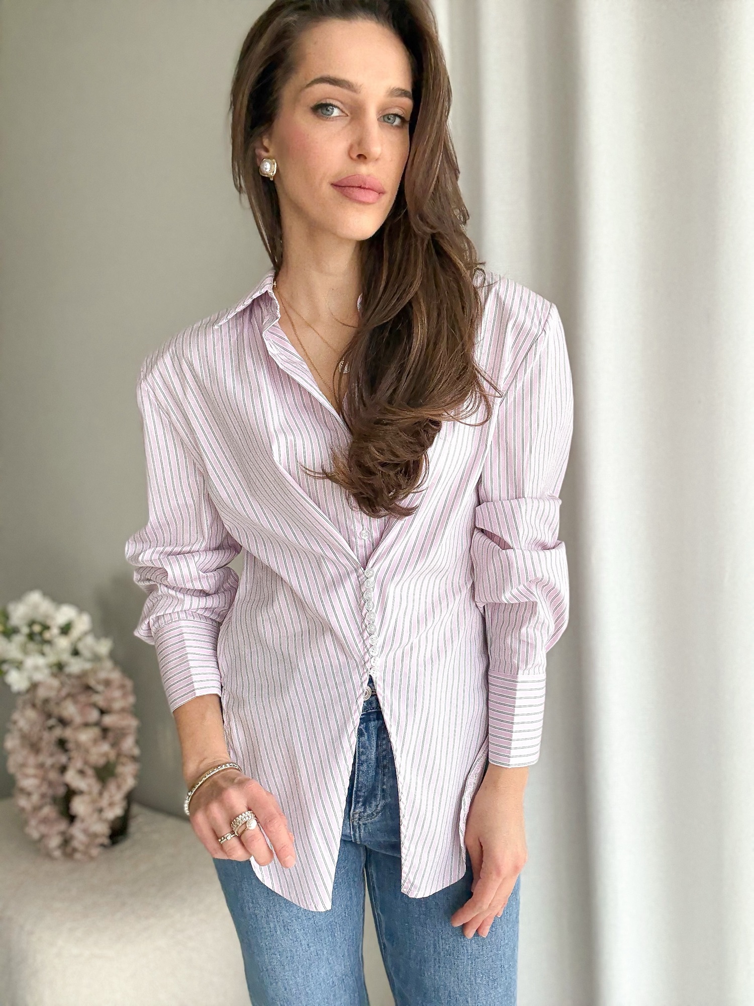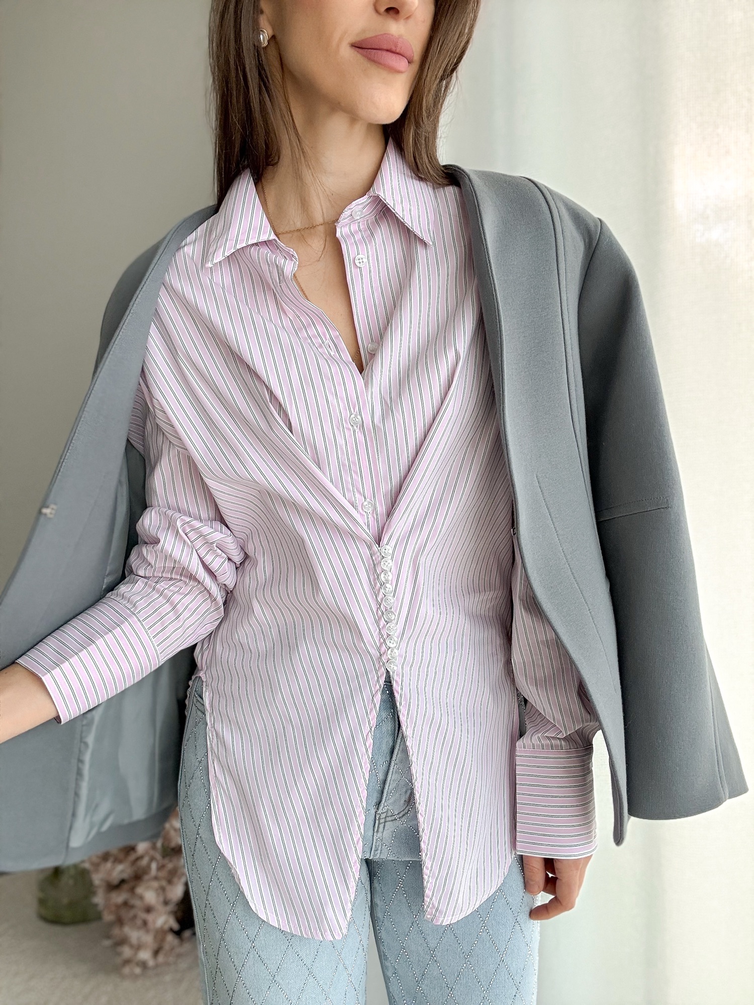 Koszula w delikatne paski o niespotykanym kroju ze wbudowanym ala gorsetem na wierzchu.