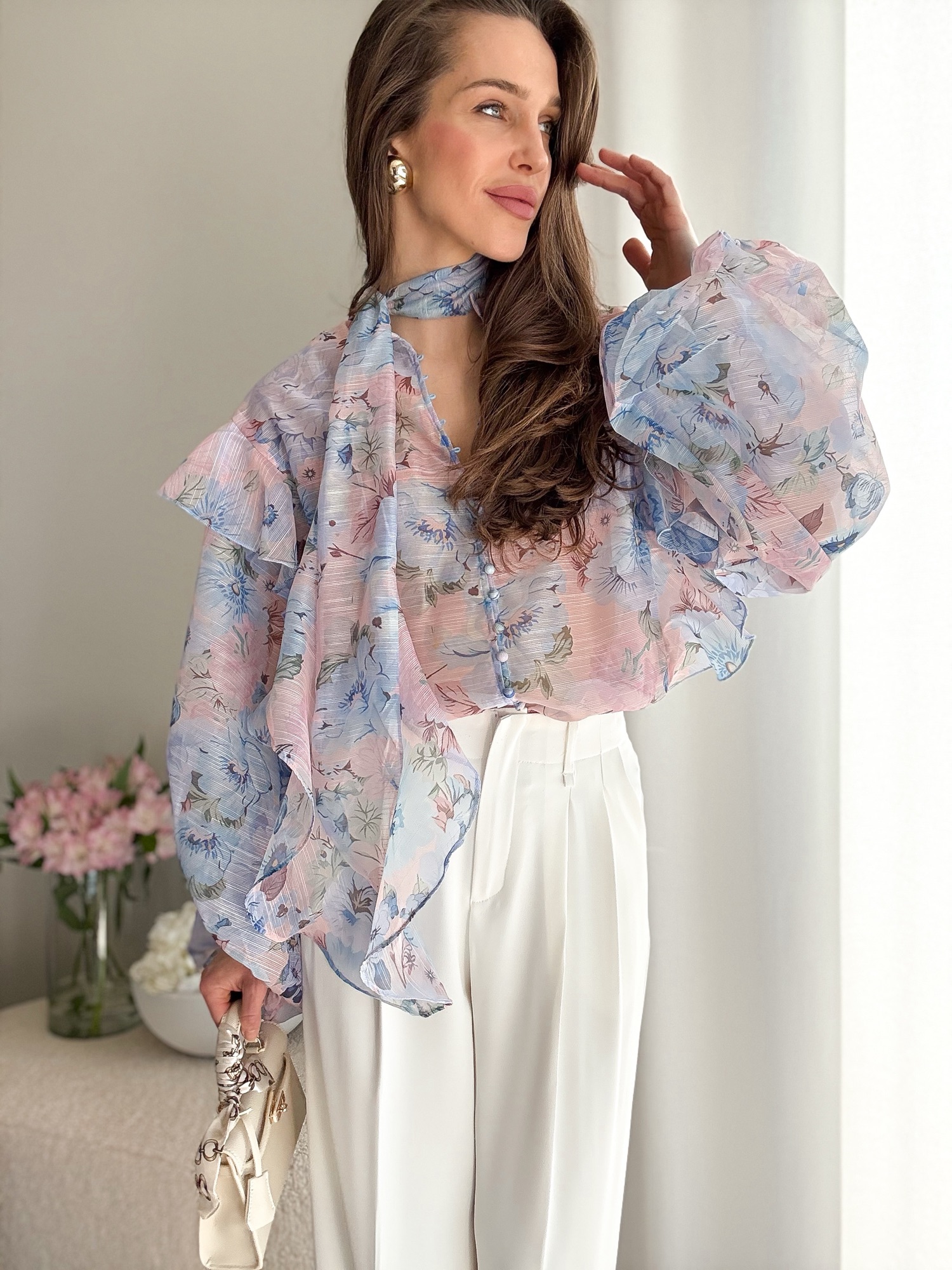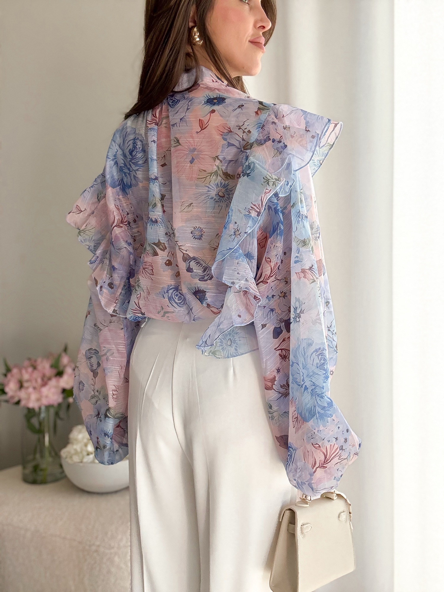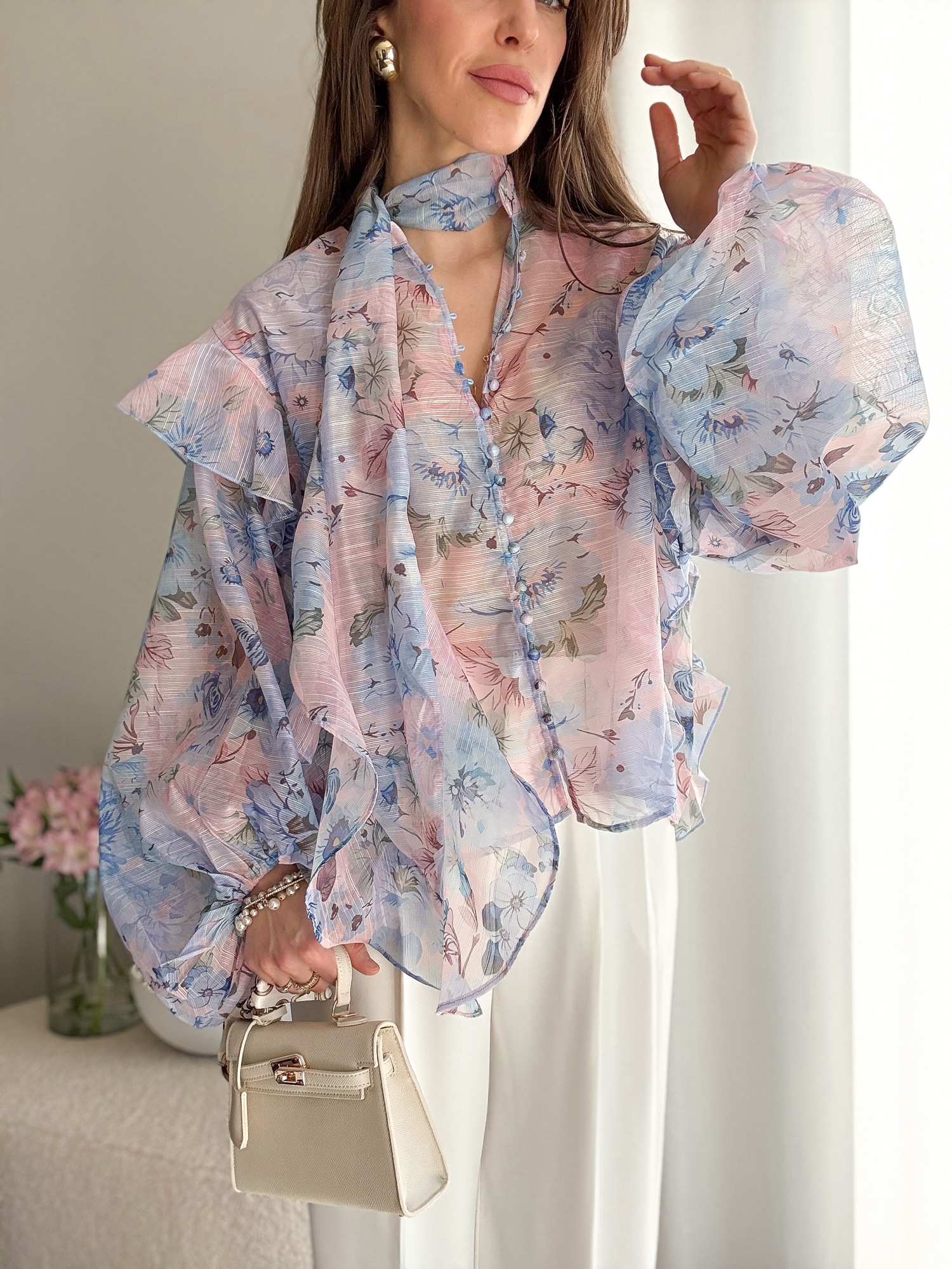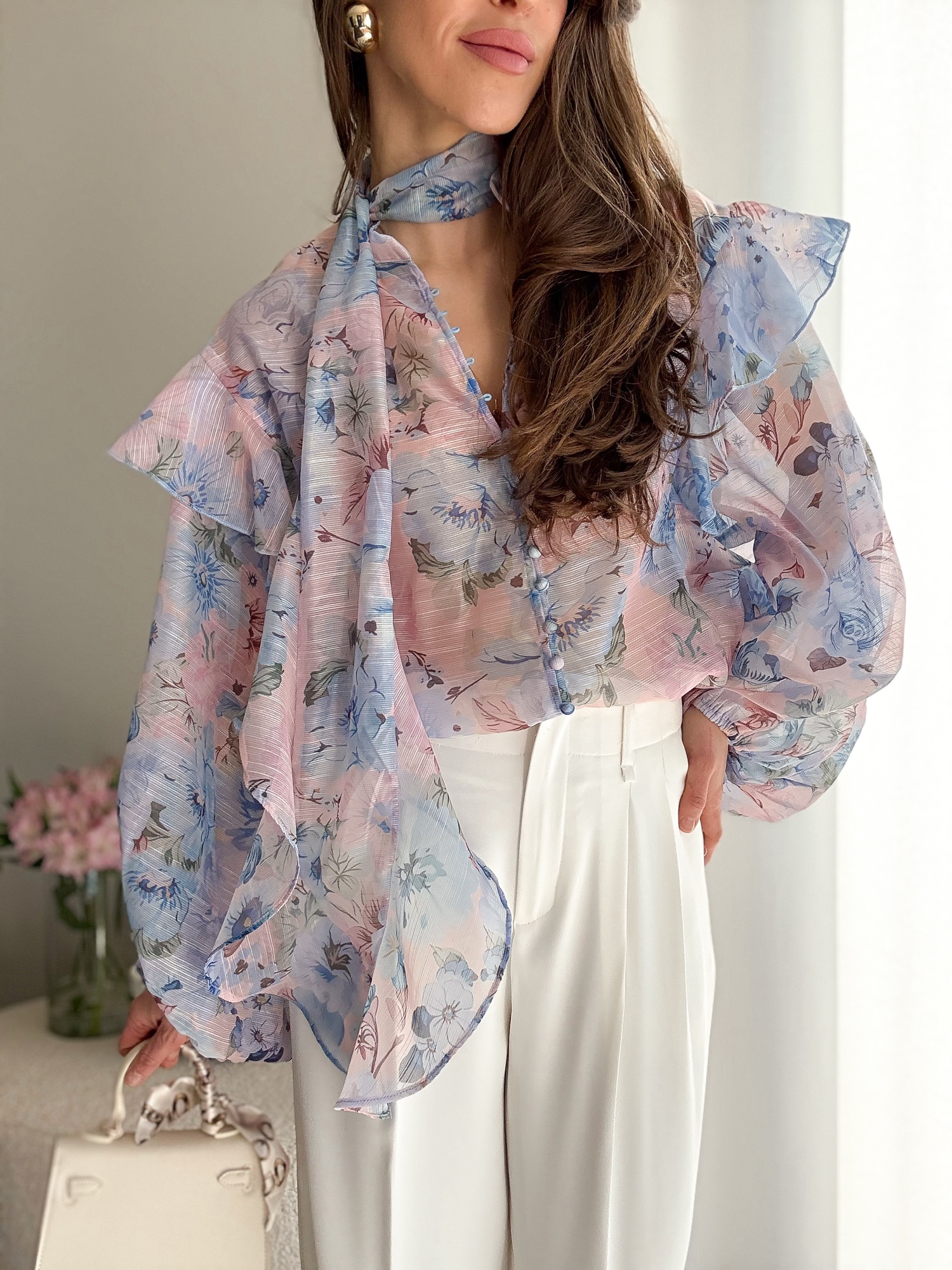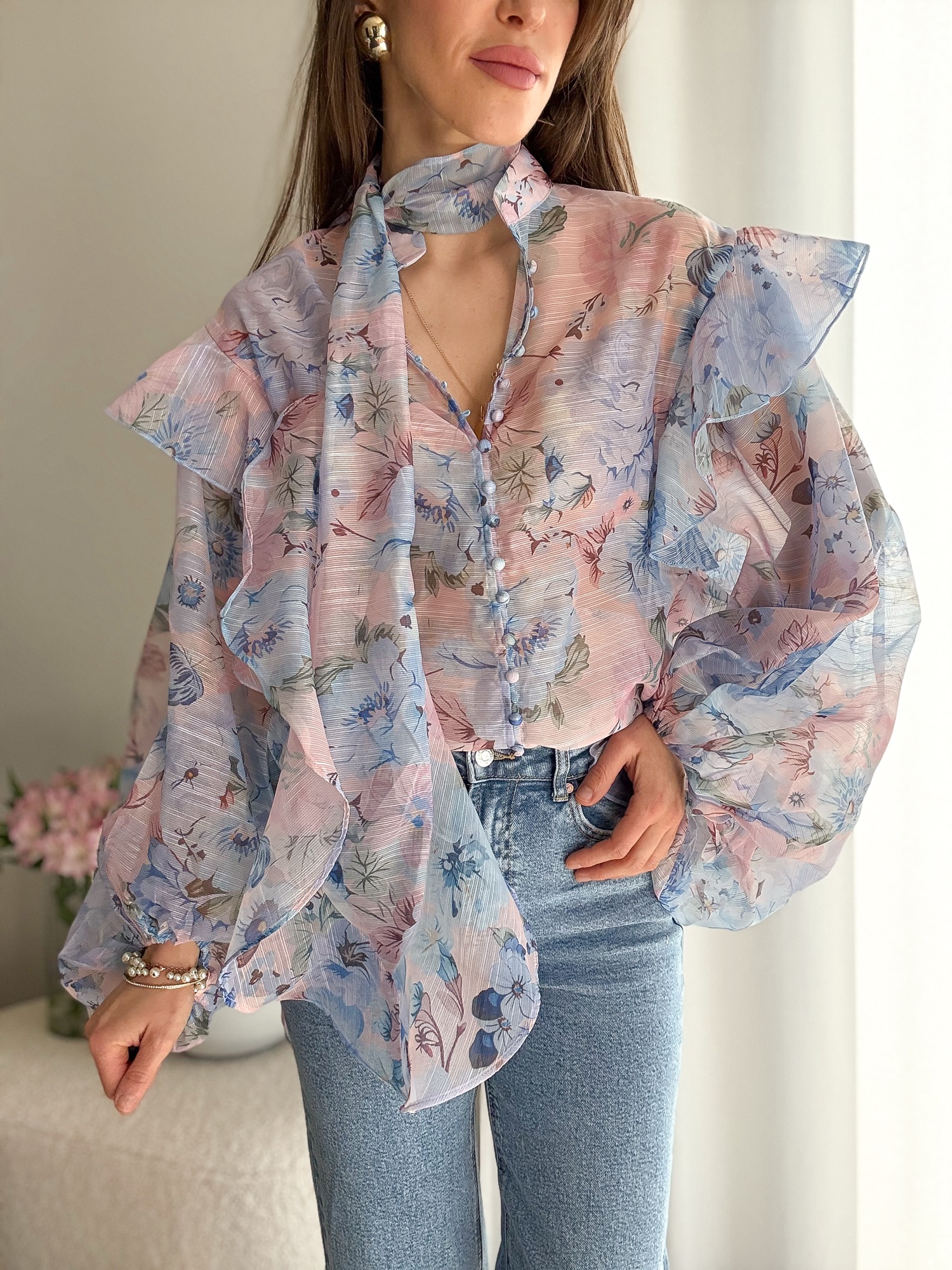 Koszula wykonana z półtransparentnego, szyfonowego materiału.