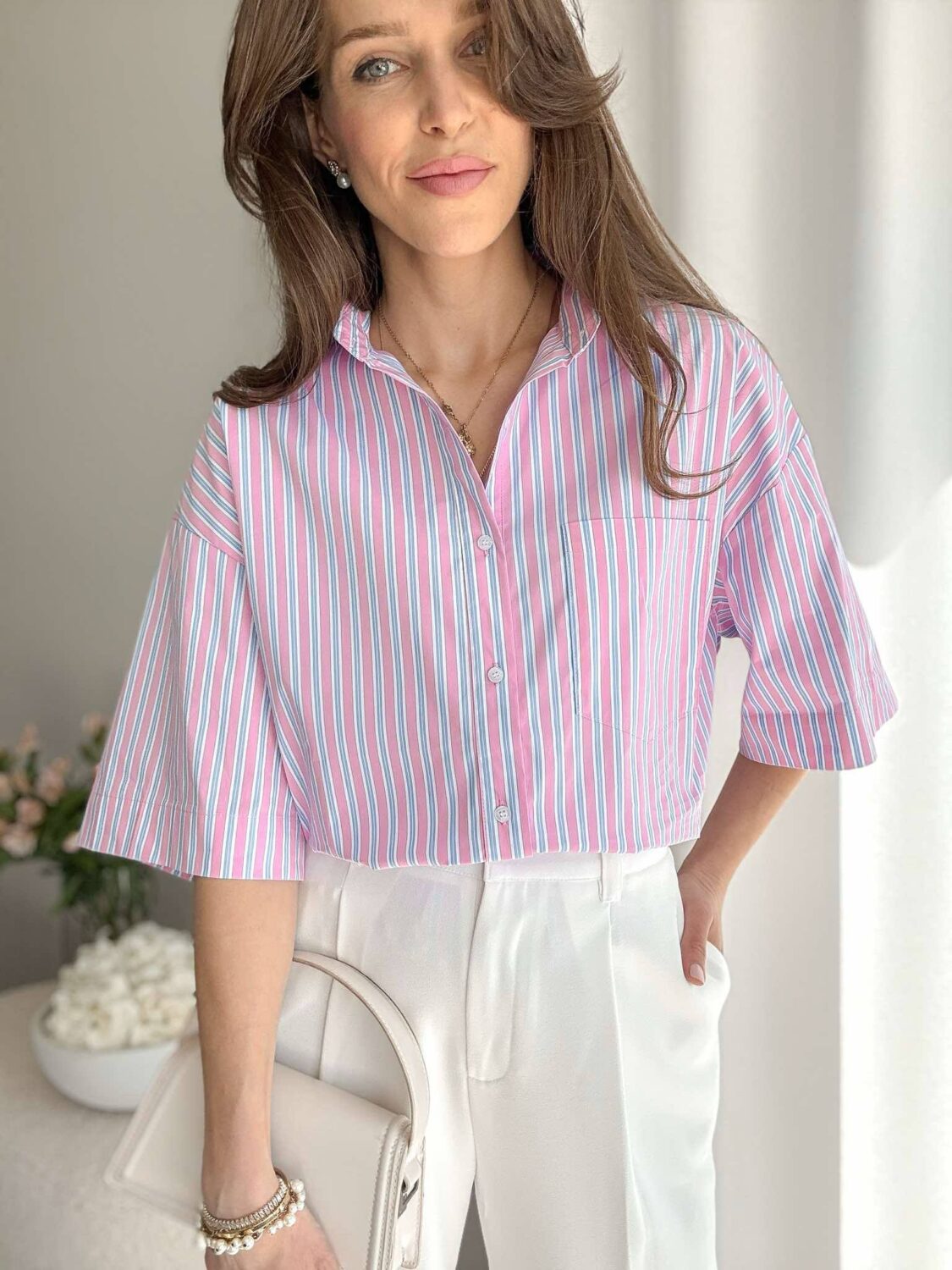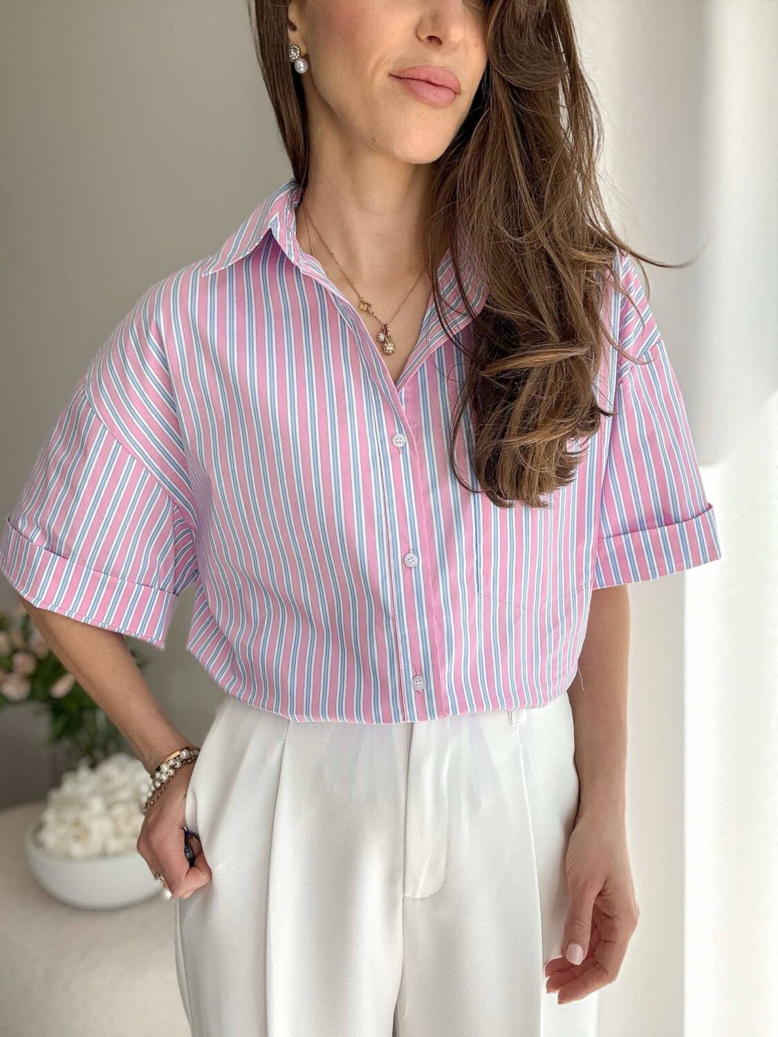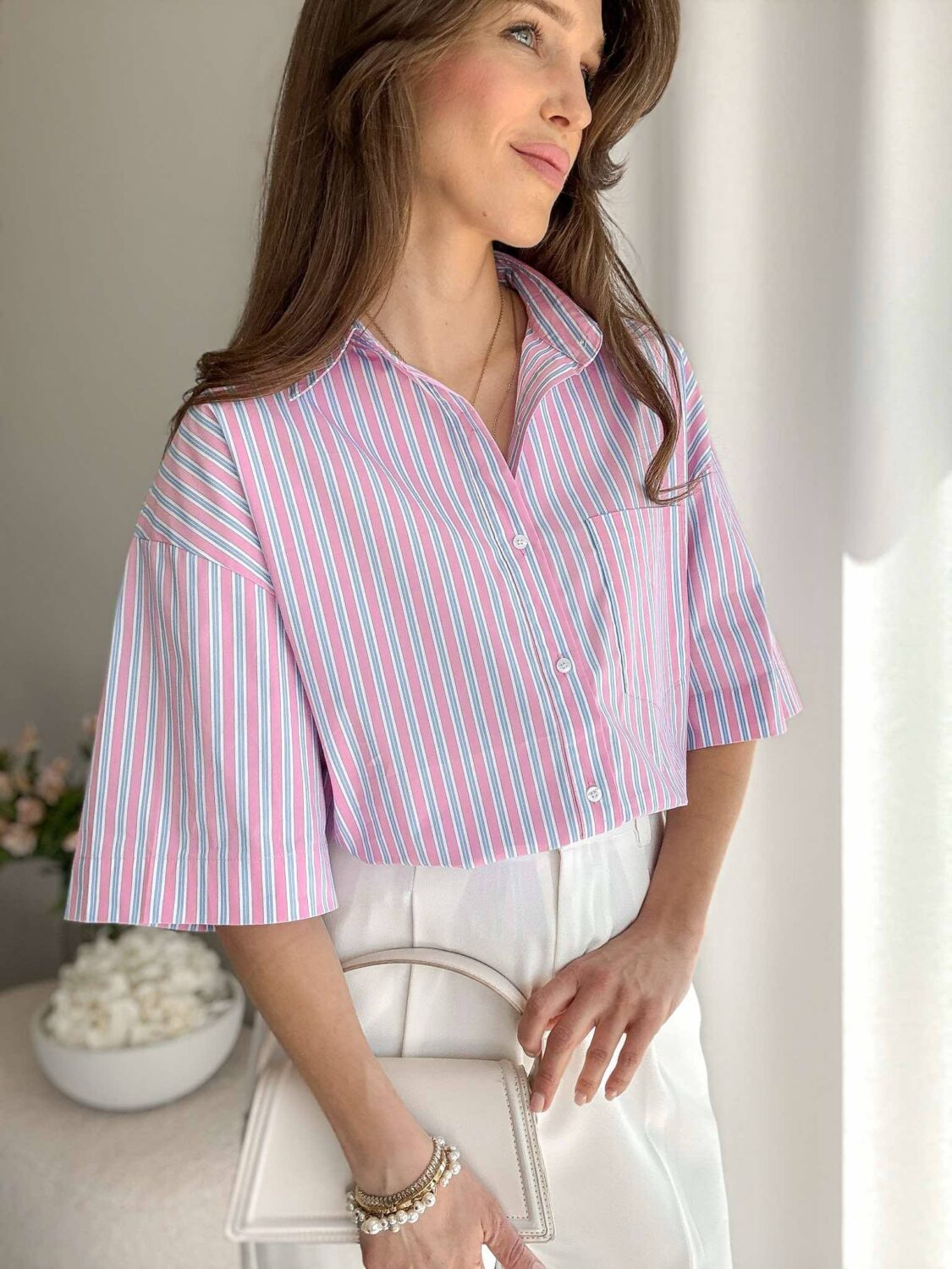 Koszula w paski o luźnym fasonie, zapinana na małe guziczki.