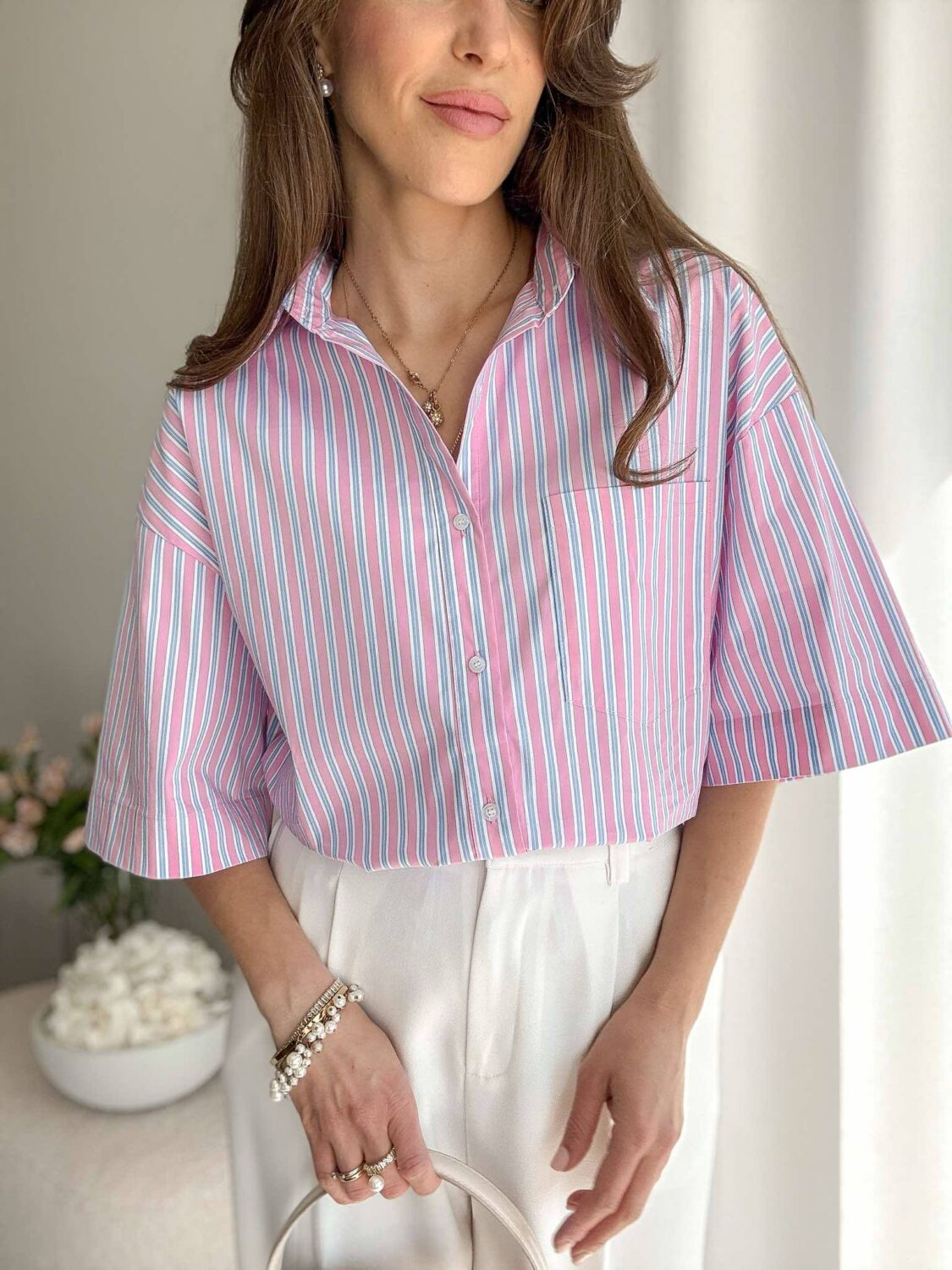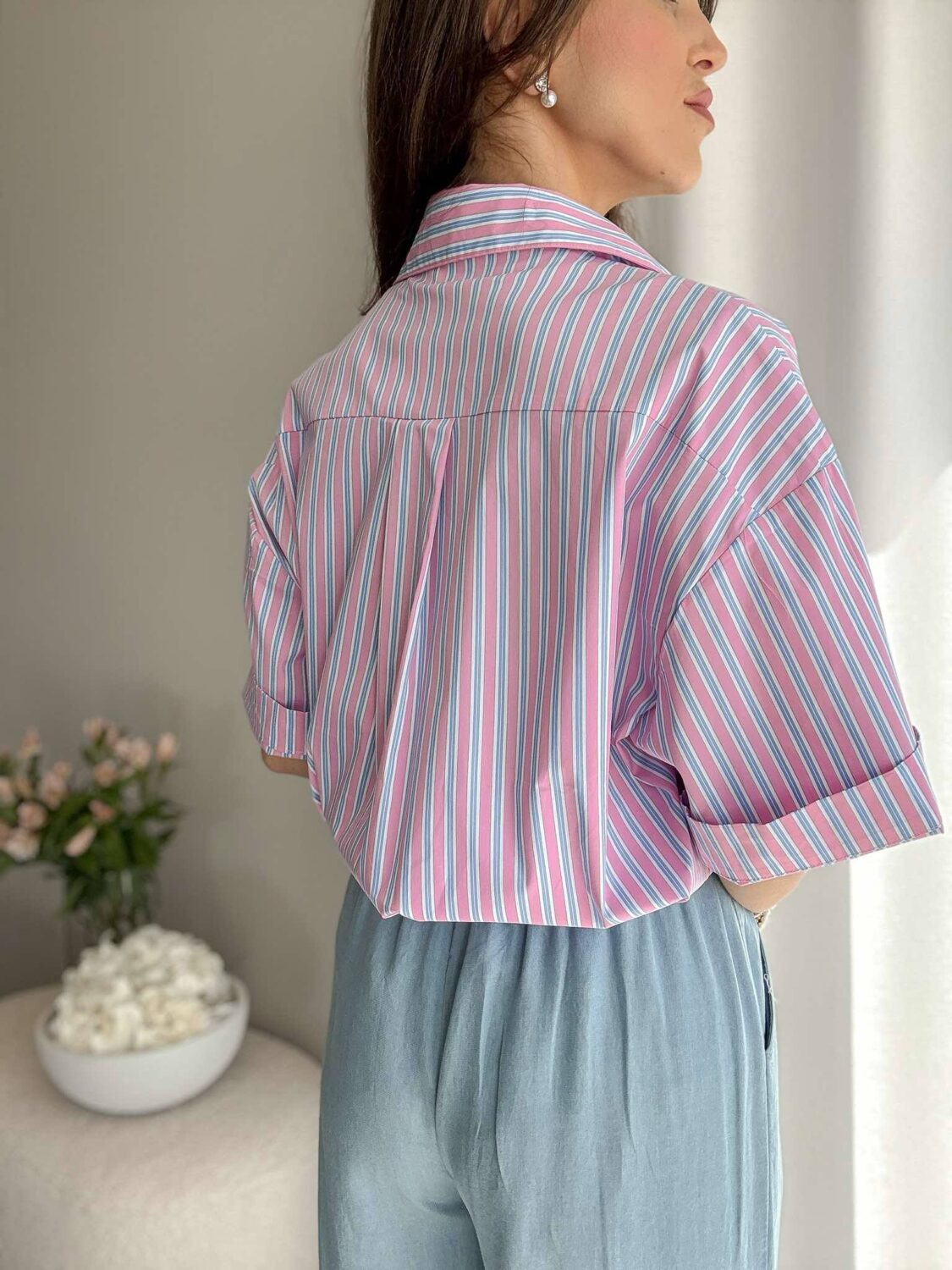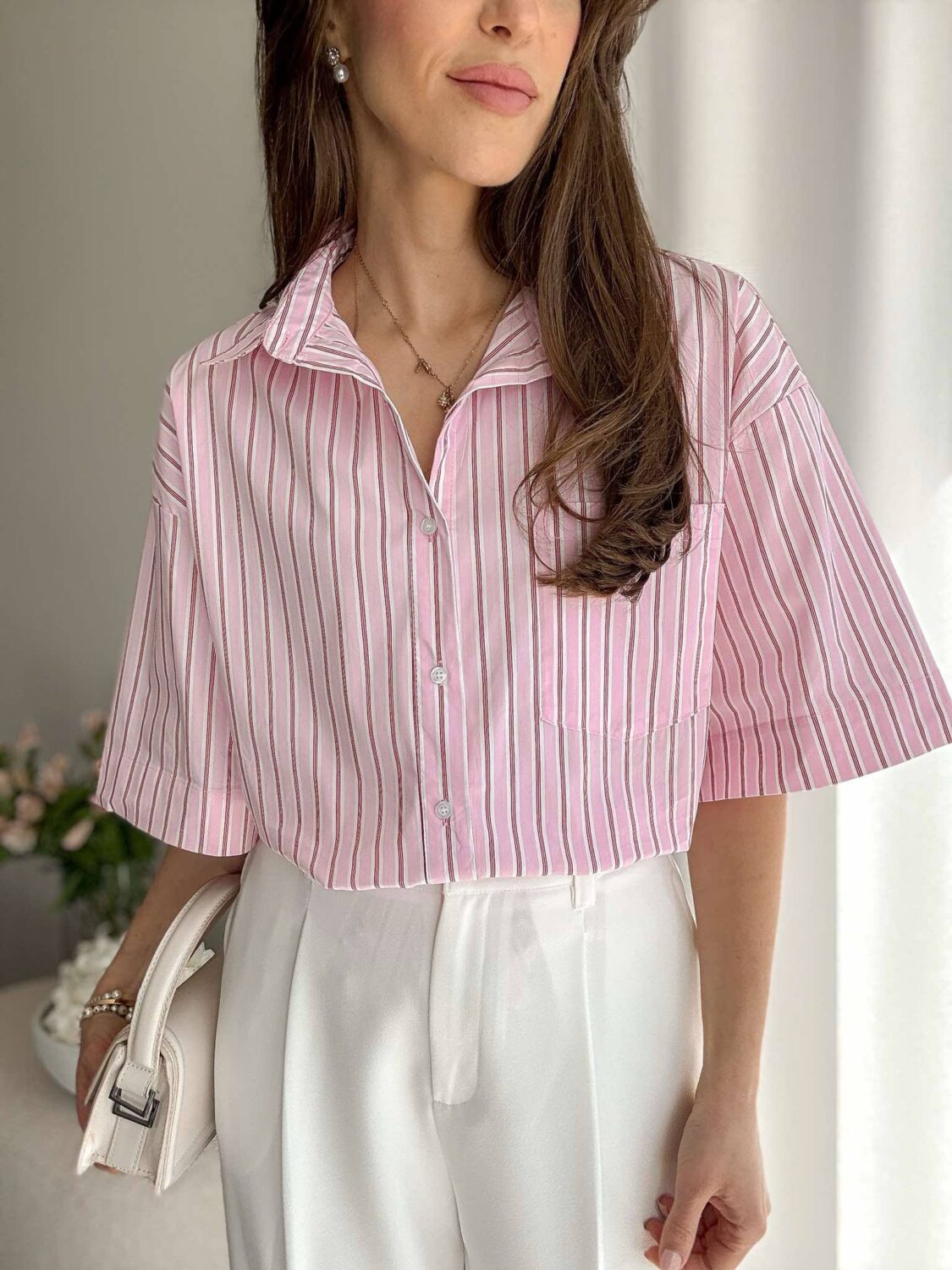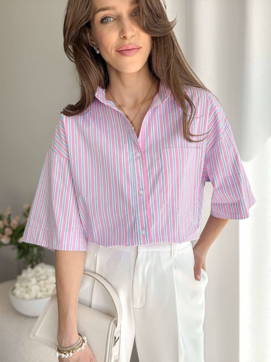 Koszula w paski o luźnym fasonie, zapinana na małe guziczki.
