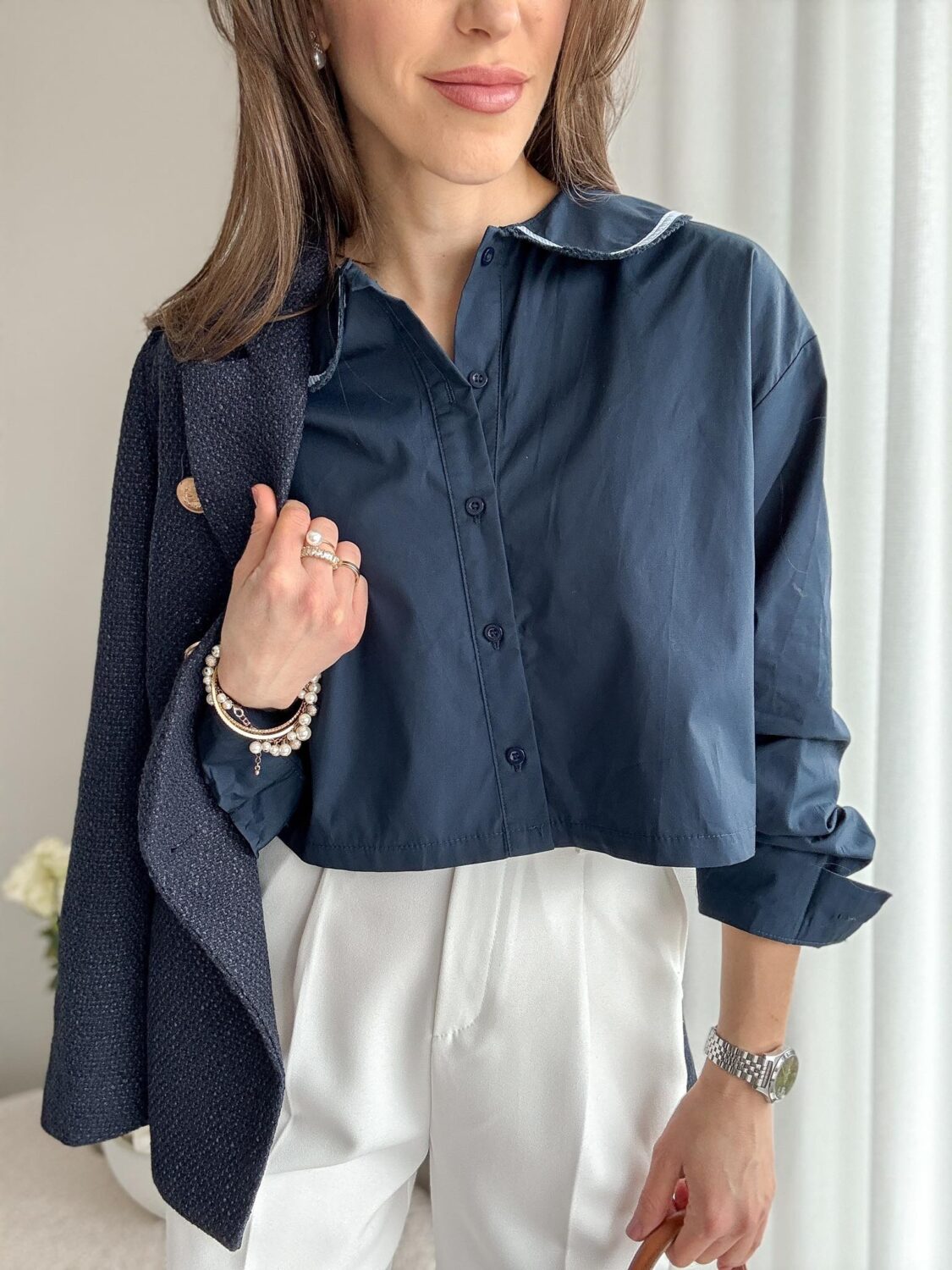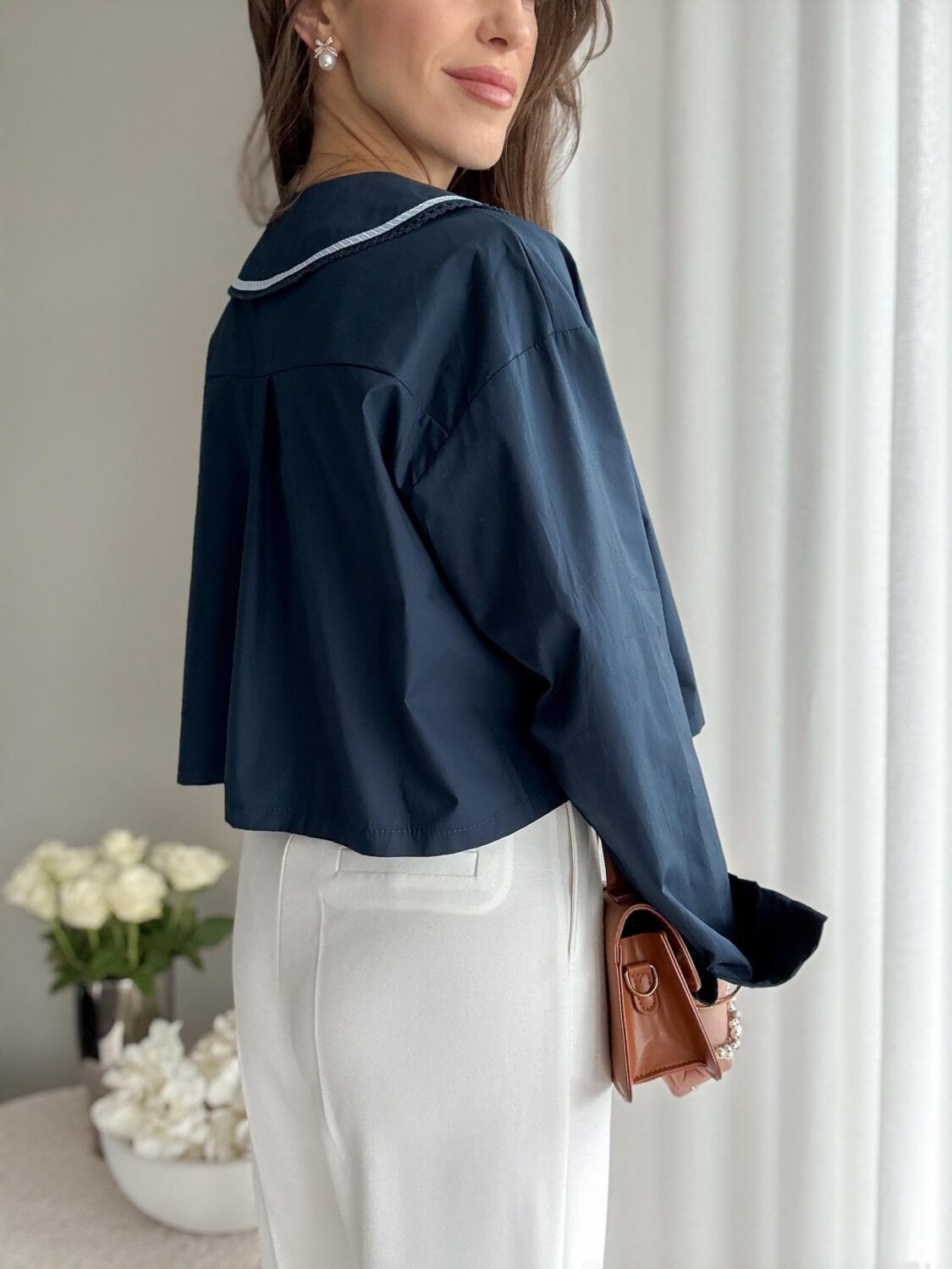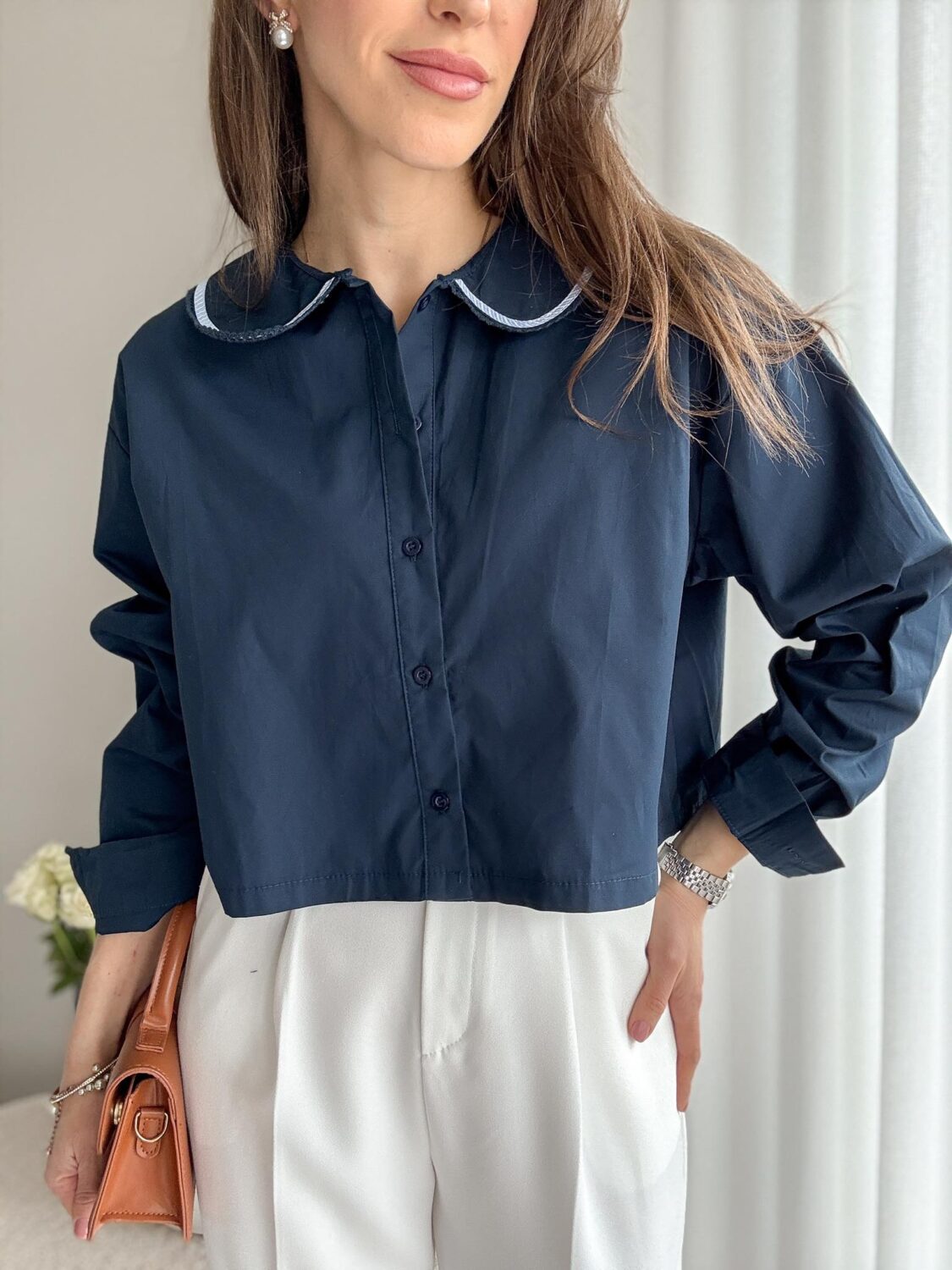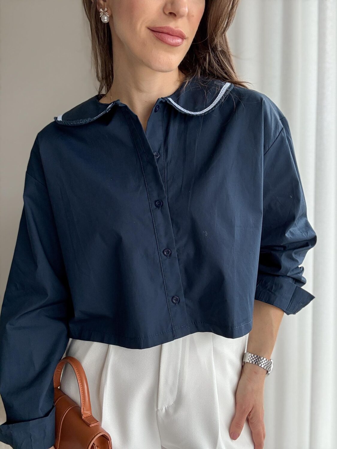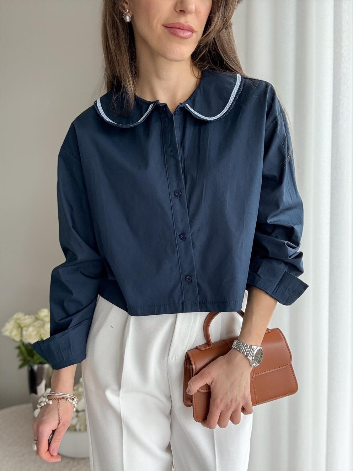 Kołnierzyk w stylu bebe z tasiemką w białym kolorze