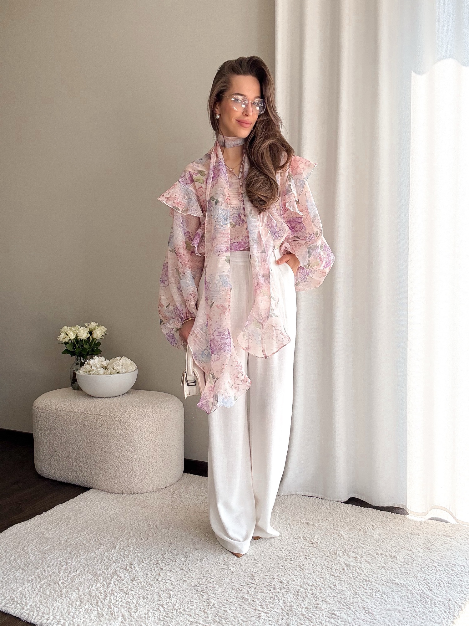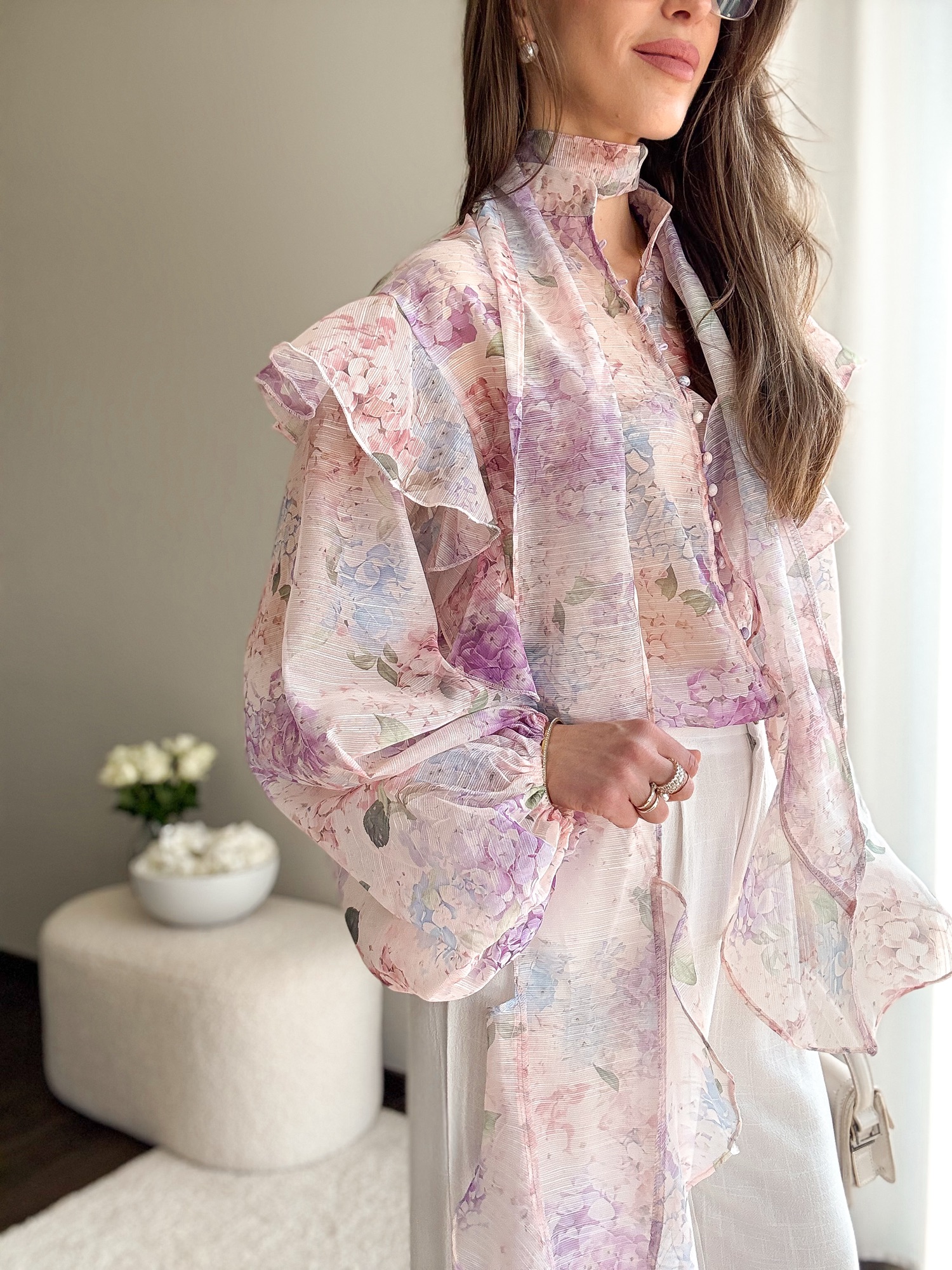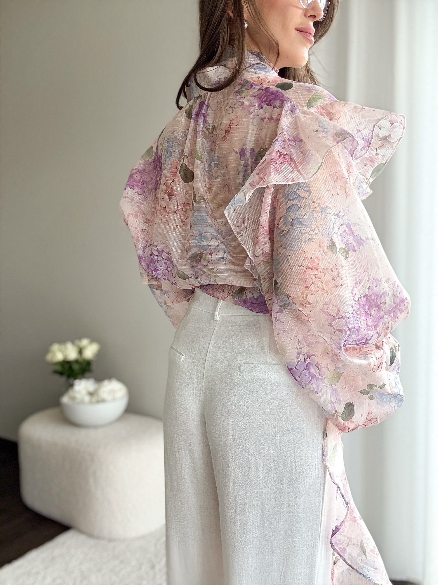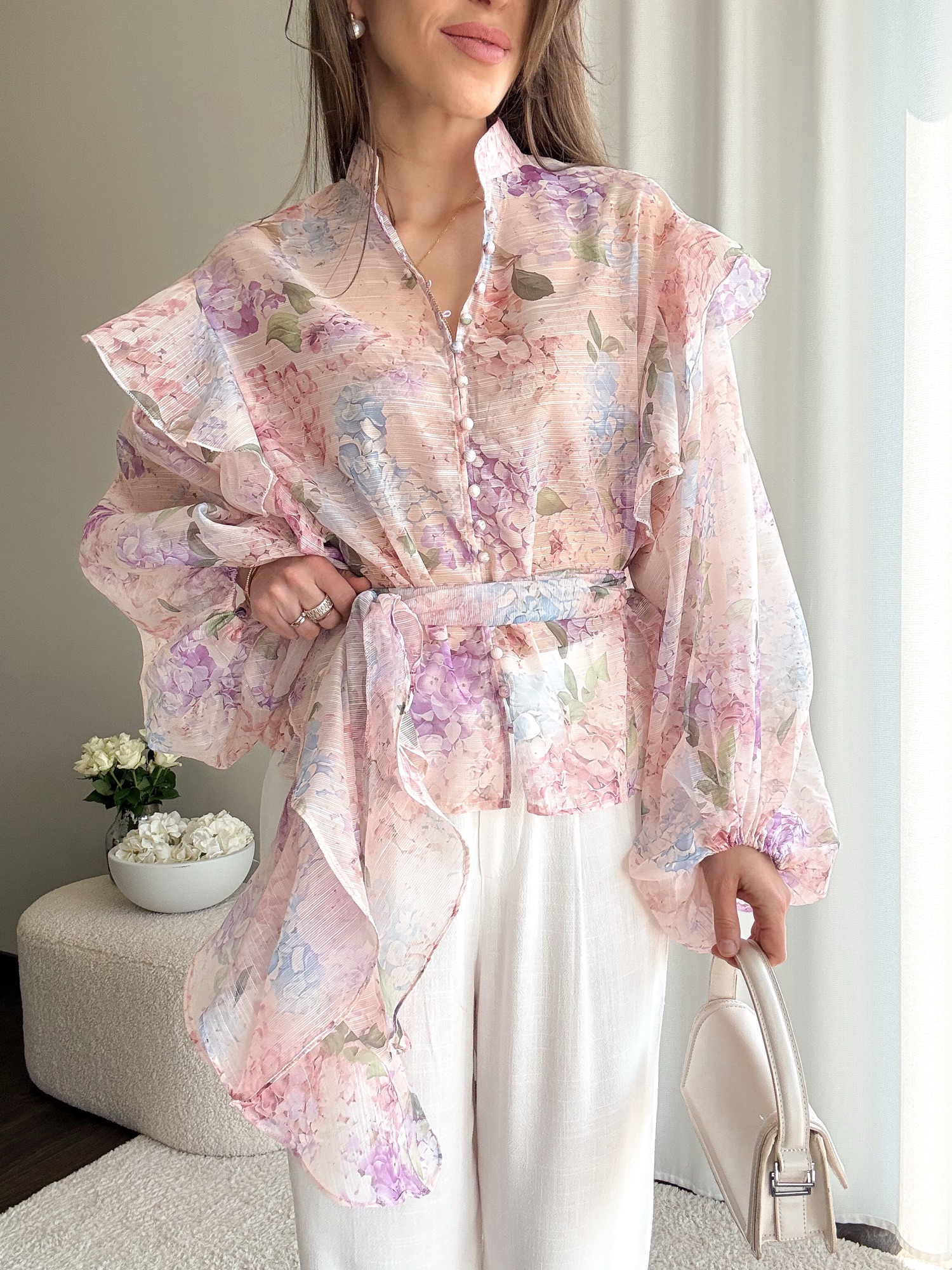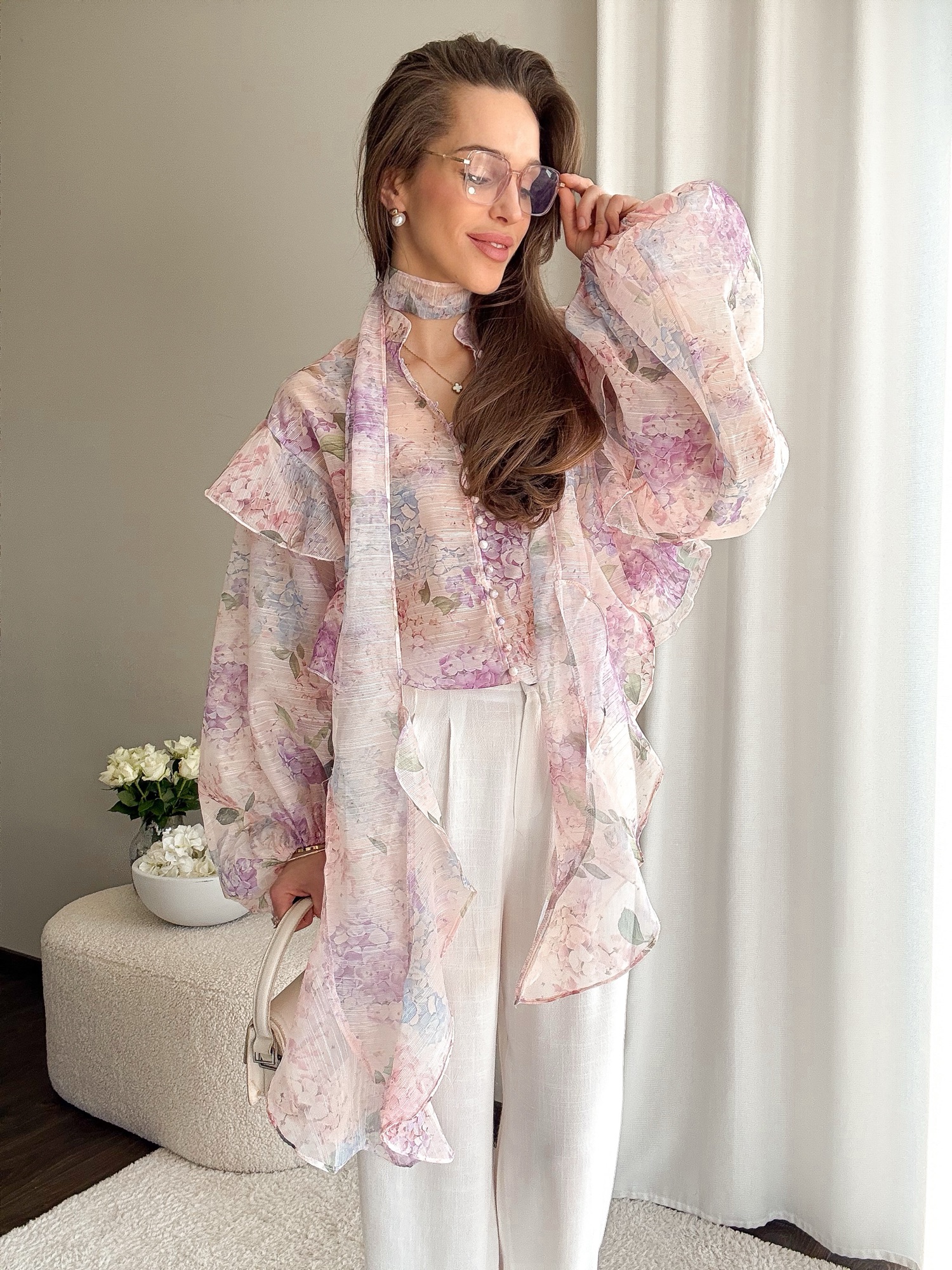 Koszula wykonana z półtransparentnego, szyfonowego materiału.