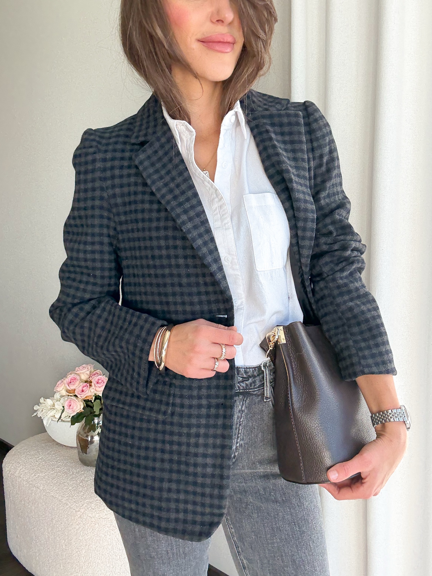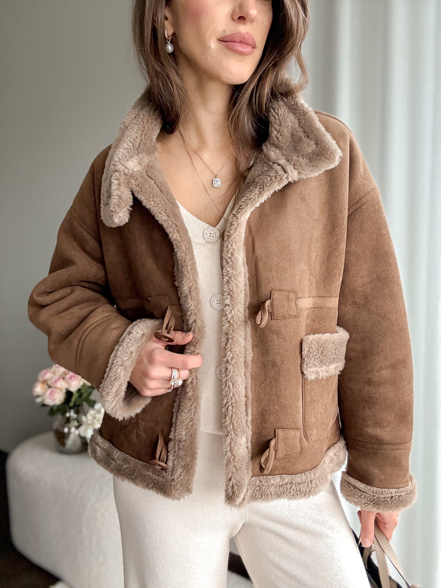 Kołnierzyk przy szyi, zapinana na całej długości na guziki.