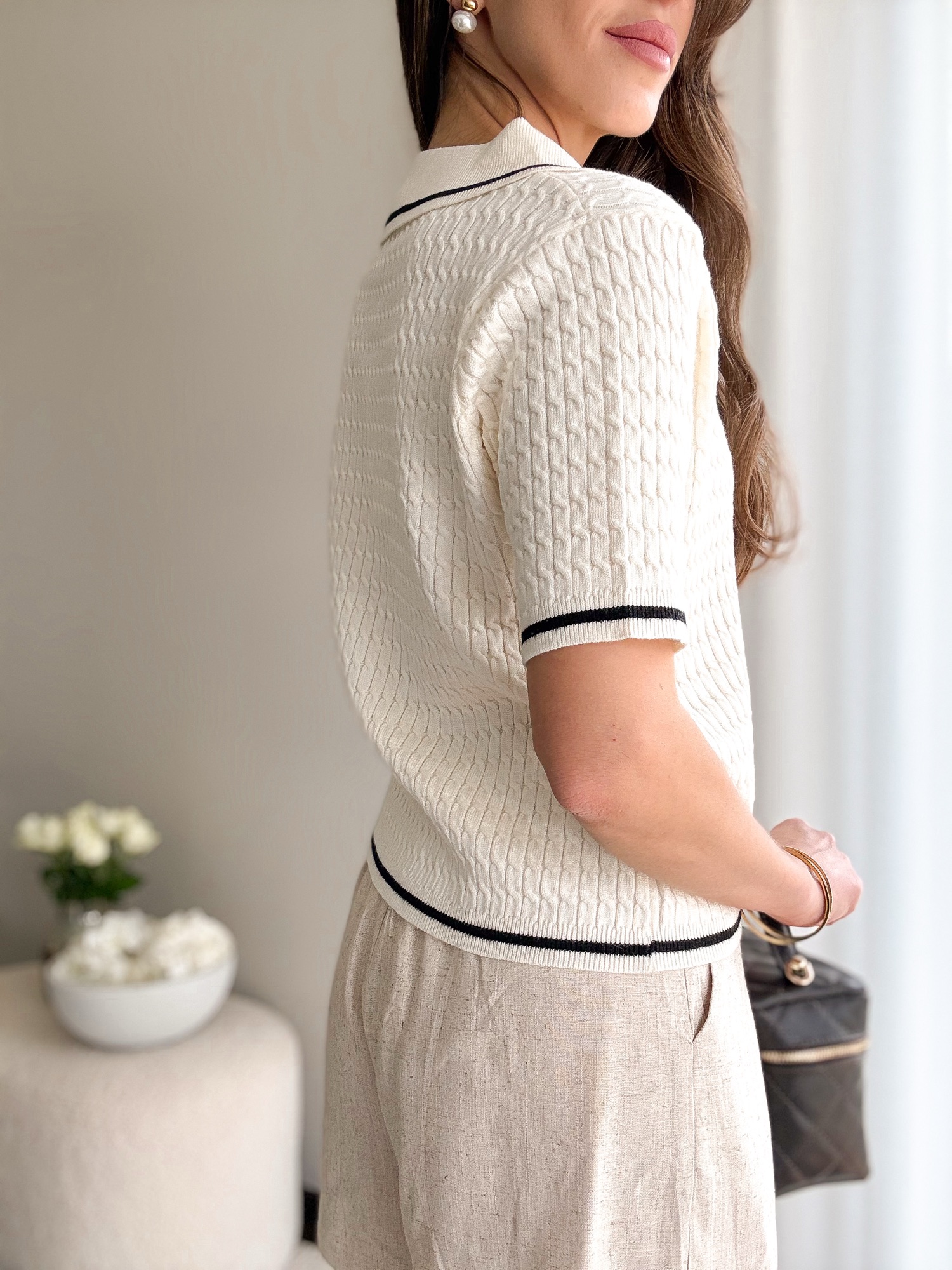 Klasyczna koszulka polo na krótki rękaw w warkoczowy splot.