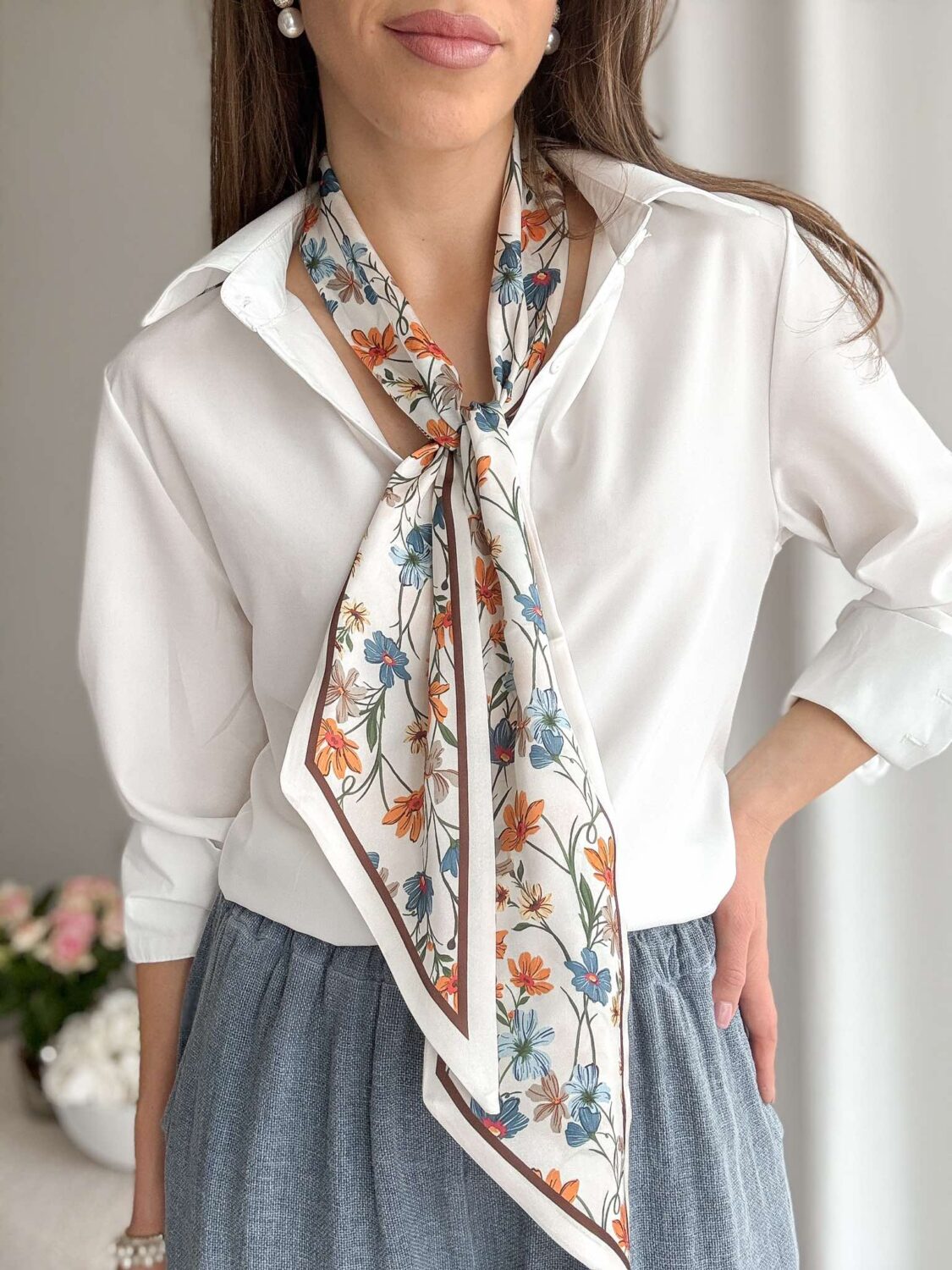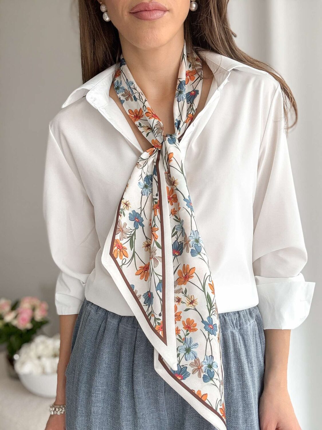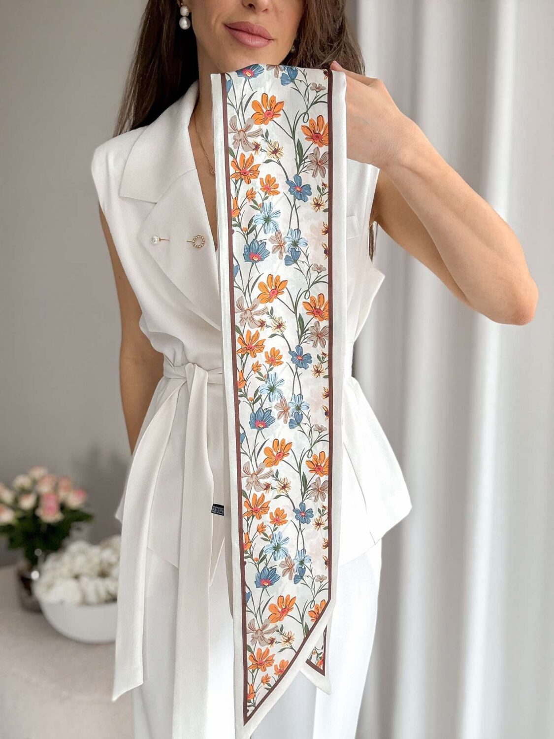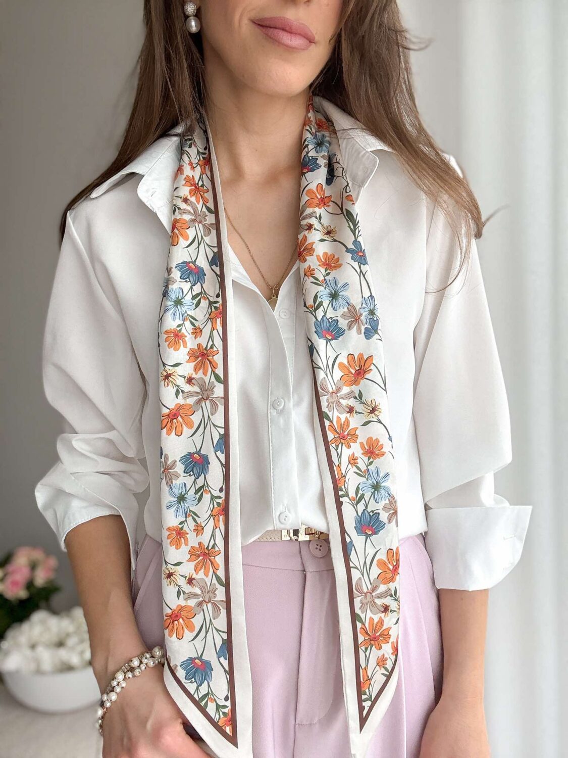 Dwustronna krawatka w print w kwiatuszki.