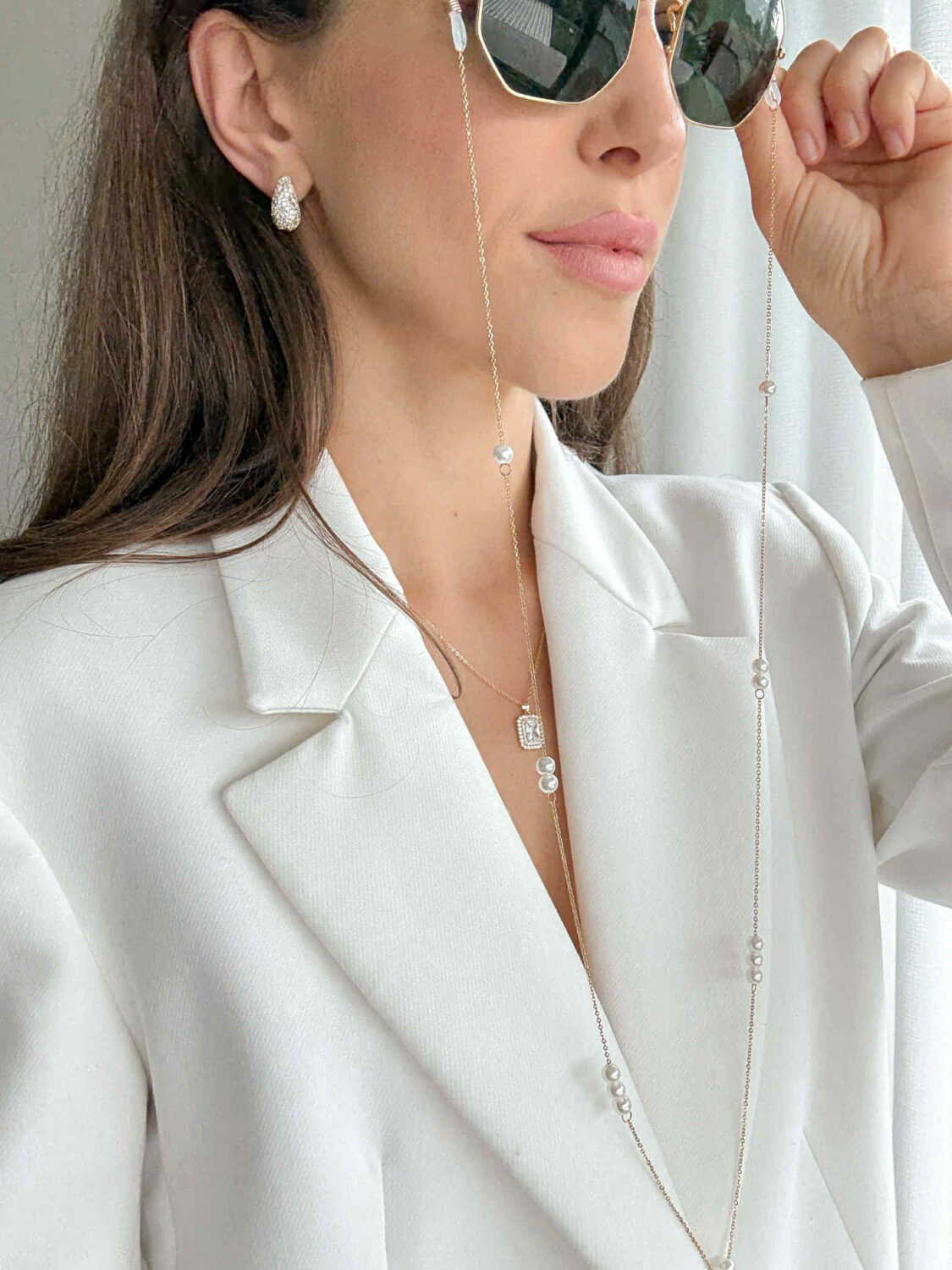 Łańcuszek do okularów z perełkami