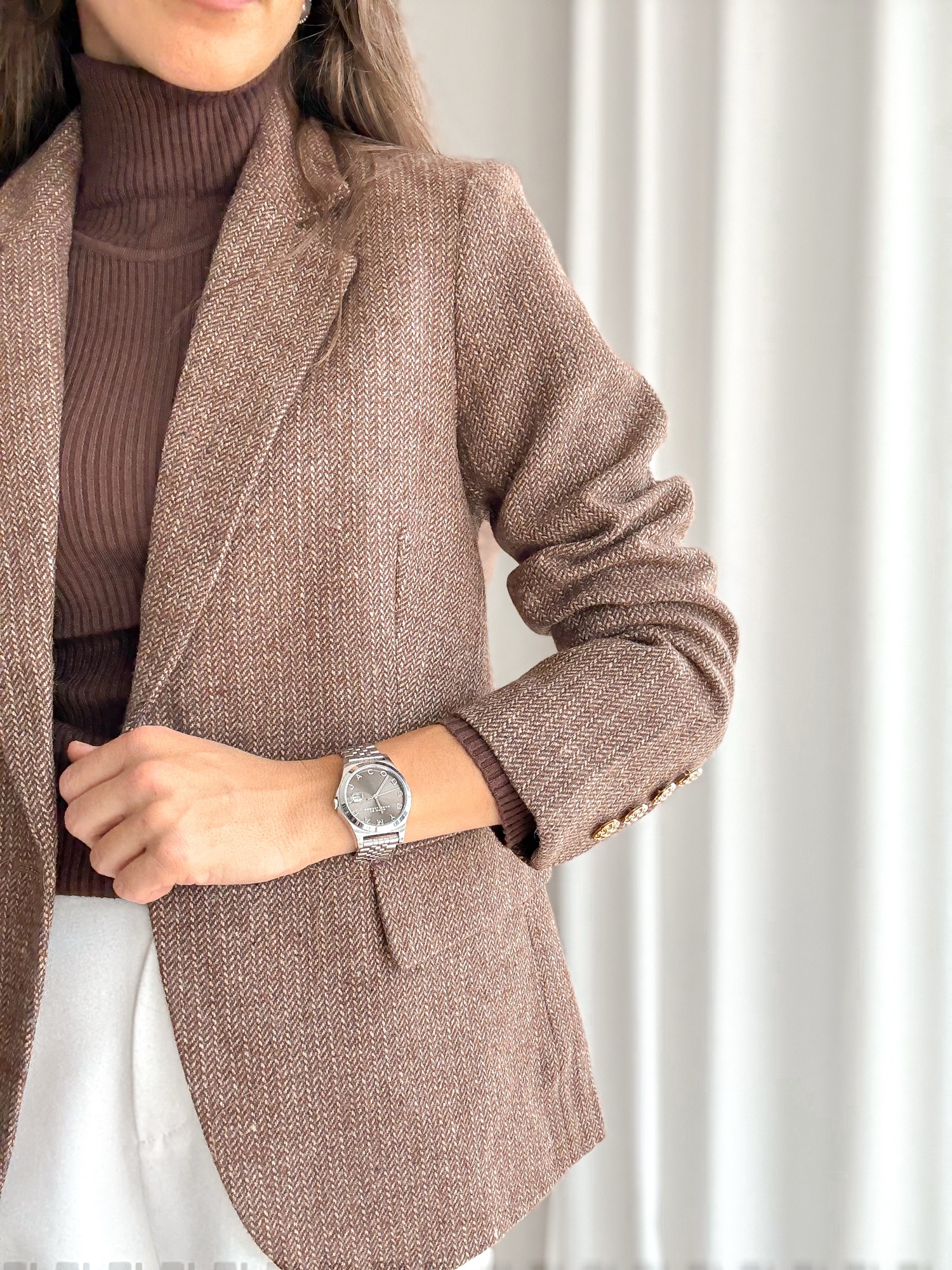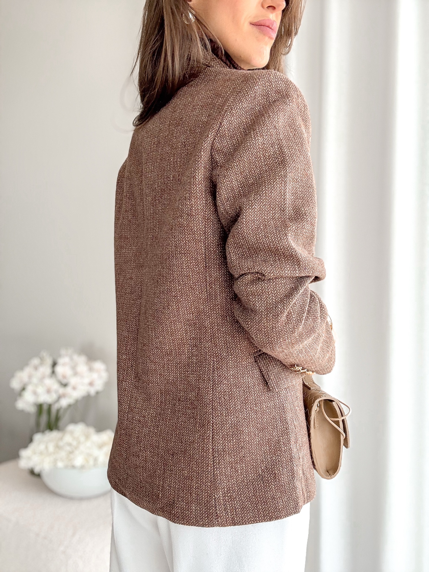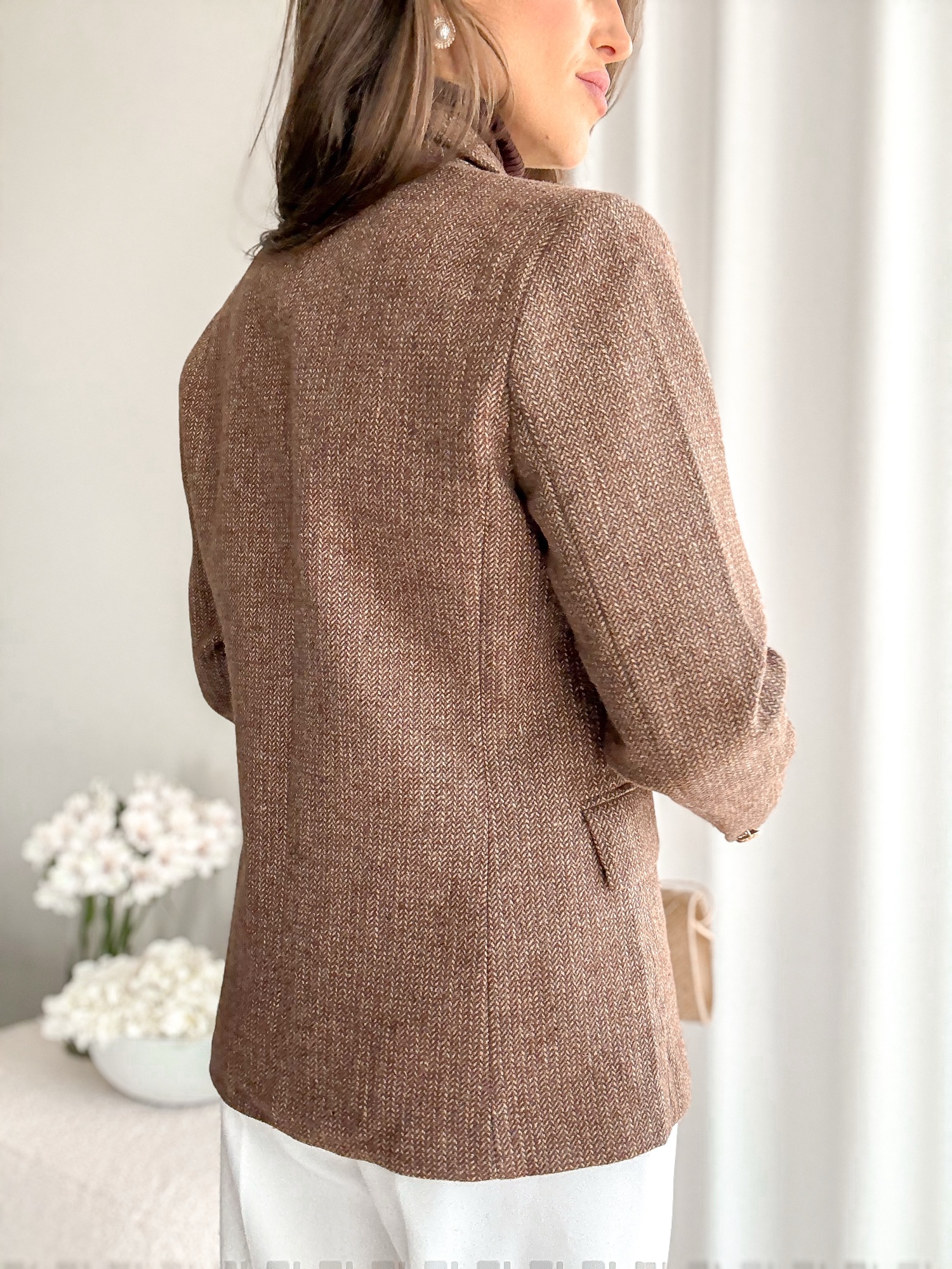 Marynarka w drobną jodełkę w składzie z wełną.