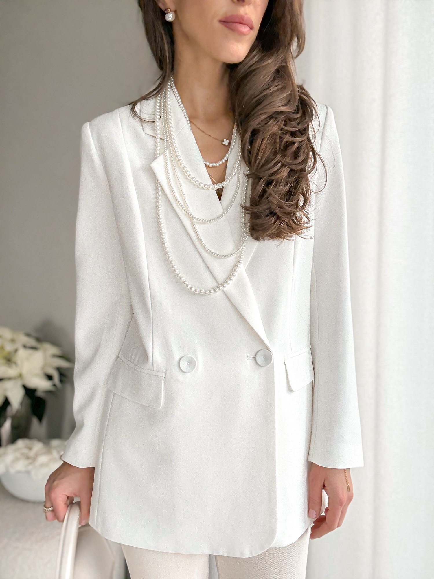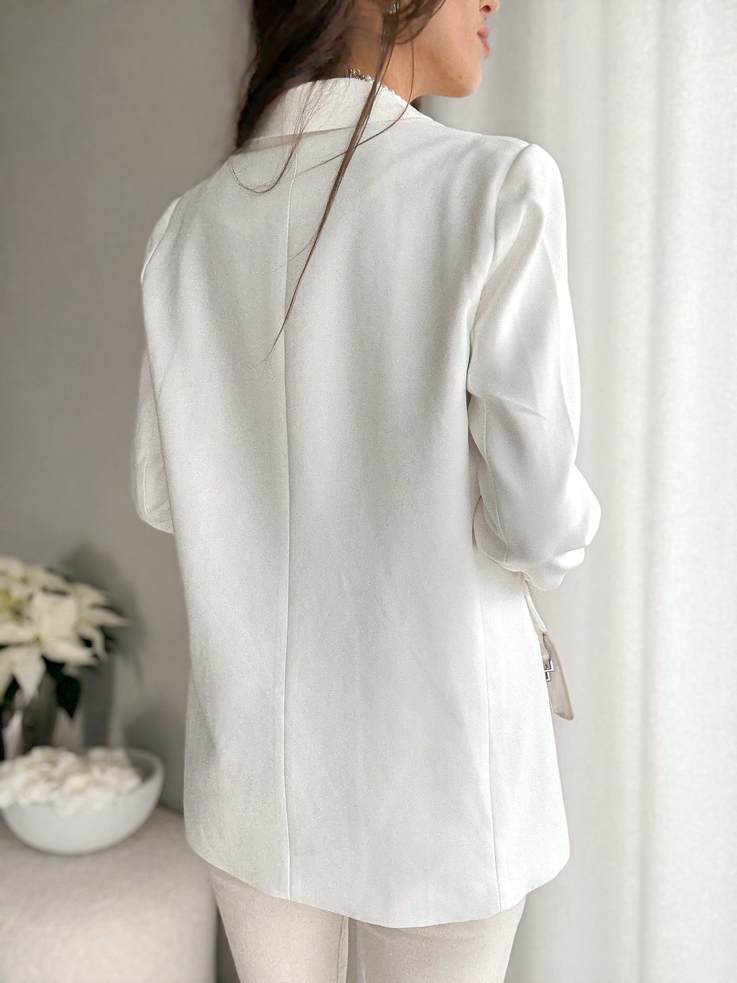 Marynarka o prostym dłuższym kroju.