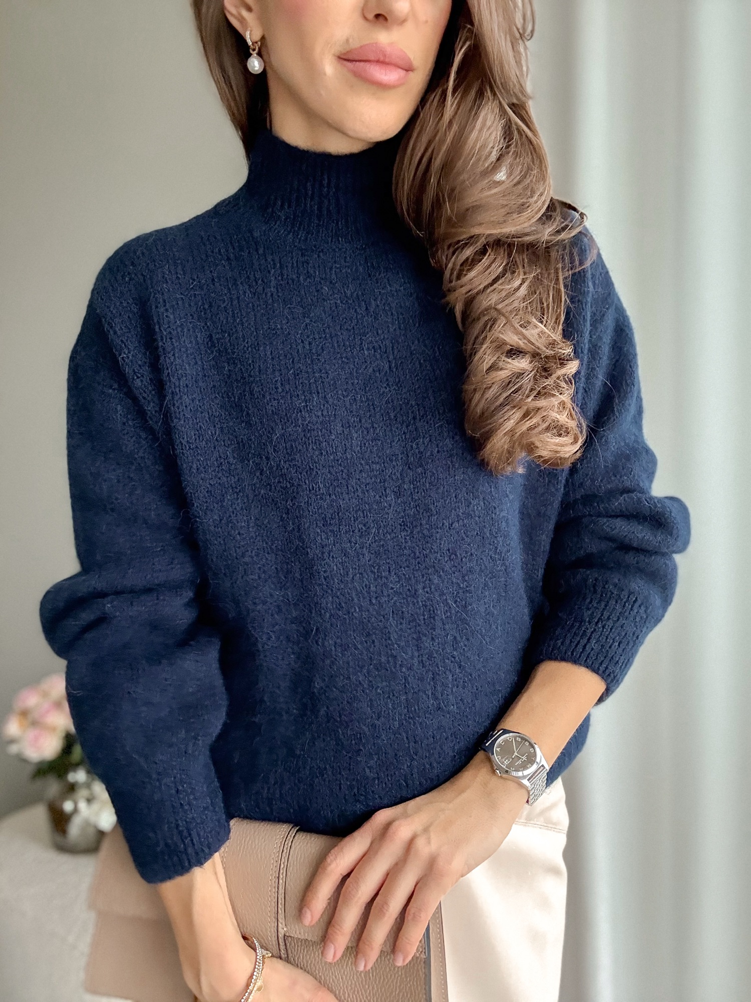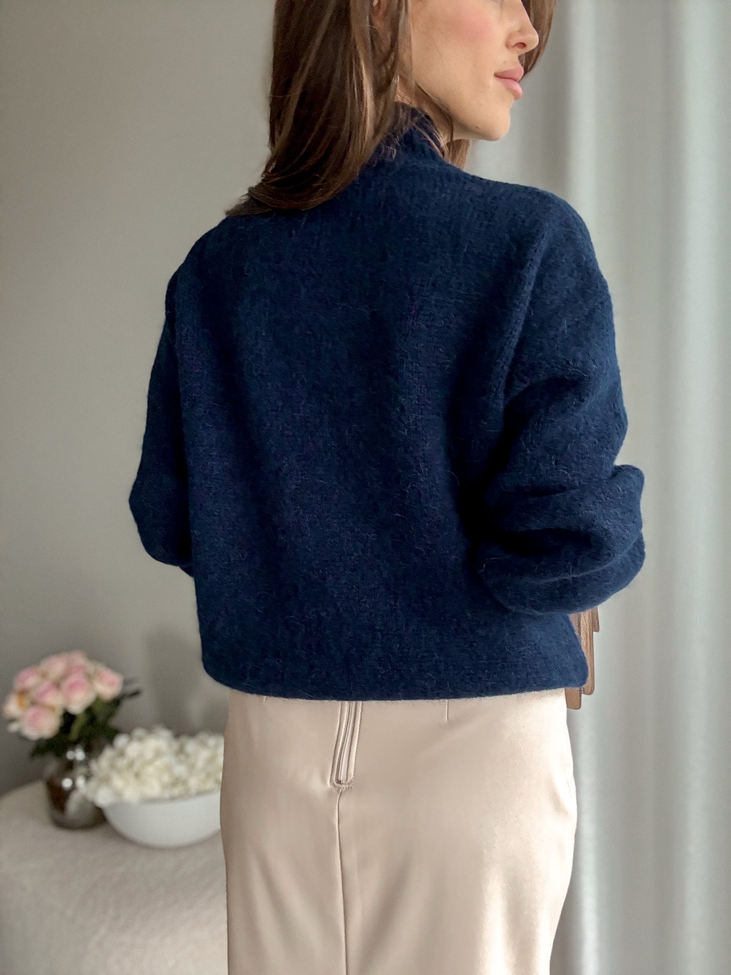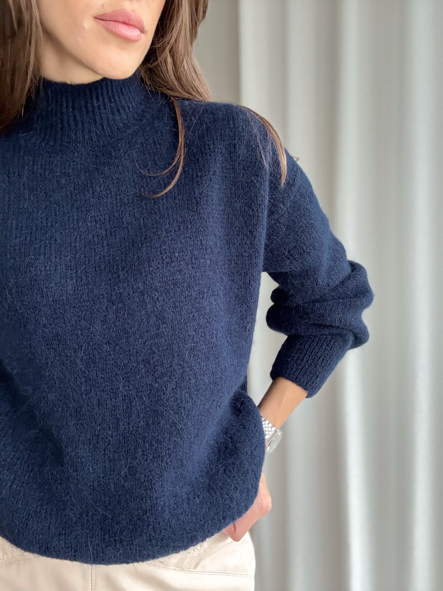 Półgolf alpaka + wełna granatowy