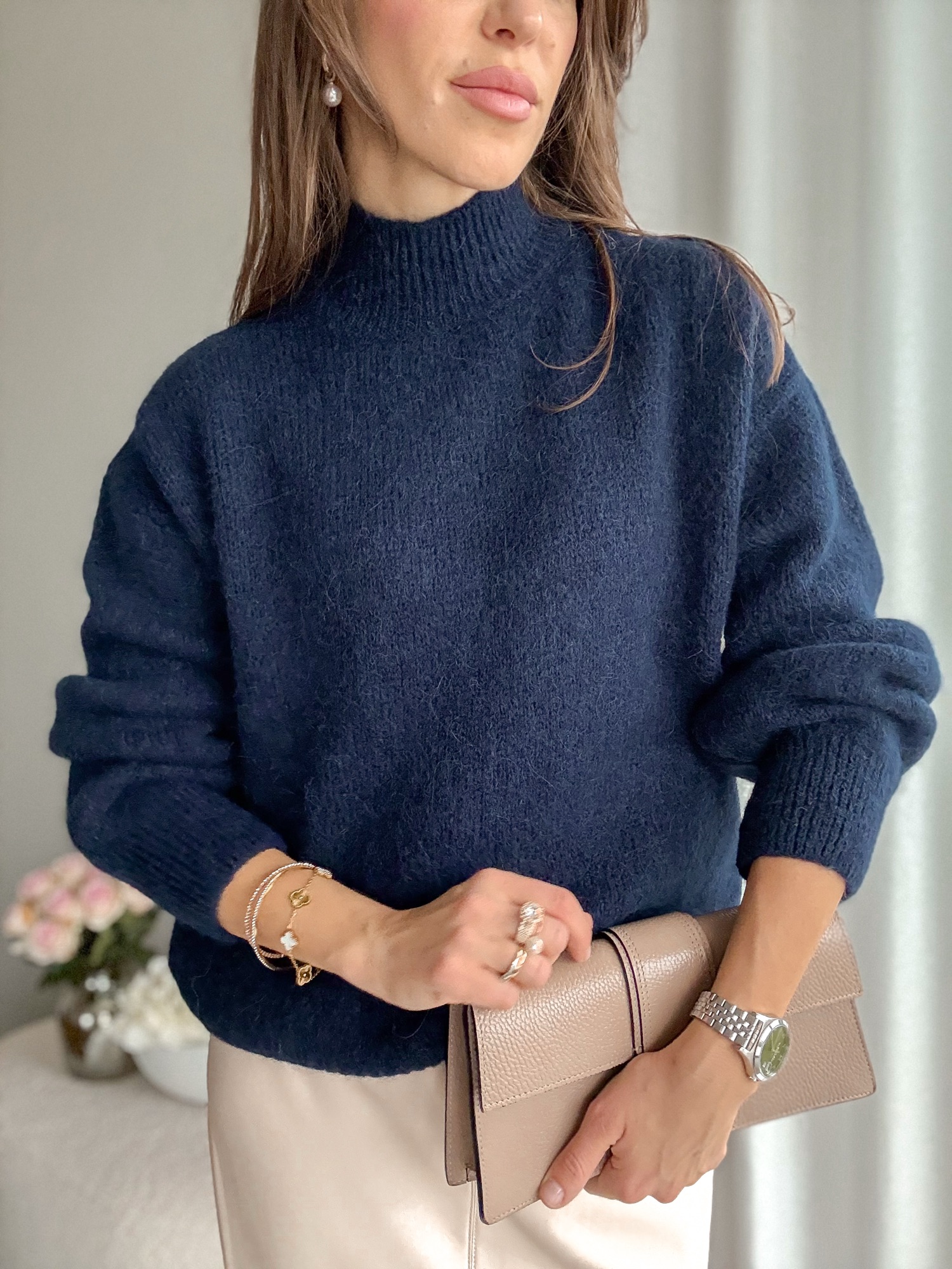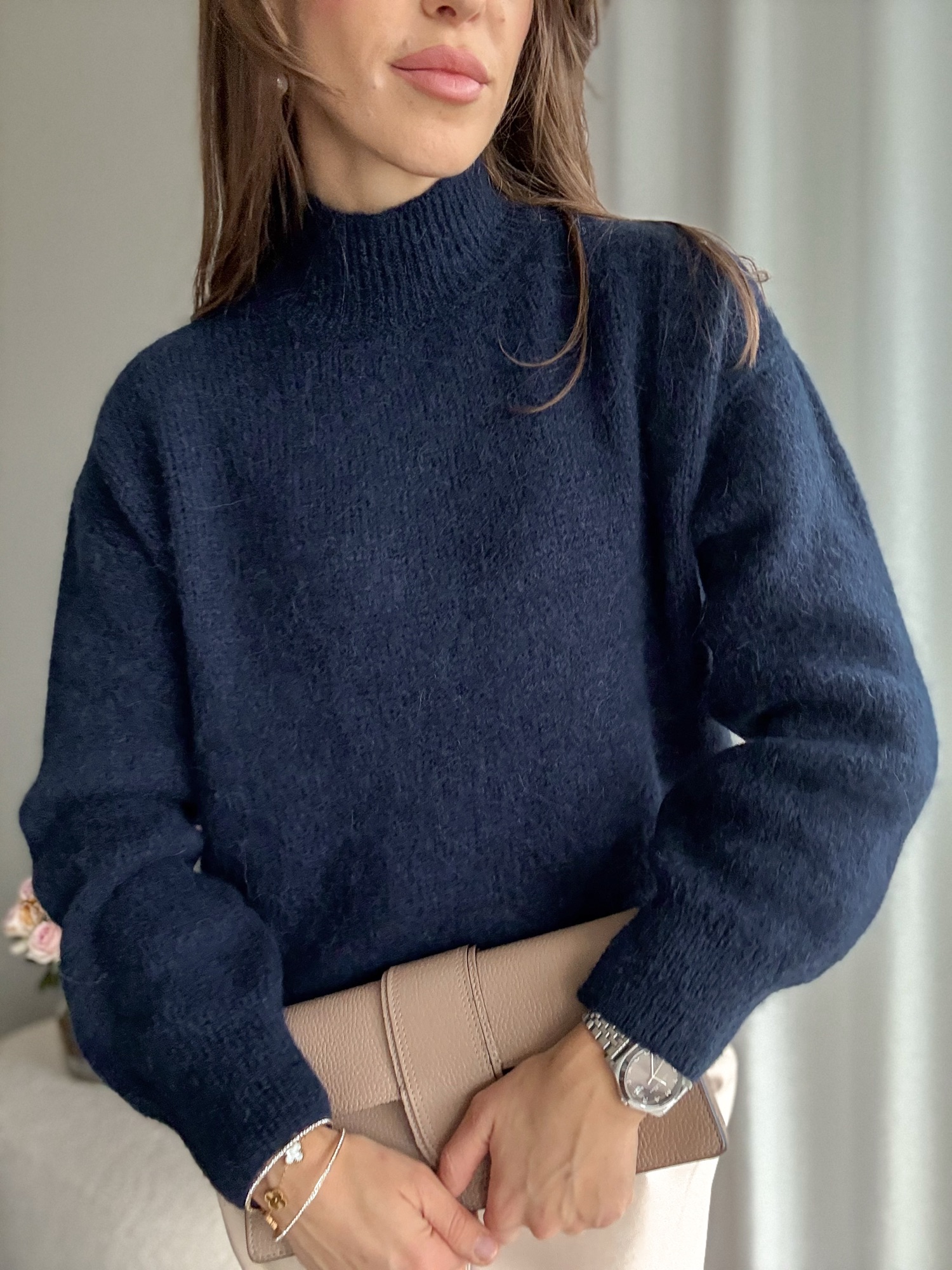 Puszysty półgolf z alpaki i wełny.