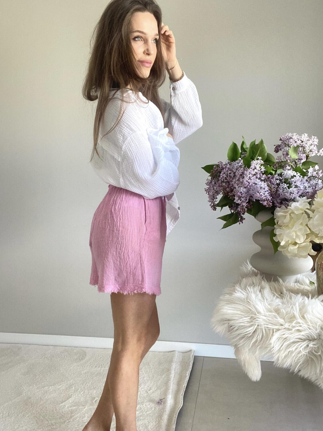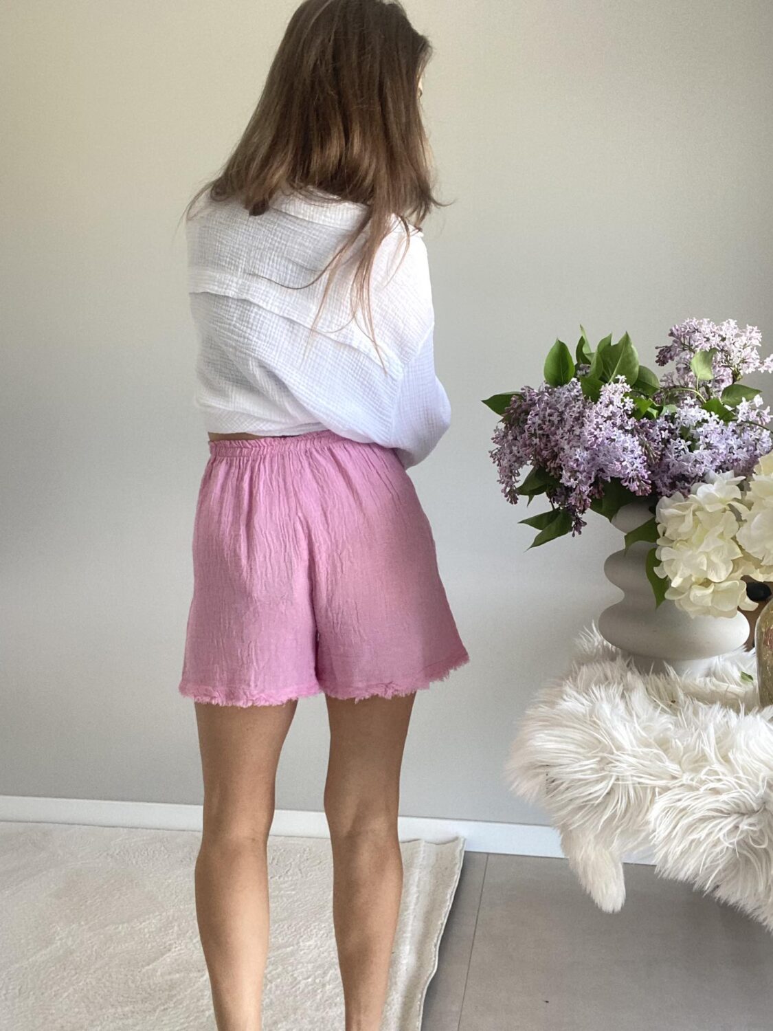 Lniane szorty w pięknym różowym kolorze.