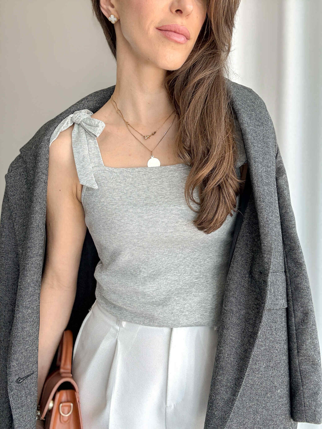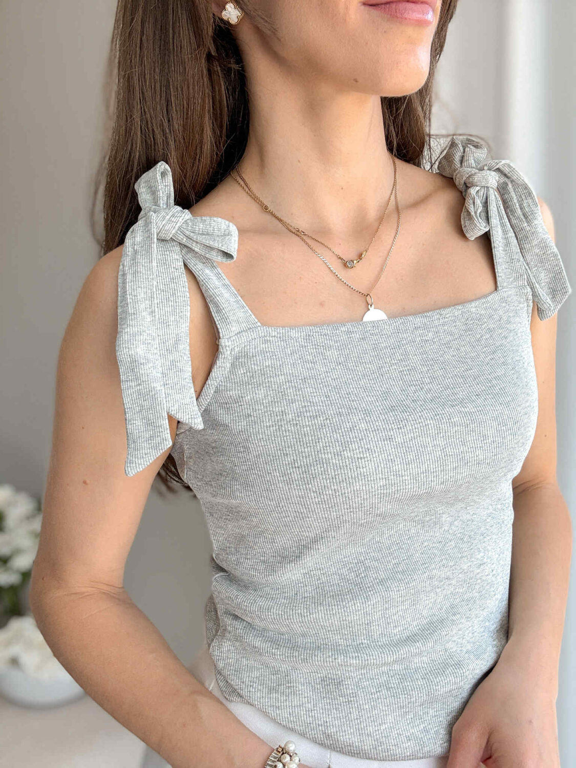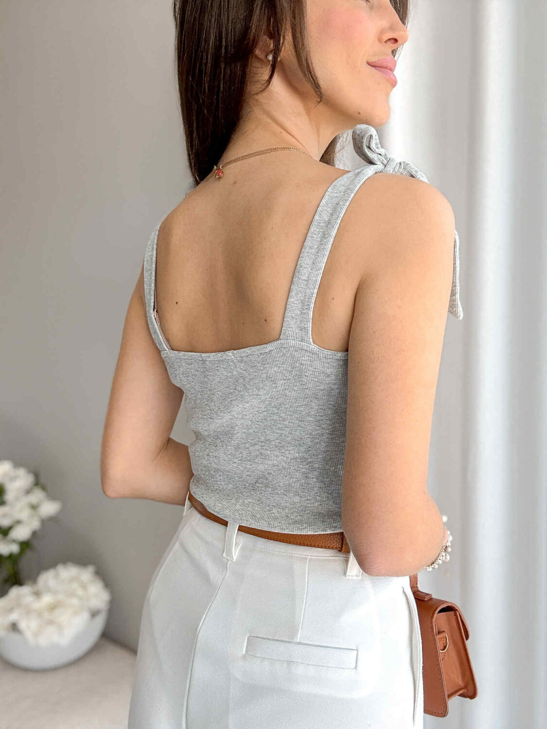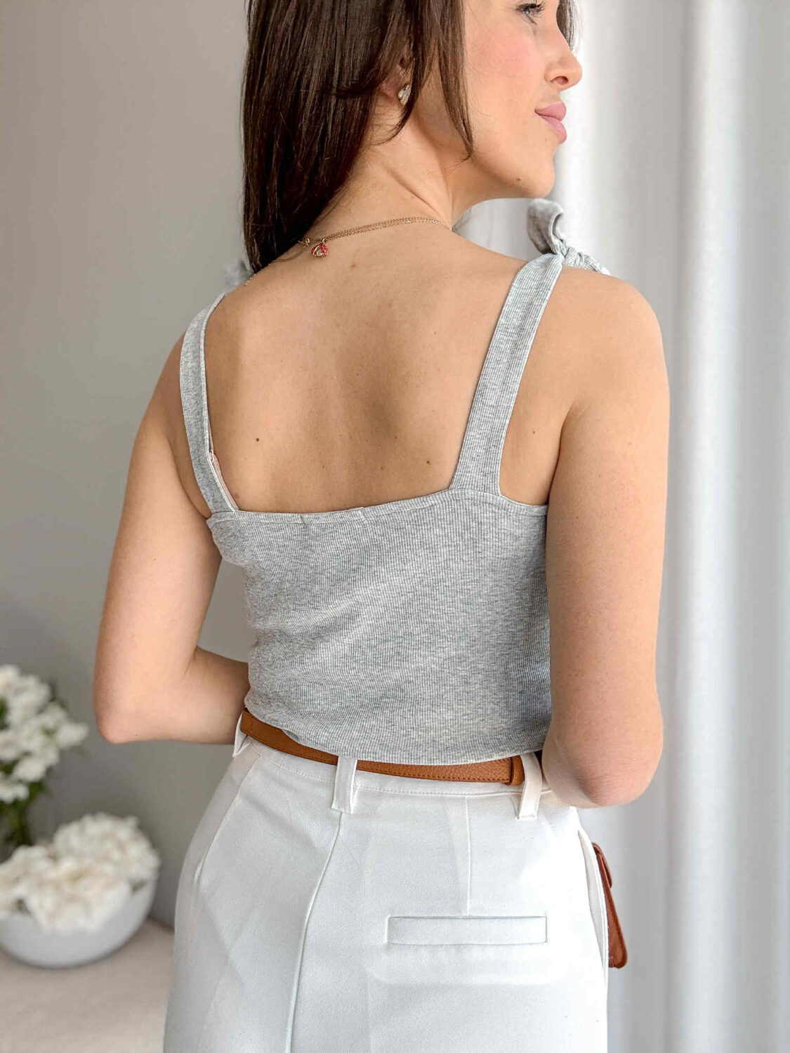 Top wykonany z prążkowanej tkaniny – nie prześwituje. Jest bardzo elastyczny