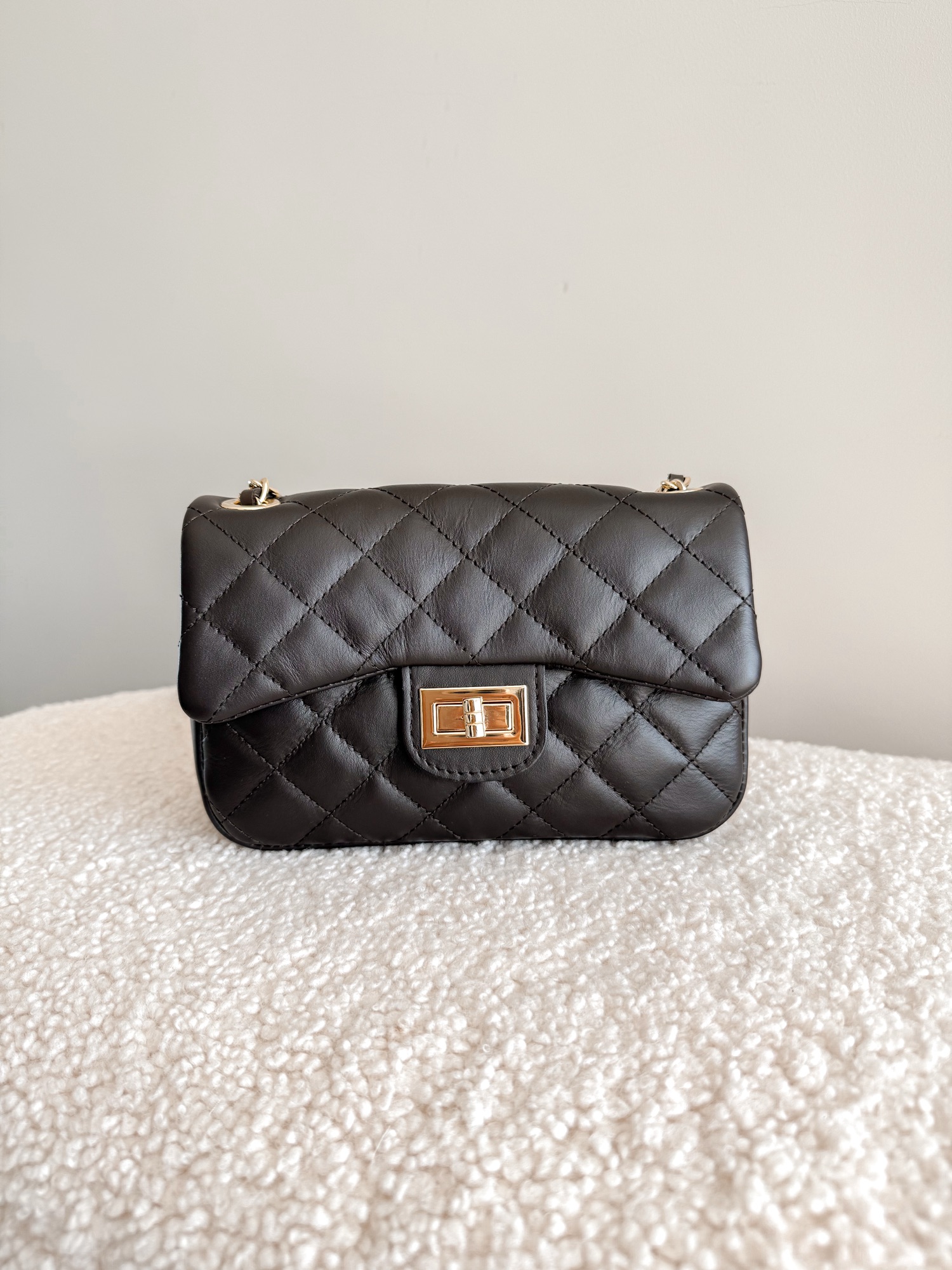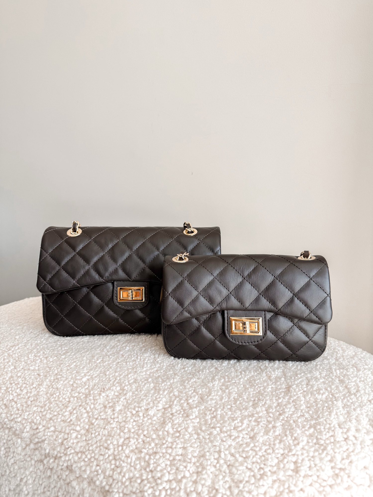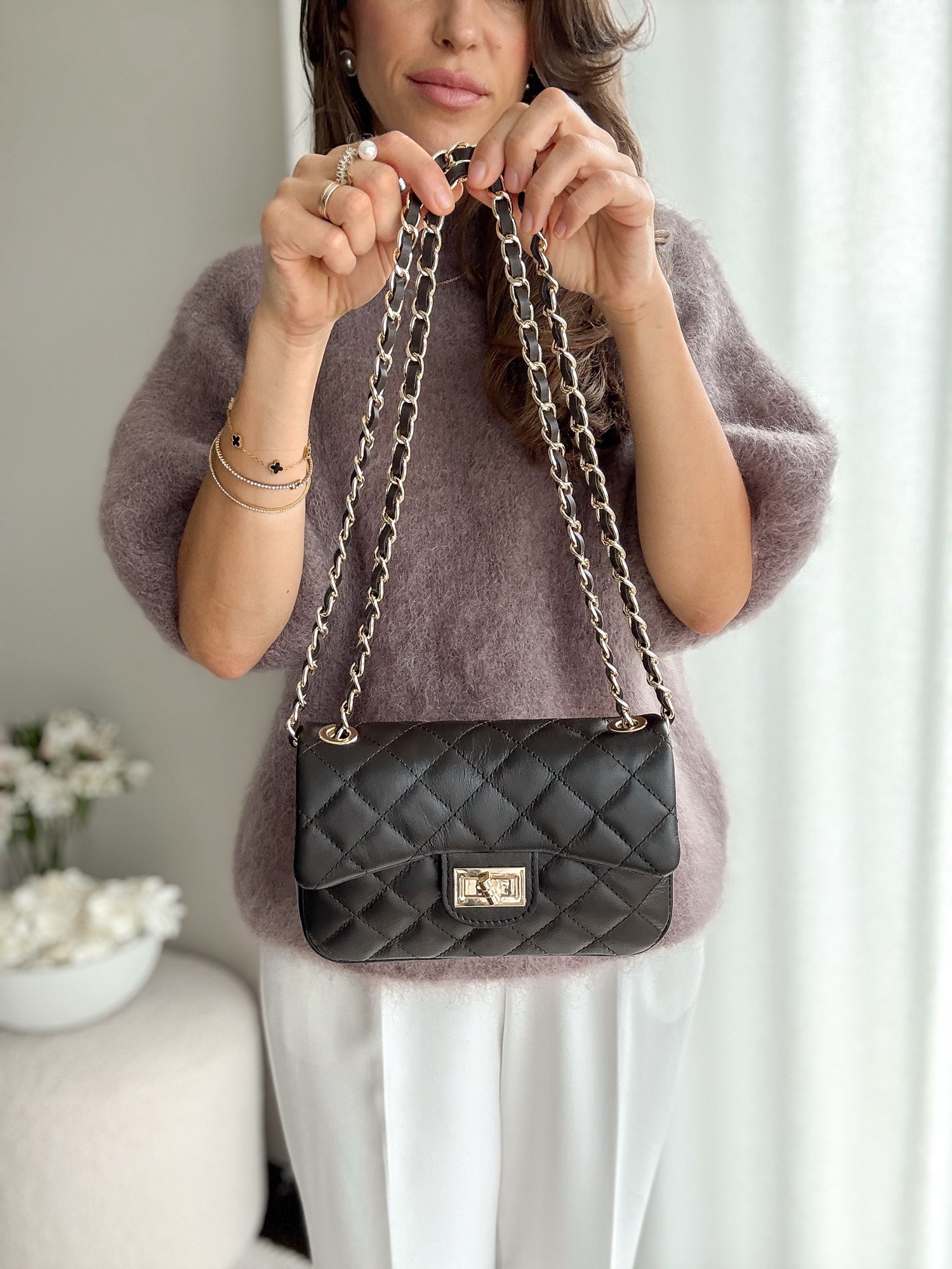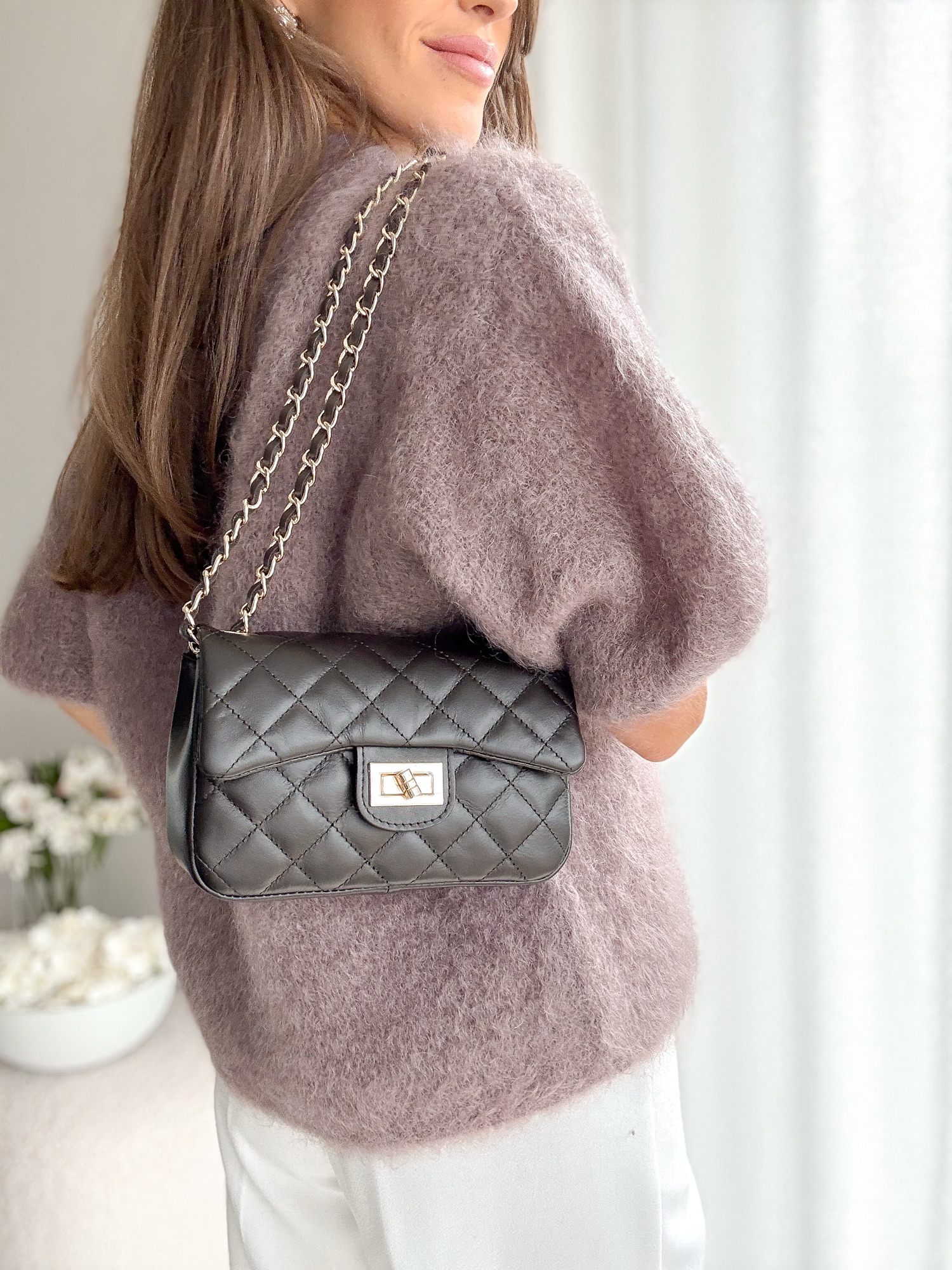Pikowana torebka ze skóry naturalnej na pasku z łańcuszkiem.