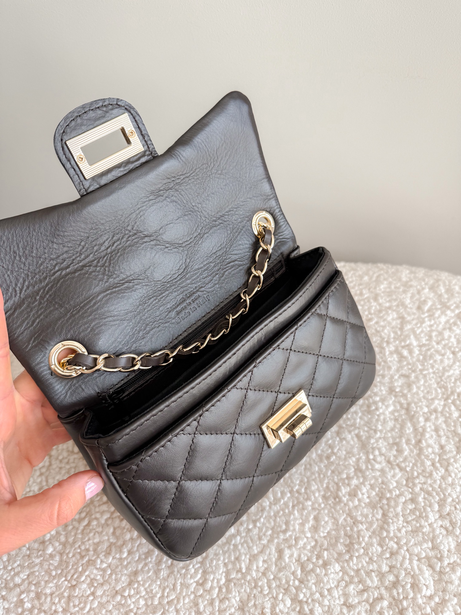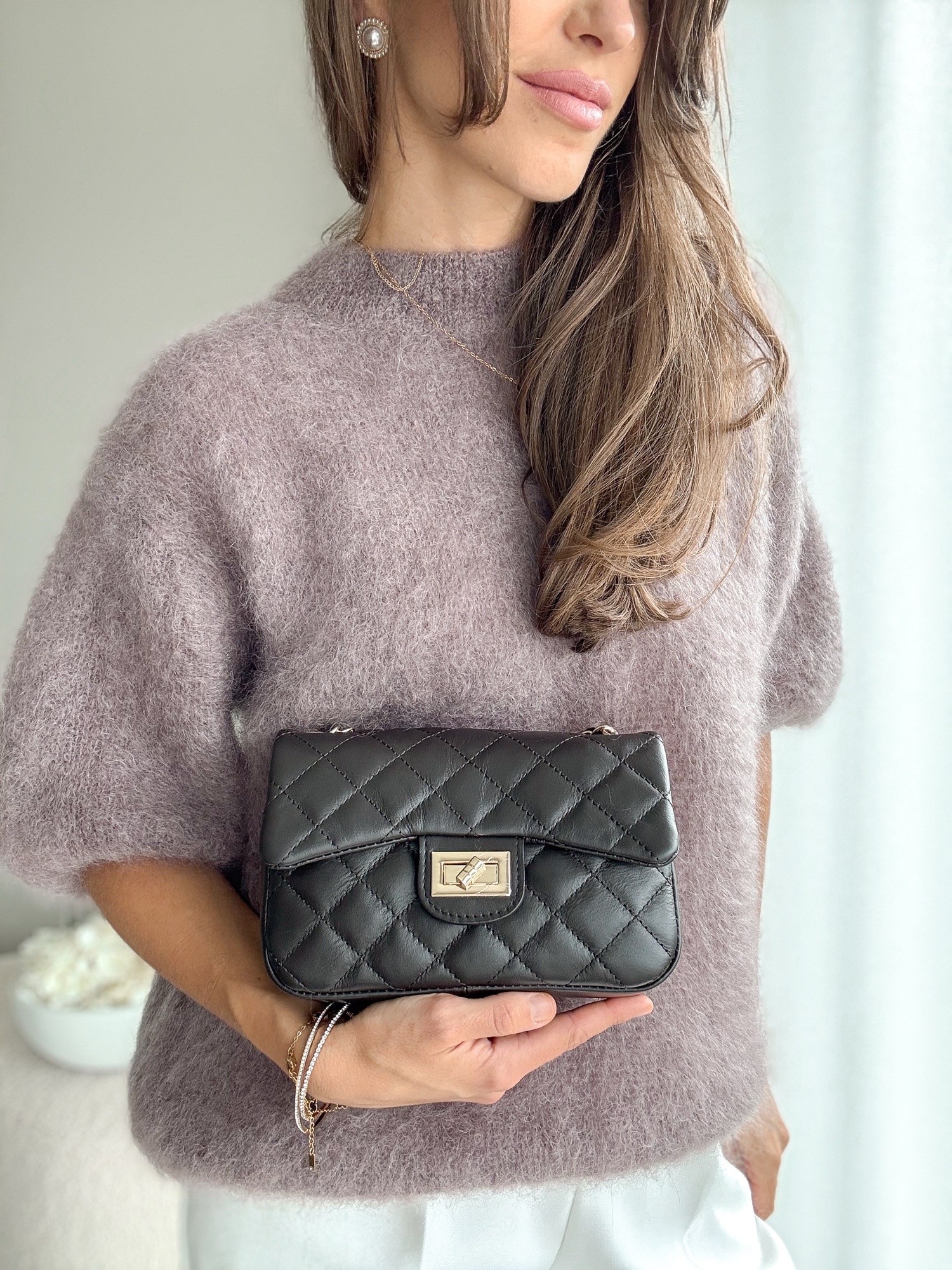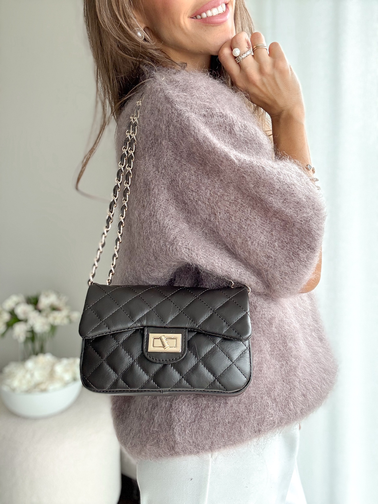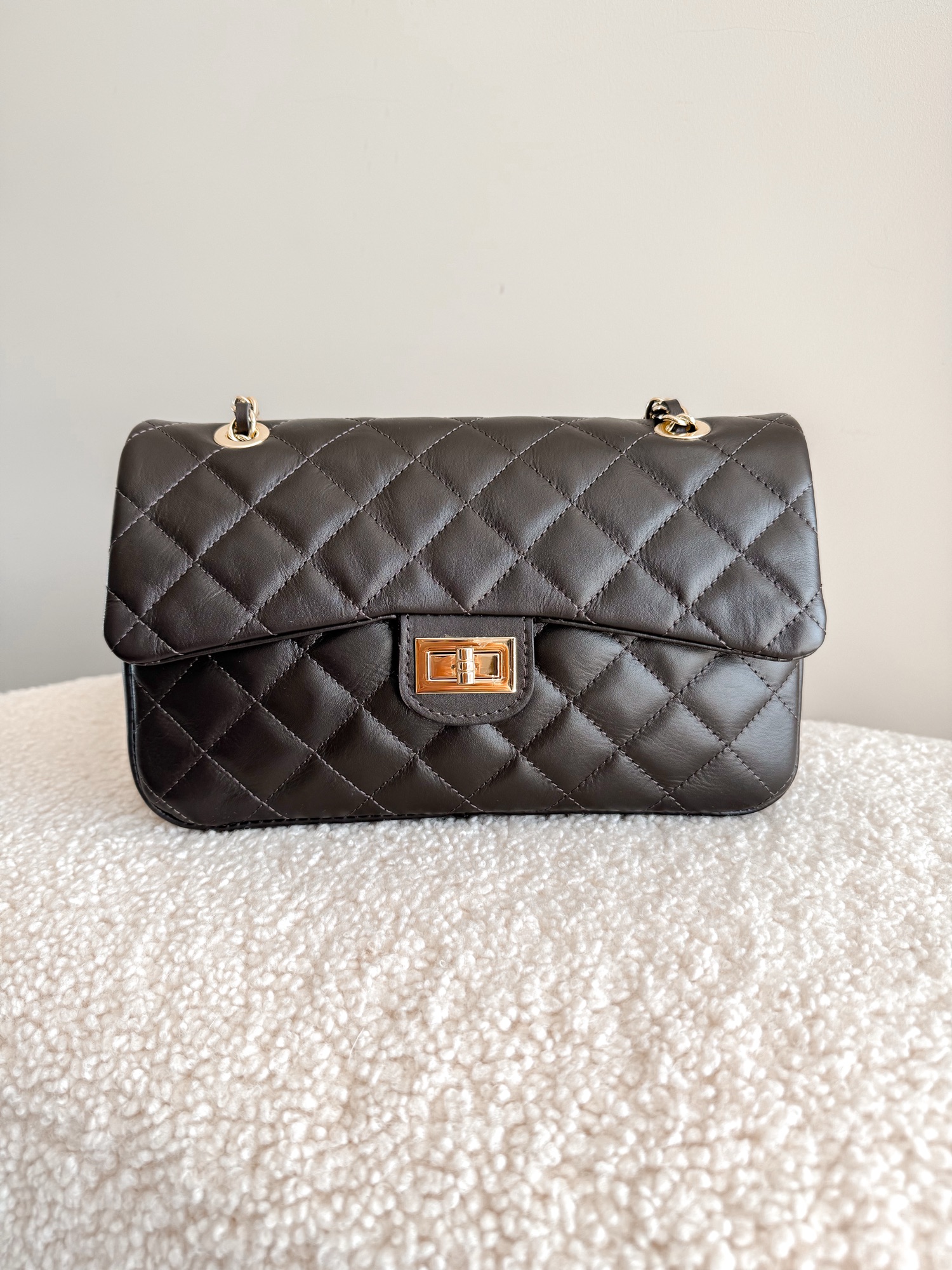Pikowana torebka ze skóry naturalnej na pasku z łańcuszkiem.