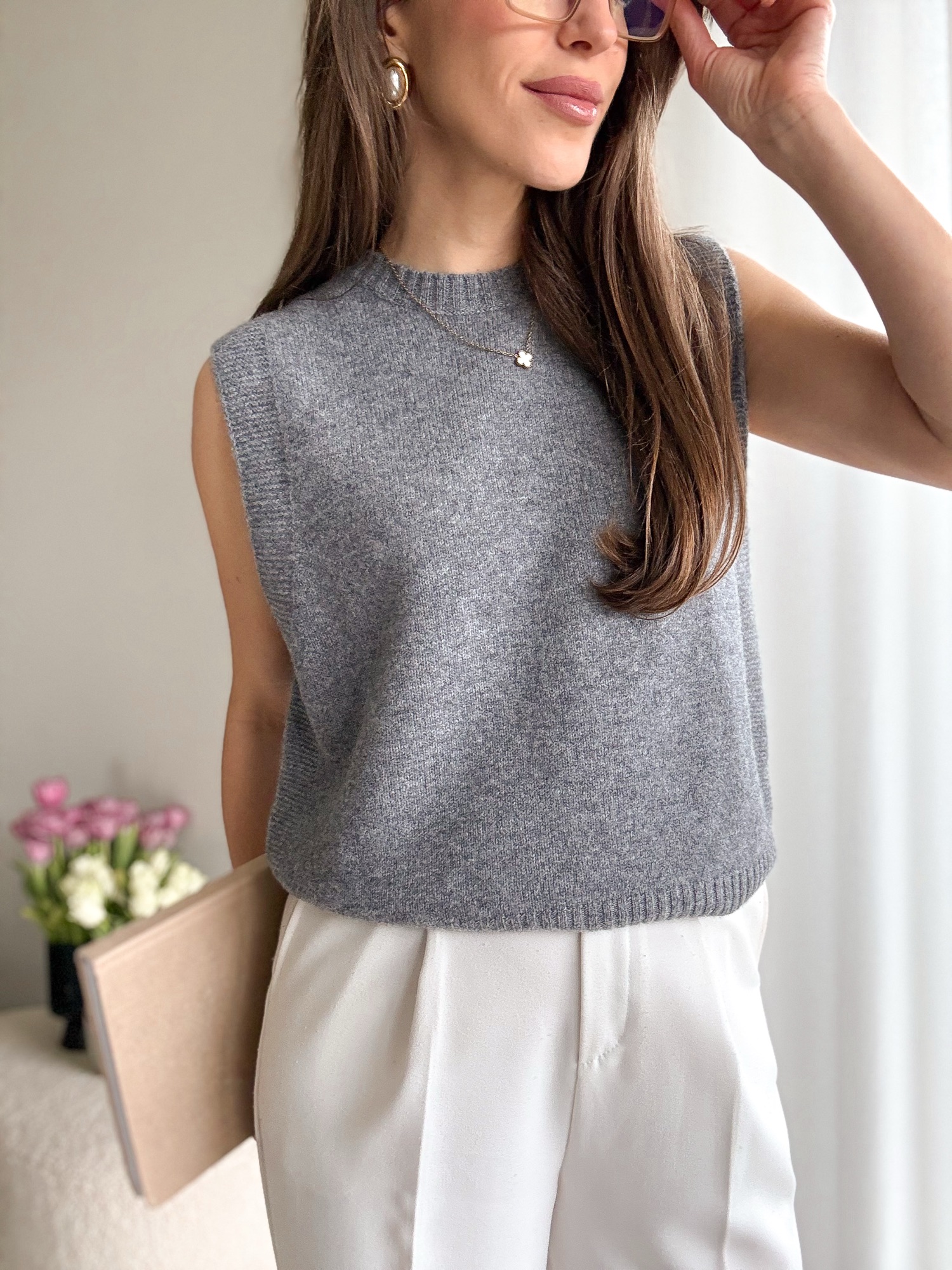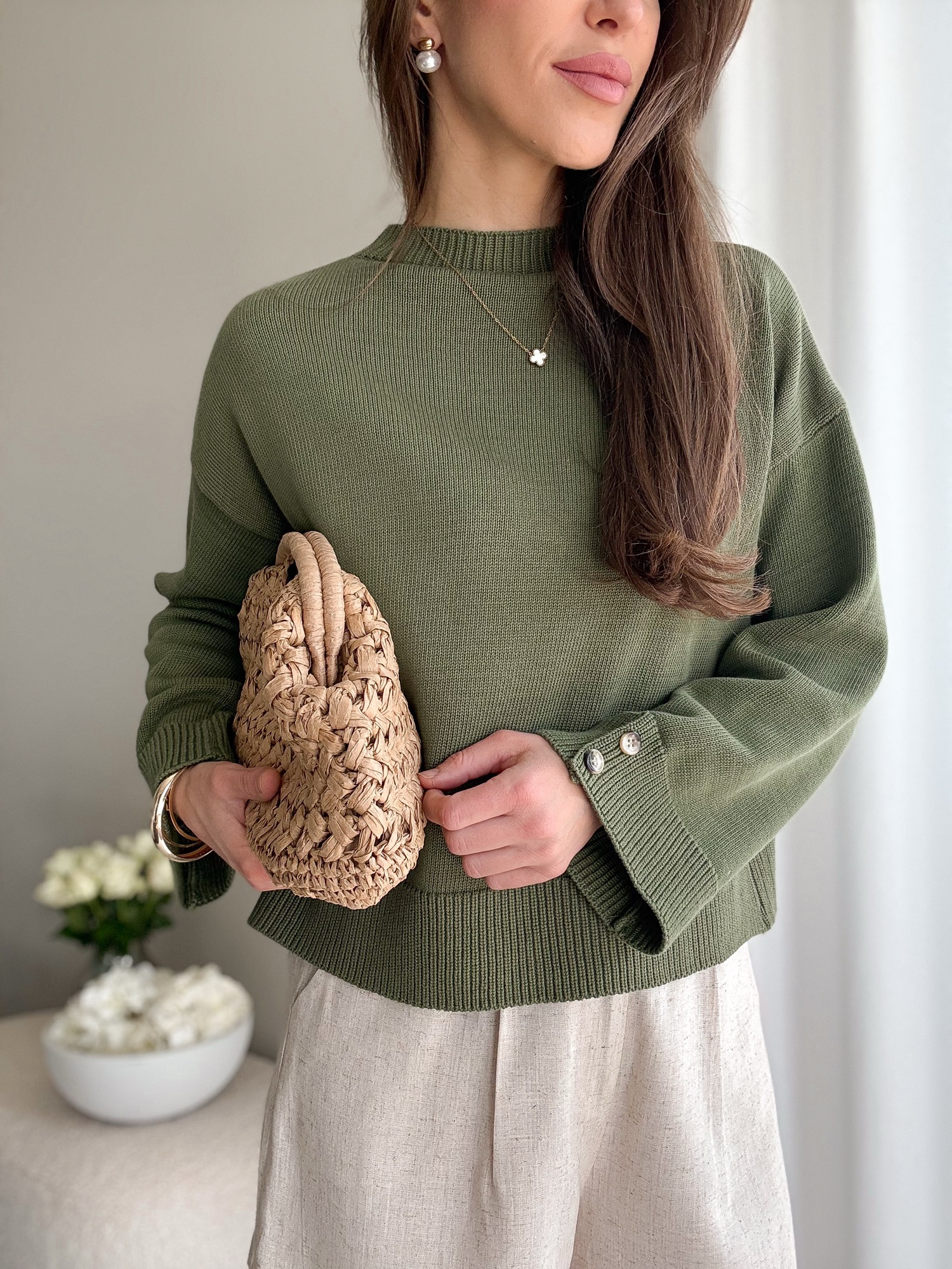 W zestawie odpinany, złoty łańcuszek.